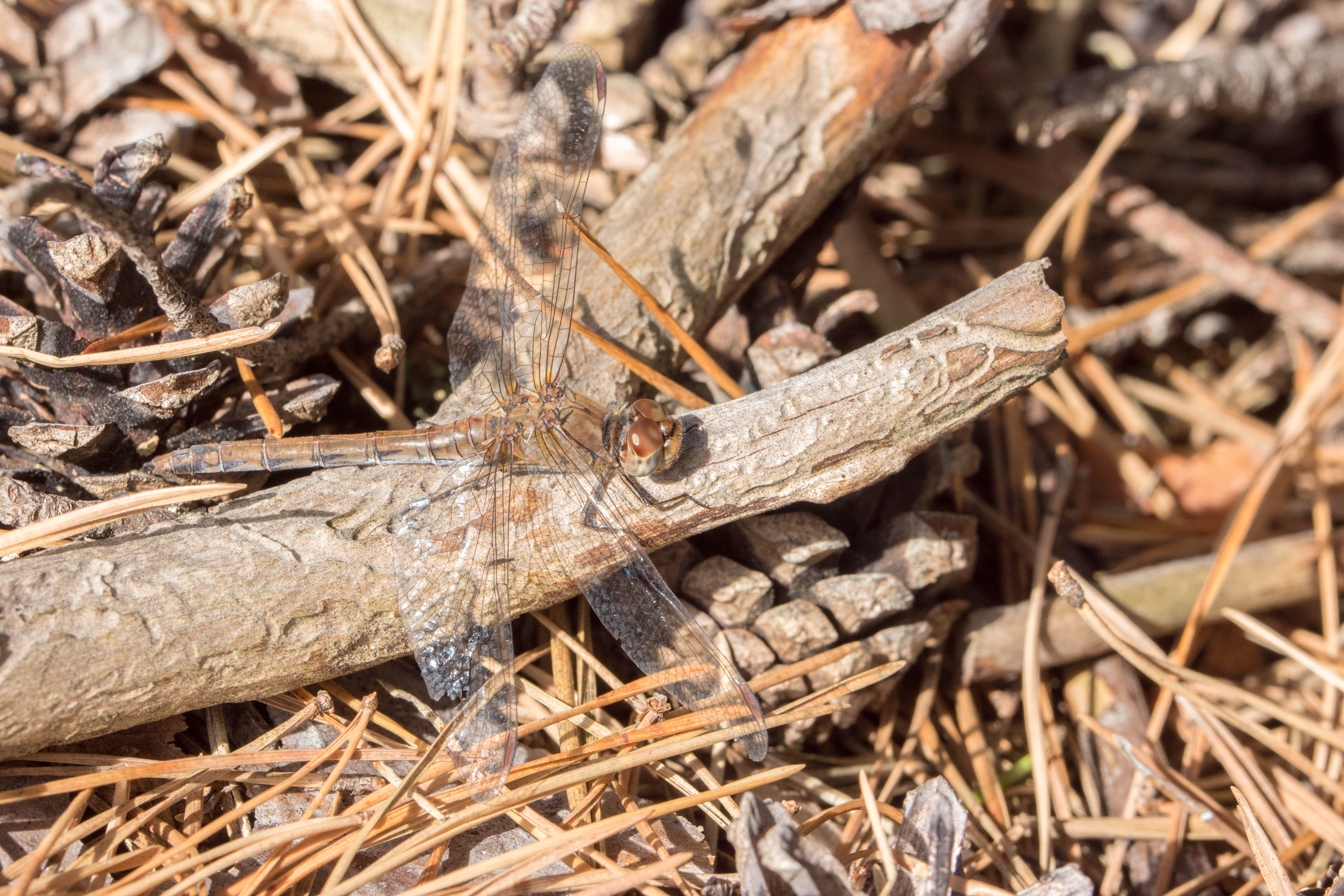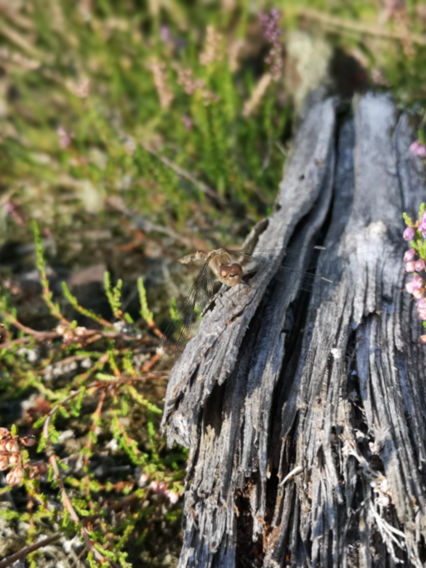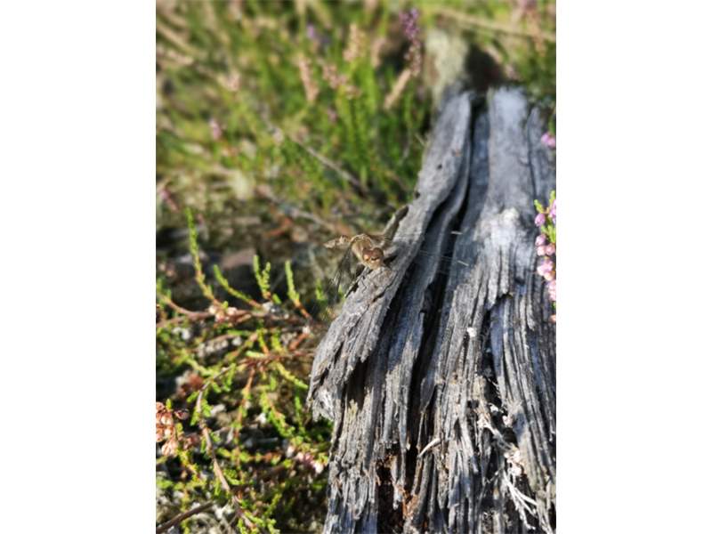 Große Heidelibelle in wenig typischem Habitat auf einer Windwurffläche in einem Fichtenwald im Zellwald, Ende August 2017