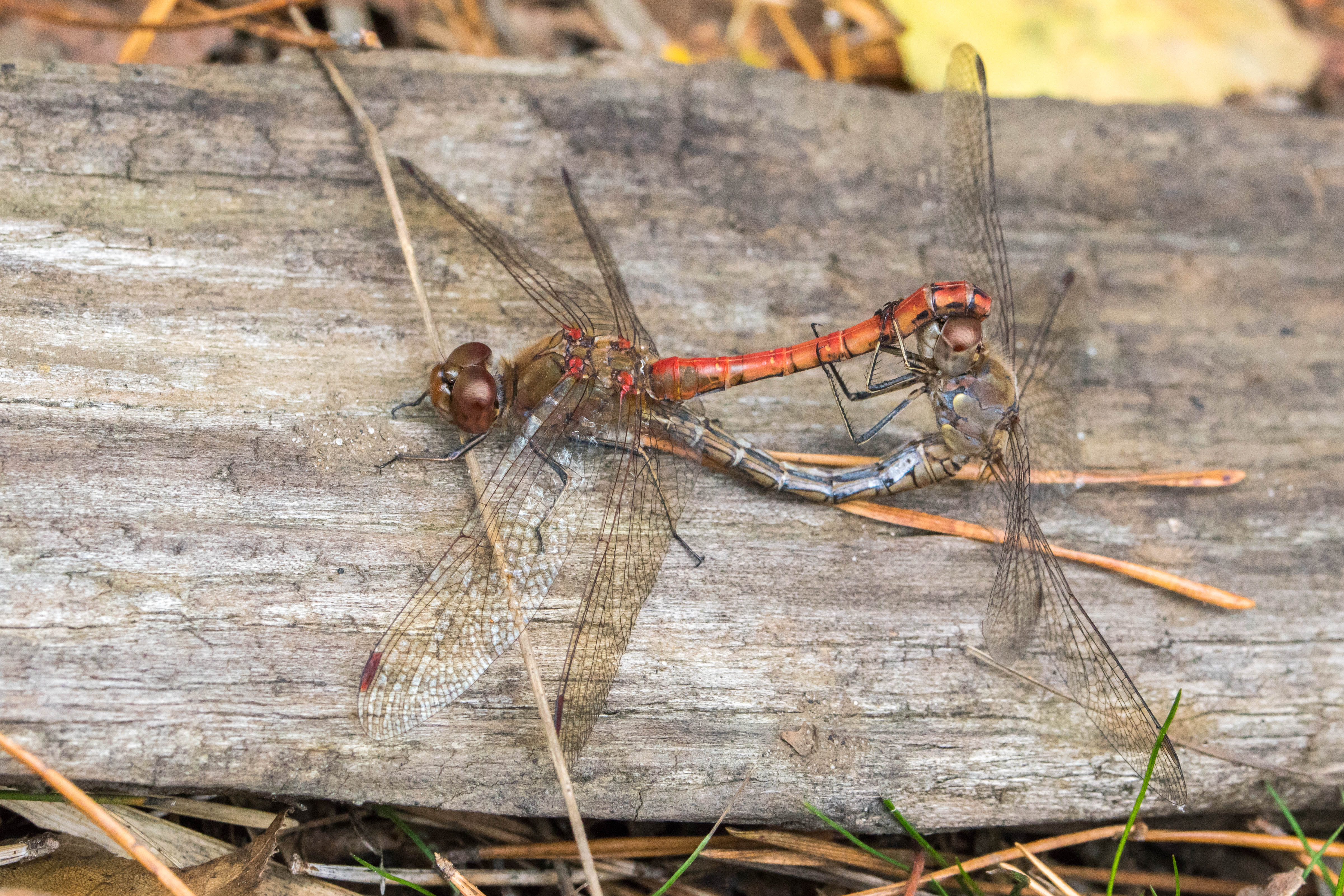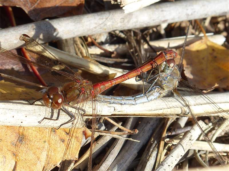 Paarungsrad der Großen Heidelibelle im Teichgebiet Schönau, Mitte Oktober 2018