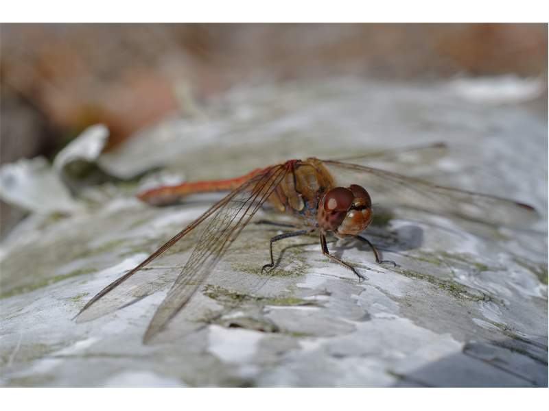 Große Heidelibelle (Sympetrum striolatum (Charpentier, 1840)) im Teichgebiet Schönau, Mitte Oktober 2018