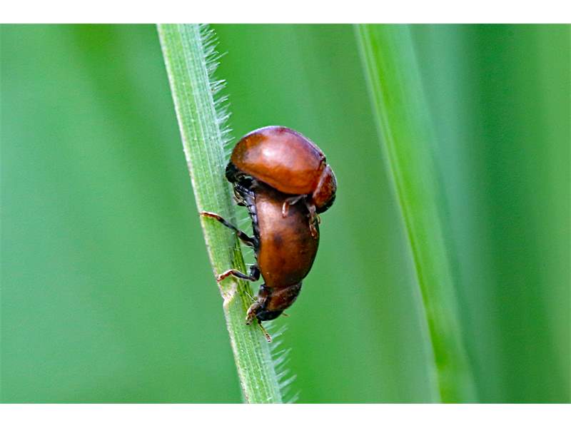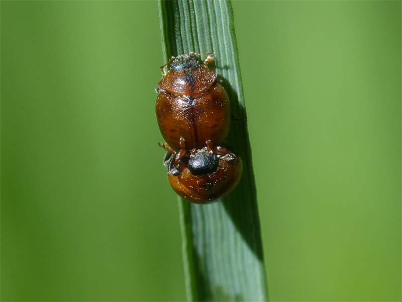 Gras-Marienkäfer Cynegetis impunctata im April 2013 bei der Paarung