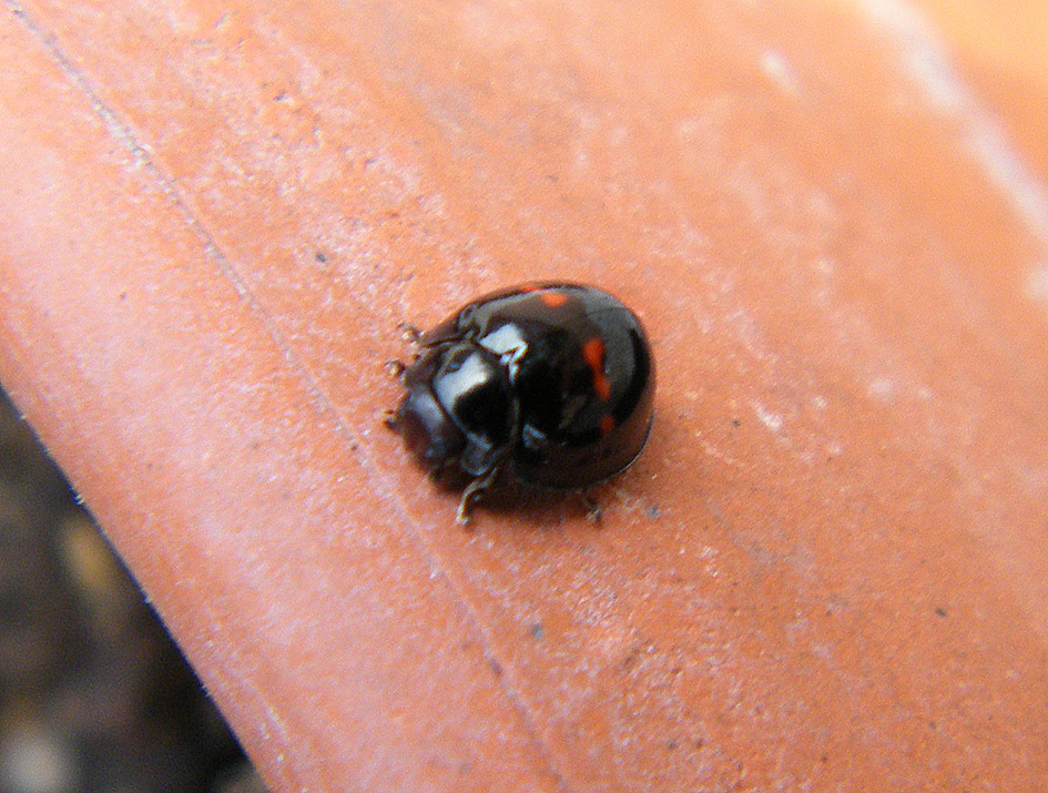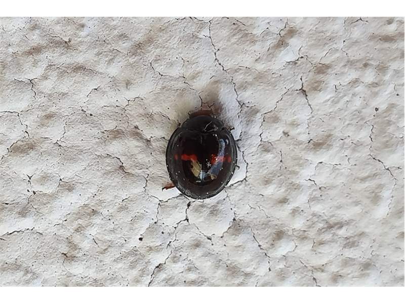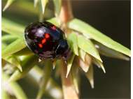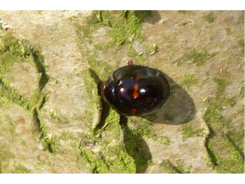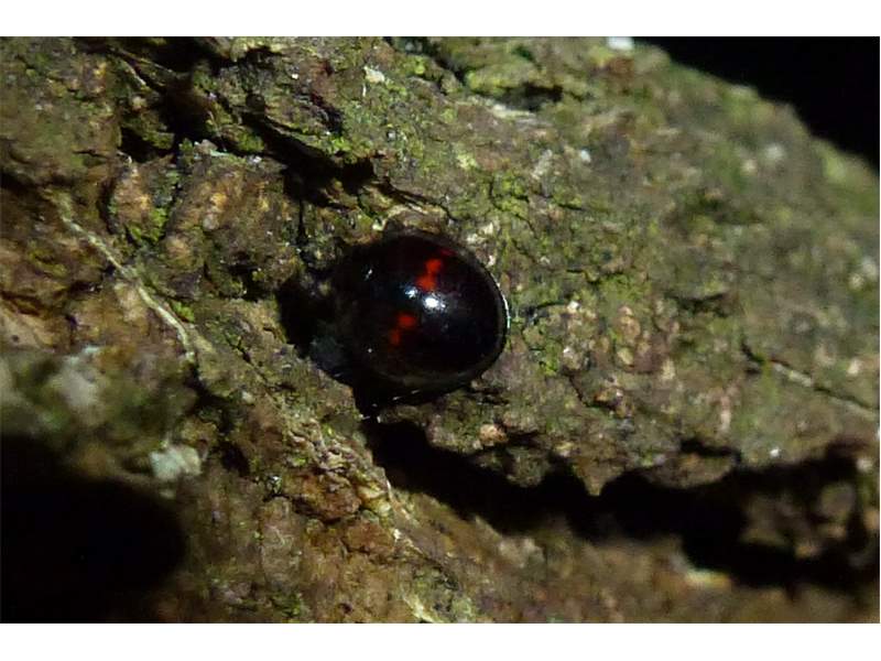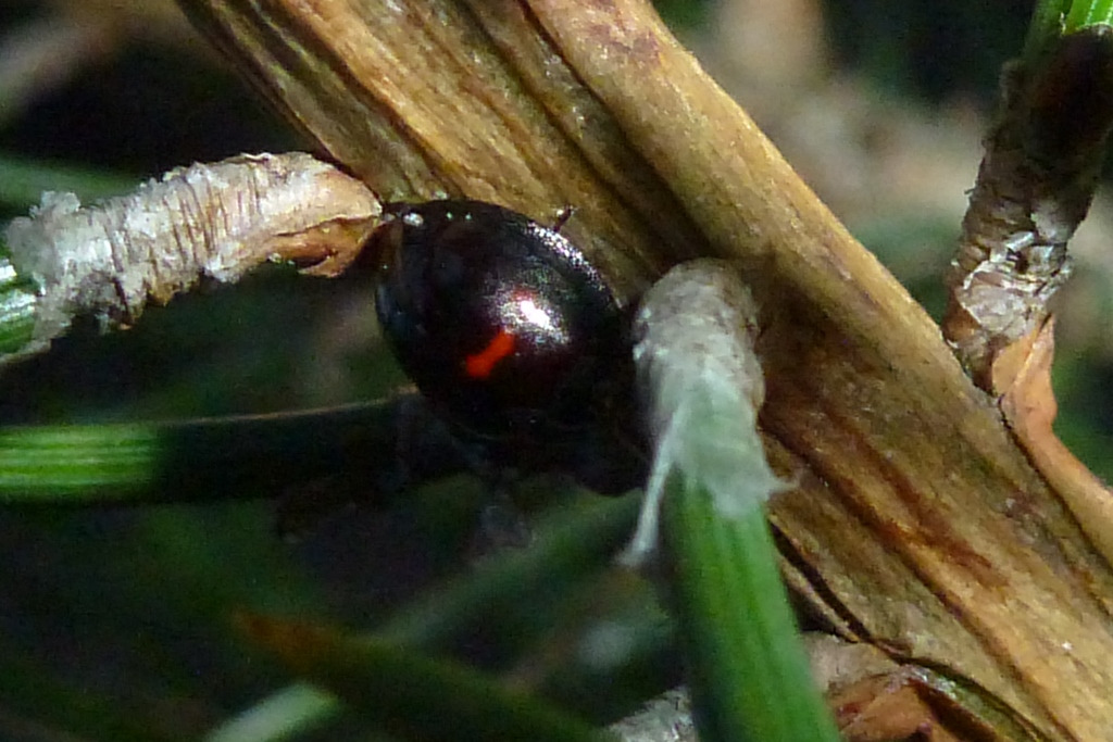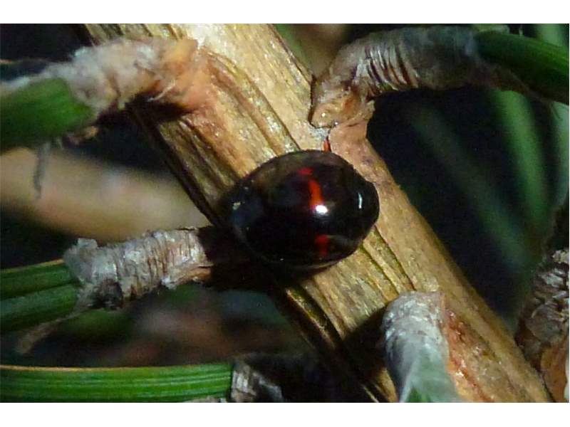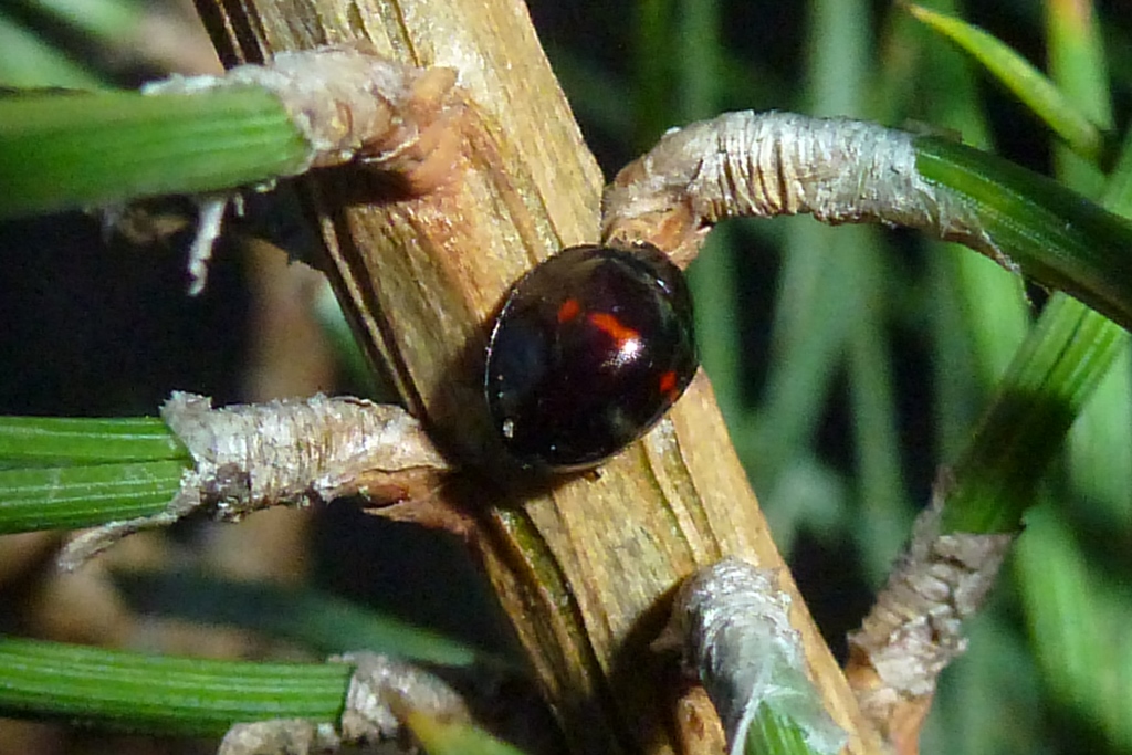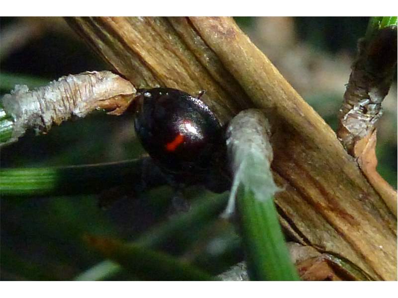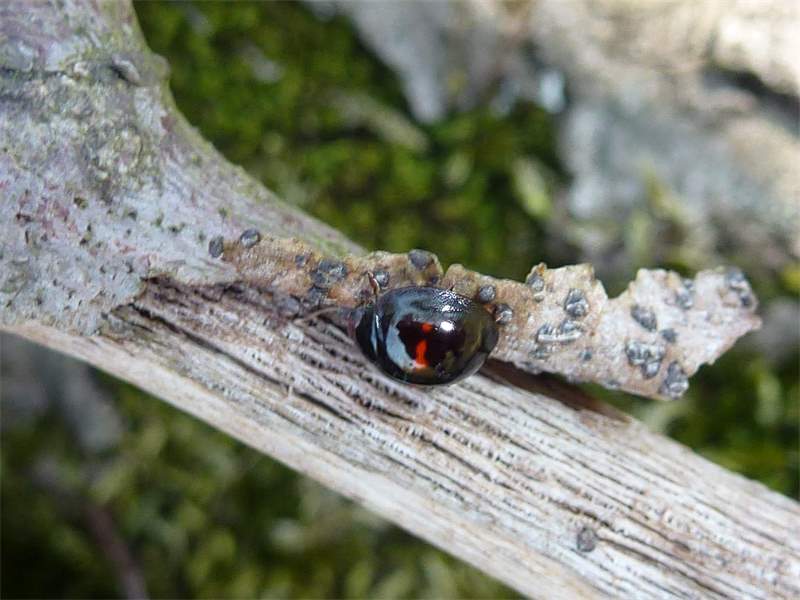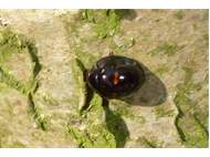 Strichfleckiger Schildlaus-Marienkäfer (Chilocorus bipustulatus (Linnaeus, 1758)), Gartengrundstück, bei Bad Düben, am Rande der Dübener Heide, am 18.07.2018, aus dem Pool gefischt (© R. Papenfuß)( Bild vergrößern)