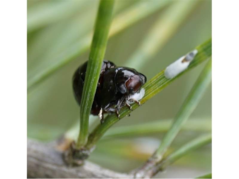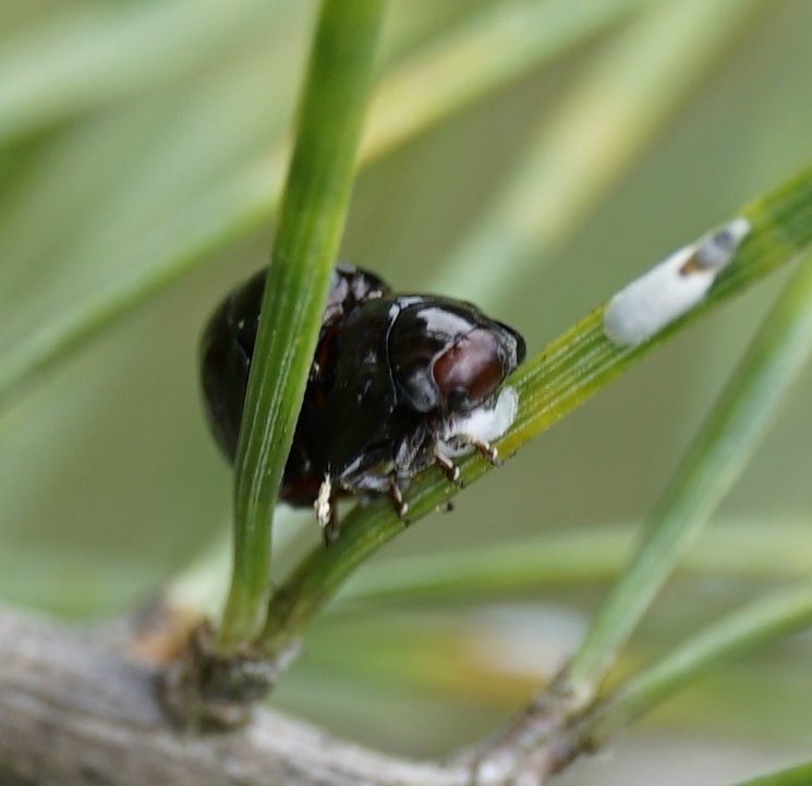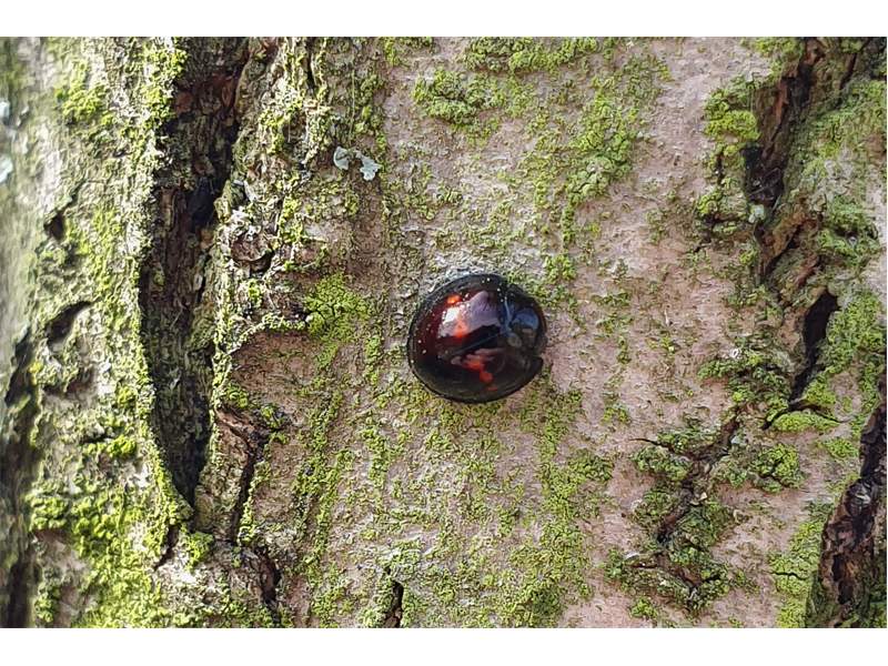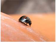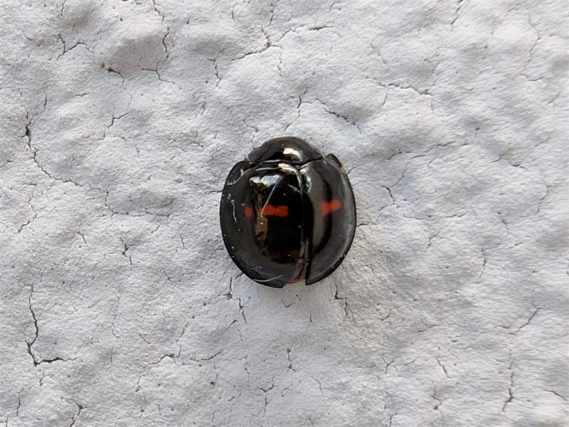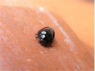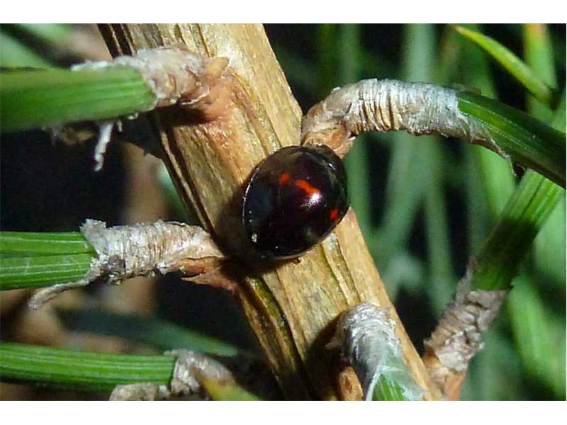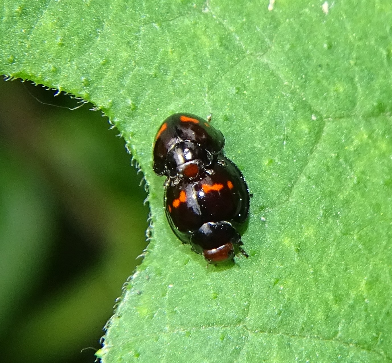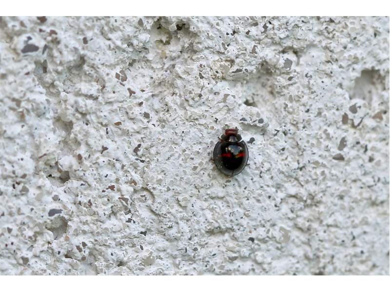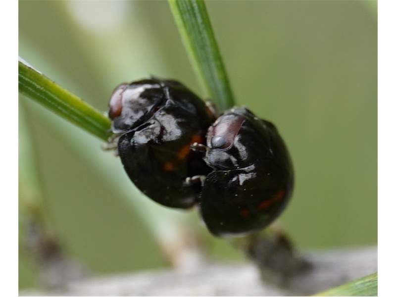 Strichfleckiger Schildlaus-Marienkäfer (Chilocorus bipustulatus (Linnaeus, 1758)), Gartengrundstück, bei Bad Düben, am Rande der Dübener Heide, am 18.07.2018, aus dem Pool gefischt (© R. Papenfuß)( Bild vergrößern)