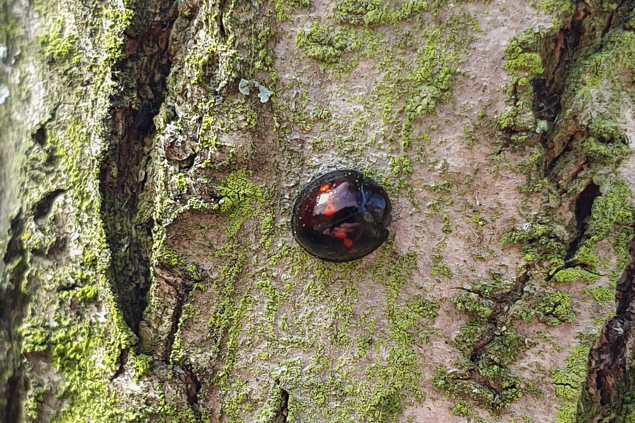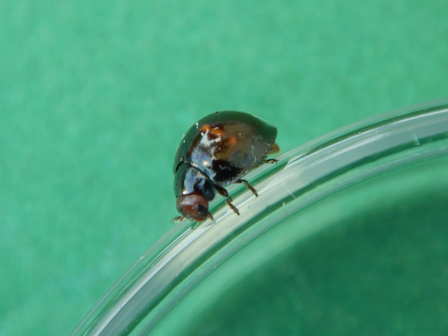 Strichfleckiger Schildlaus-Marienkäfer (Chilocorus bipustulatus (Linnaeus, 1758)), Gartengrundstück, bei Bad Düben, am Rande der Dübener Heide, am 18.07.2018, aus dem Pool gefischt