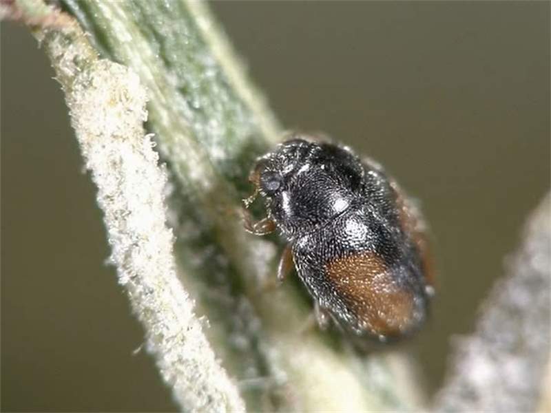 Ähnliche Art: Weiden-Zwergmarienkäfer (Scymnus limbatus).
