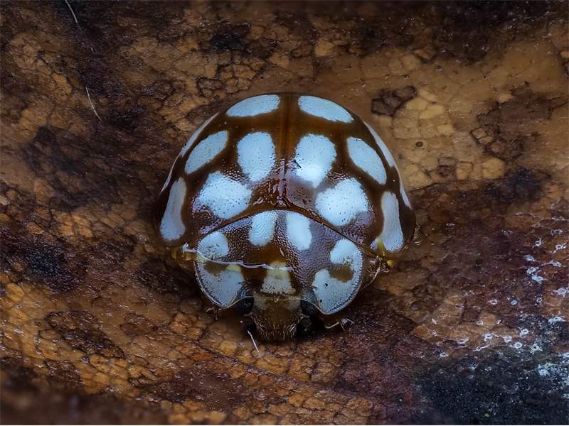 Ähnliche Arten: Mehrere Marienkäferarten besitzen braune Halsschilde und Flügeldecken mit hellen Punkten, unterscheiden sich aber in den Farbtönen sowie in der Anzahl und Anordnung der Punkte. Vergleiche hierzu Erlenmarienkäfer (Calvia quindecimguttata), Vierzehnpunkt-Marienkäfer (Calvia quatuordecimguttata), Zehnfleckiger Marienkäfer (Calvia decemguttata), Sechzehnfleckiger Pilz-Marienkäfer (Halyzia sedecimguttata), Kiefernwipfel-Marienkäfer (Myrrha octodecimguttata) und Zwölffleckiger Pilz-Marienkäfer (Vibidia duodecimguttata).