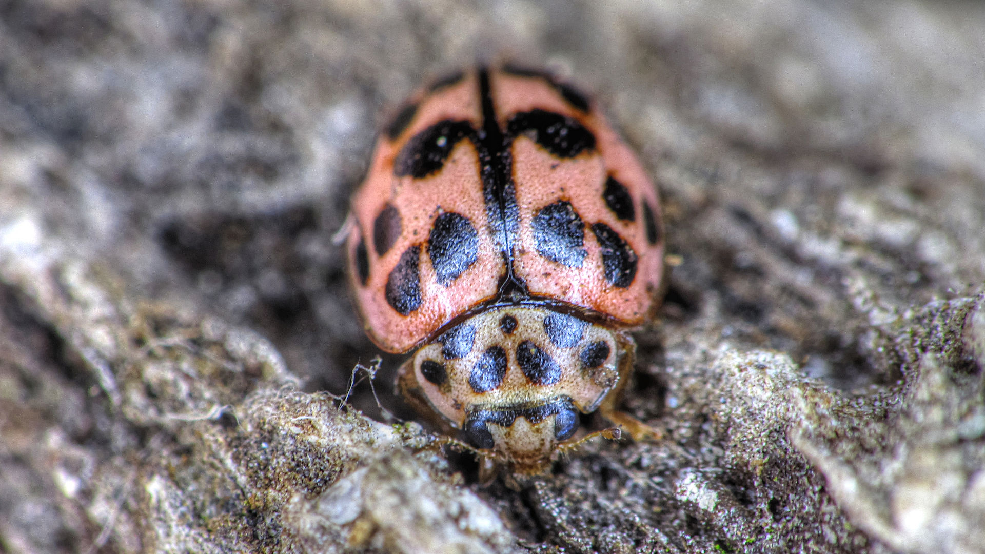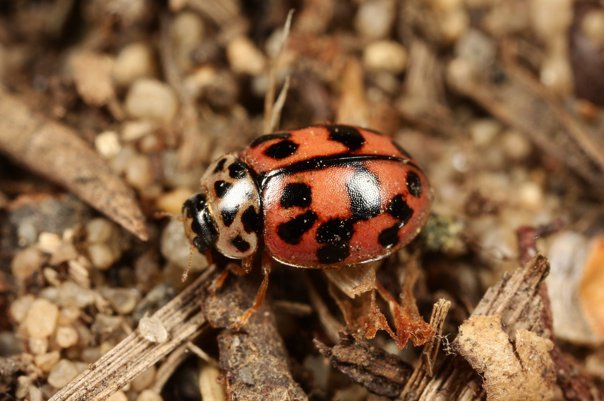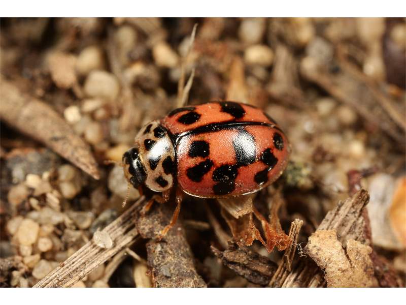 Ähnliche Art: Beim Sechzehnpunkt-Marienkäfer (Tytthaspis sedecimpunctata) der Halsschild in gleicher Grundfarbe wie die Deckflügel und jeder Deckflügel mit einer Reihe aus 4 schwarzen Punkten entlang der Flügeldeckennaht und seitlich mit einer Zick-Zack-Reihe aus 5 schwarzen Punkten, von denen 4 durch eine schwarze Längslinie miteinander verbunden sind.