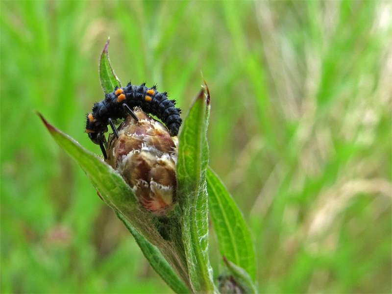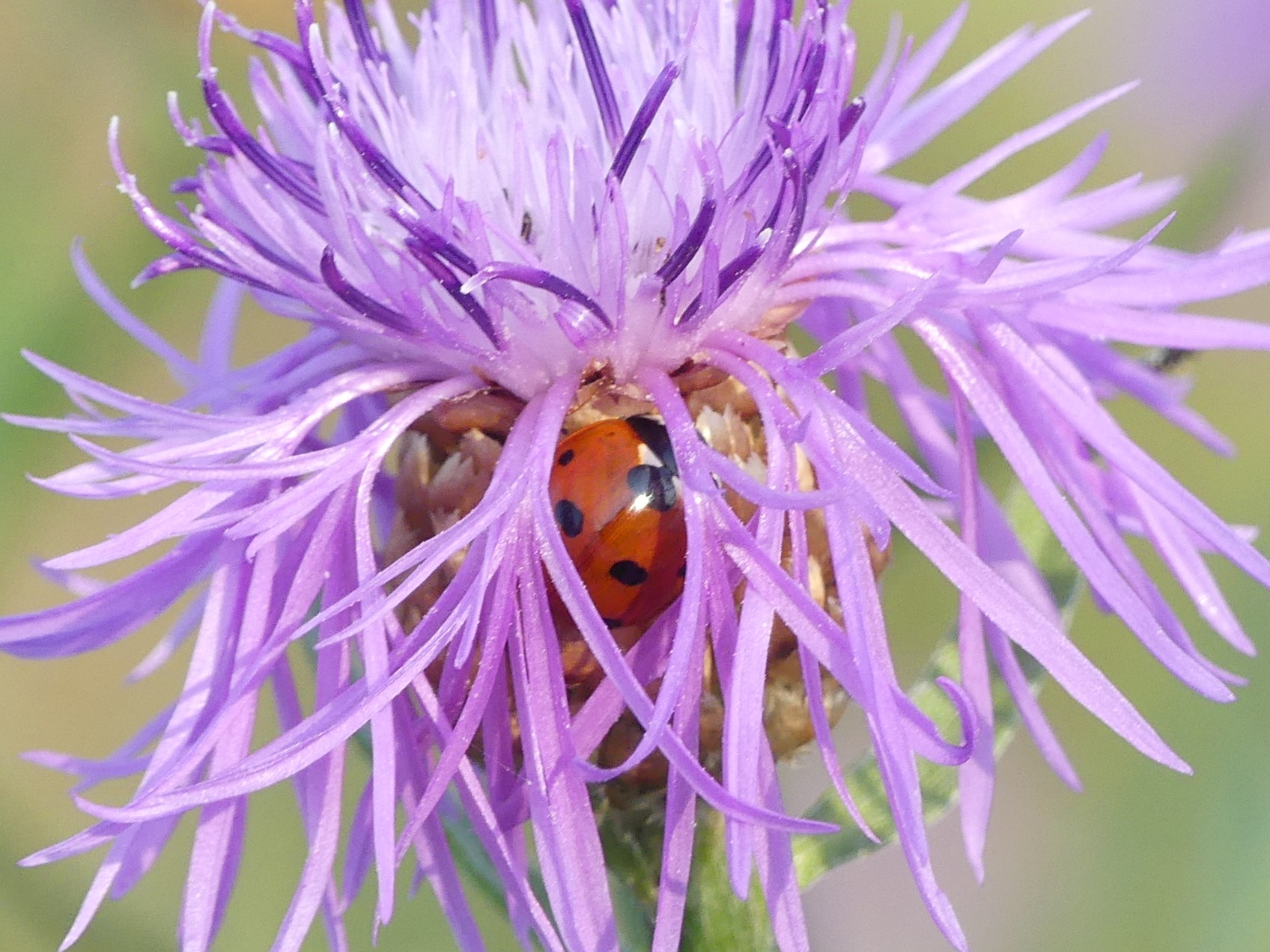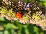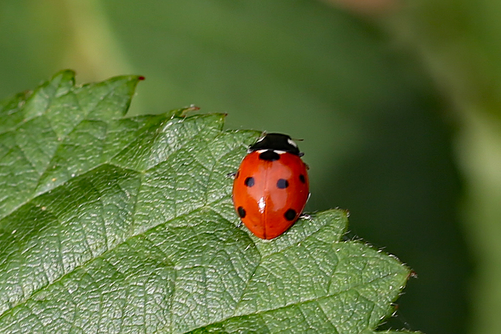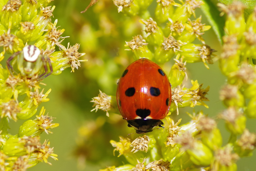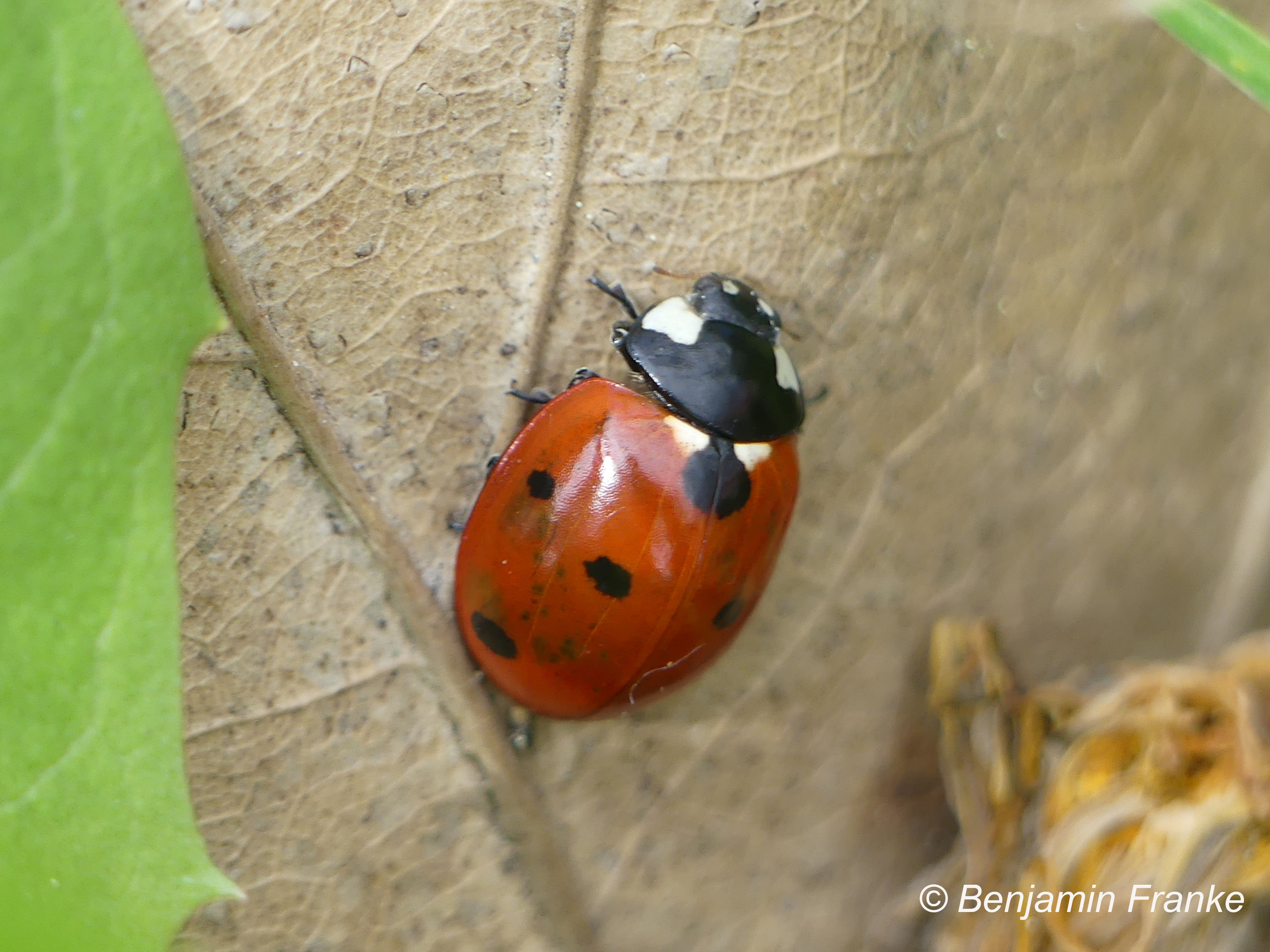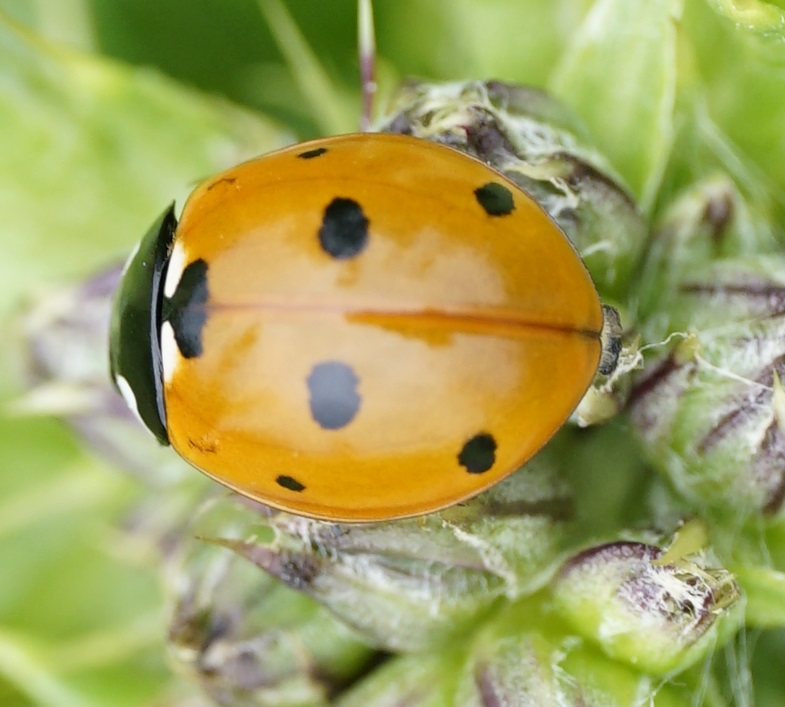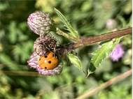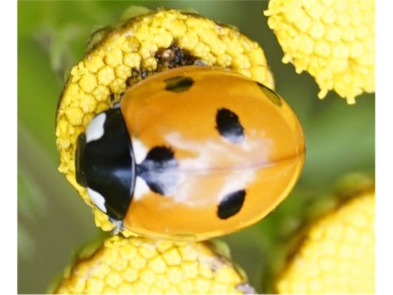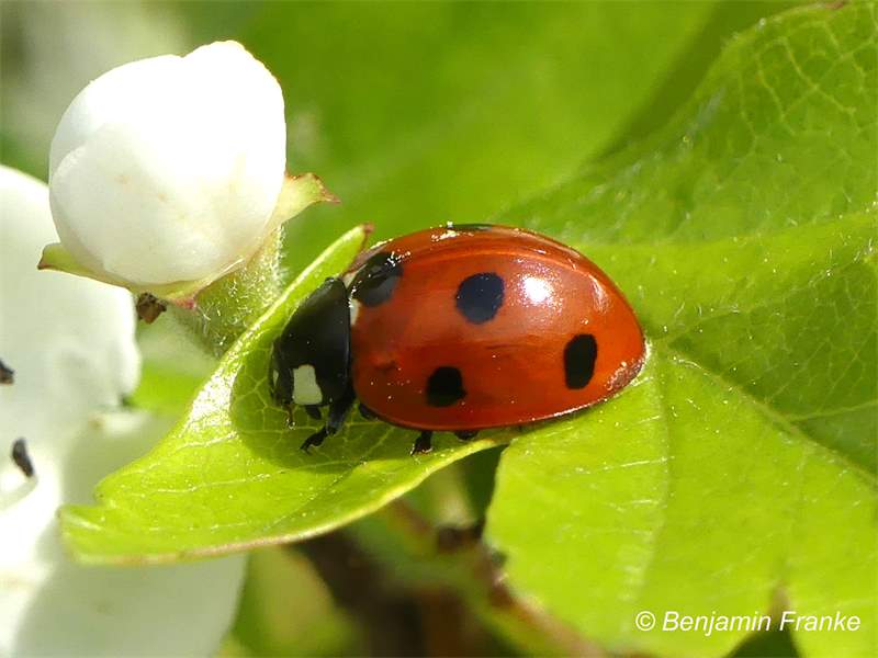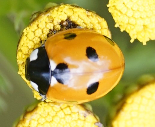 Siebenpunkt-Marienkäfer (Coccinella septempunctata Linnaeus, 1758) Brand-Erbisdorf OT Langenau, Oberreichenbacher Straße, Feldrand, Juli 2019, Sommertreffen (© Michael Happ)( Bild vergrößern)