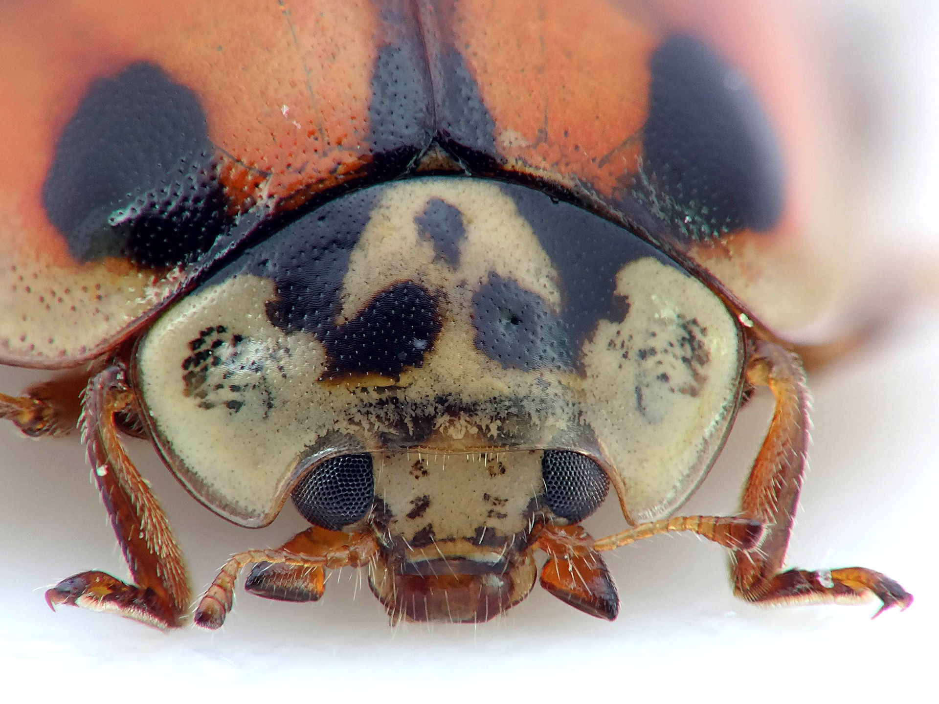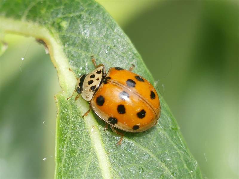 Harmonia quadripunctata) sind die schwarzen Punkte in Reihen von 1-3-3-1 angeordnet. Variante 3 ähnlich zur Variante 2 des Zweipunkt-Marienkäfers (