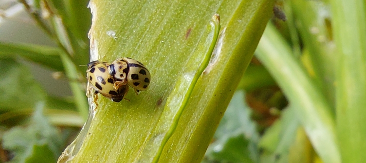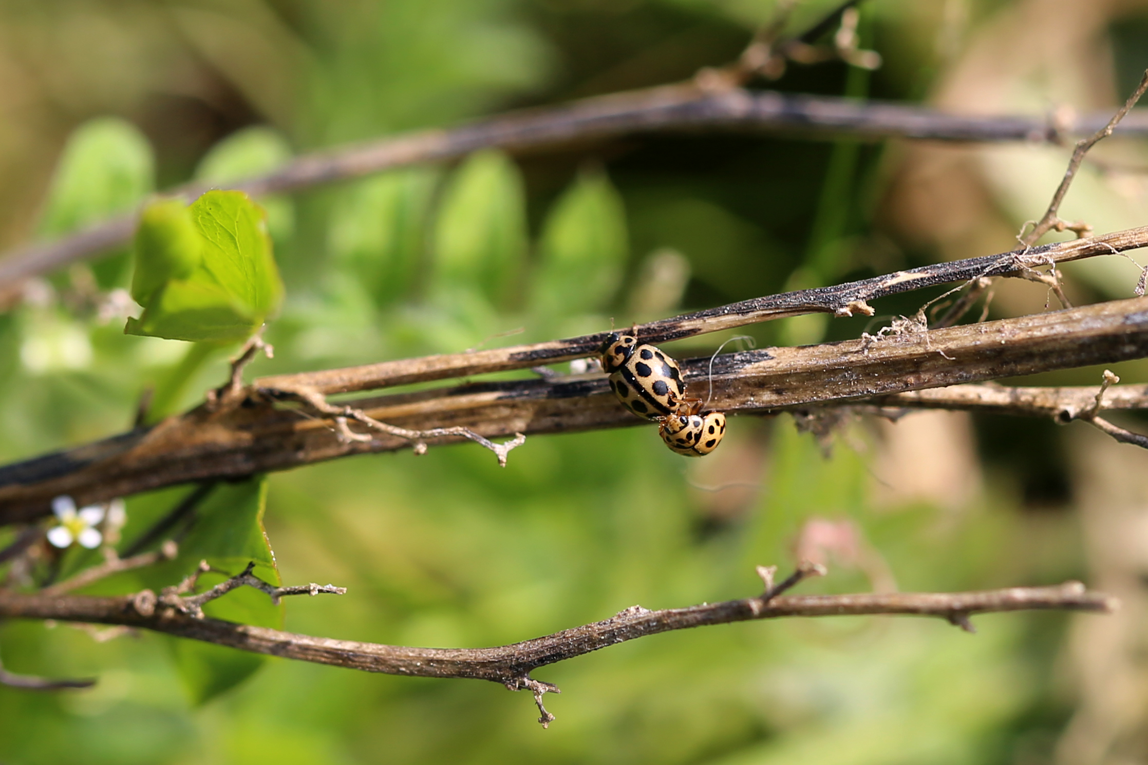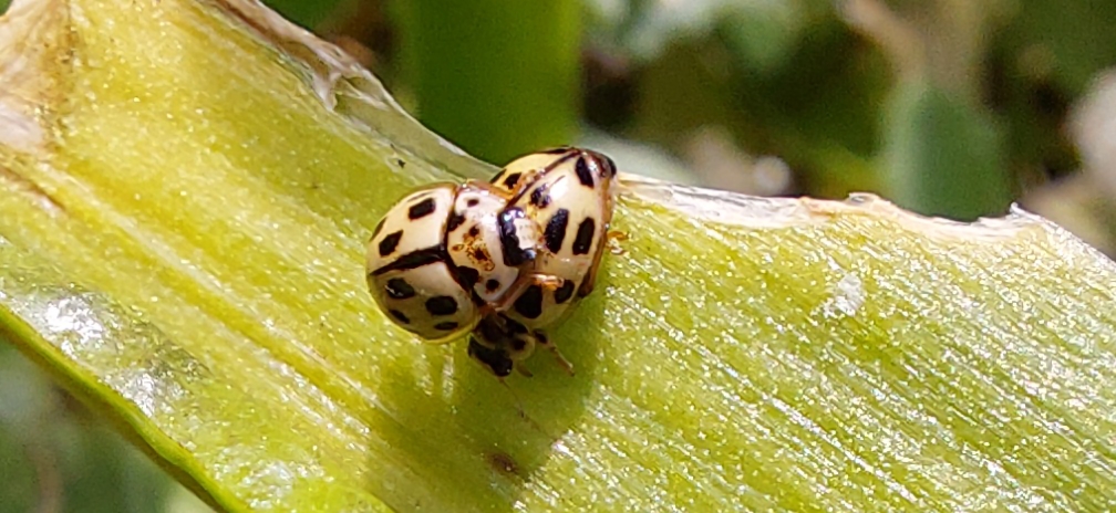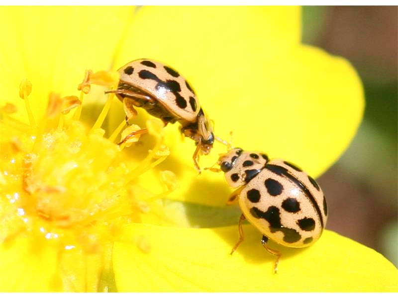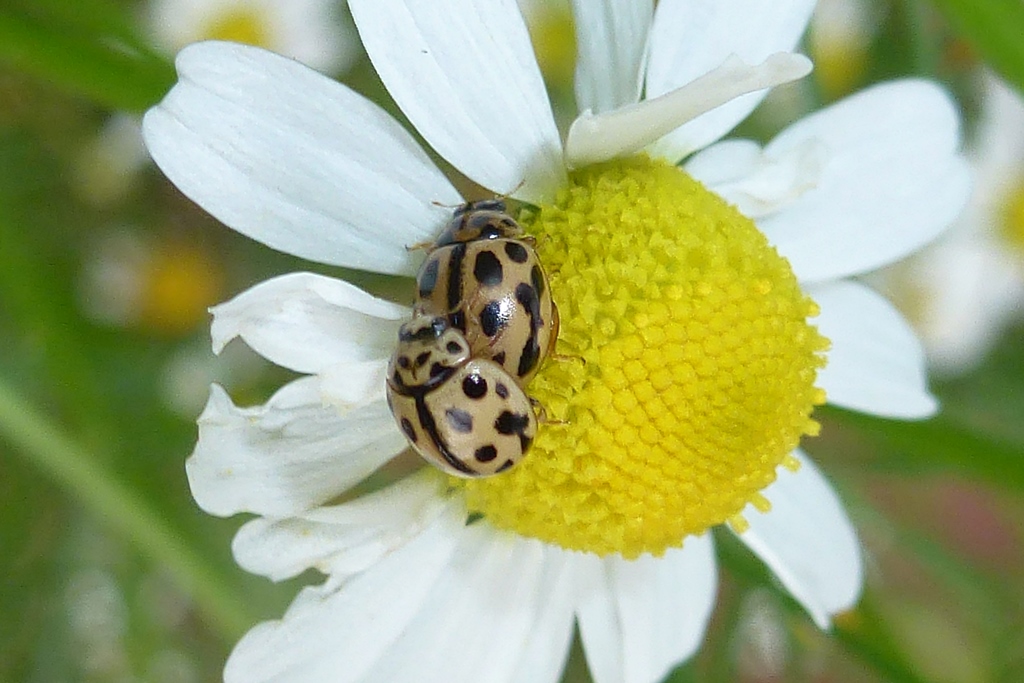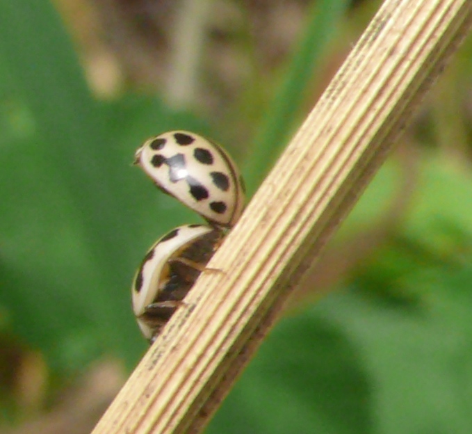 Sechzehnpunkt-Marienkäfer bei der Paarung. Skassa, Juni 2014.