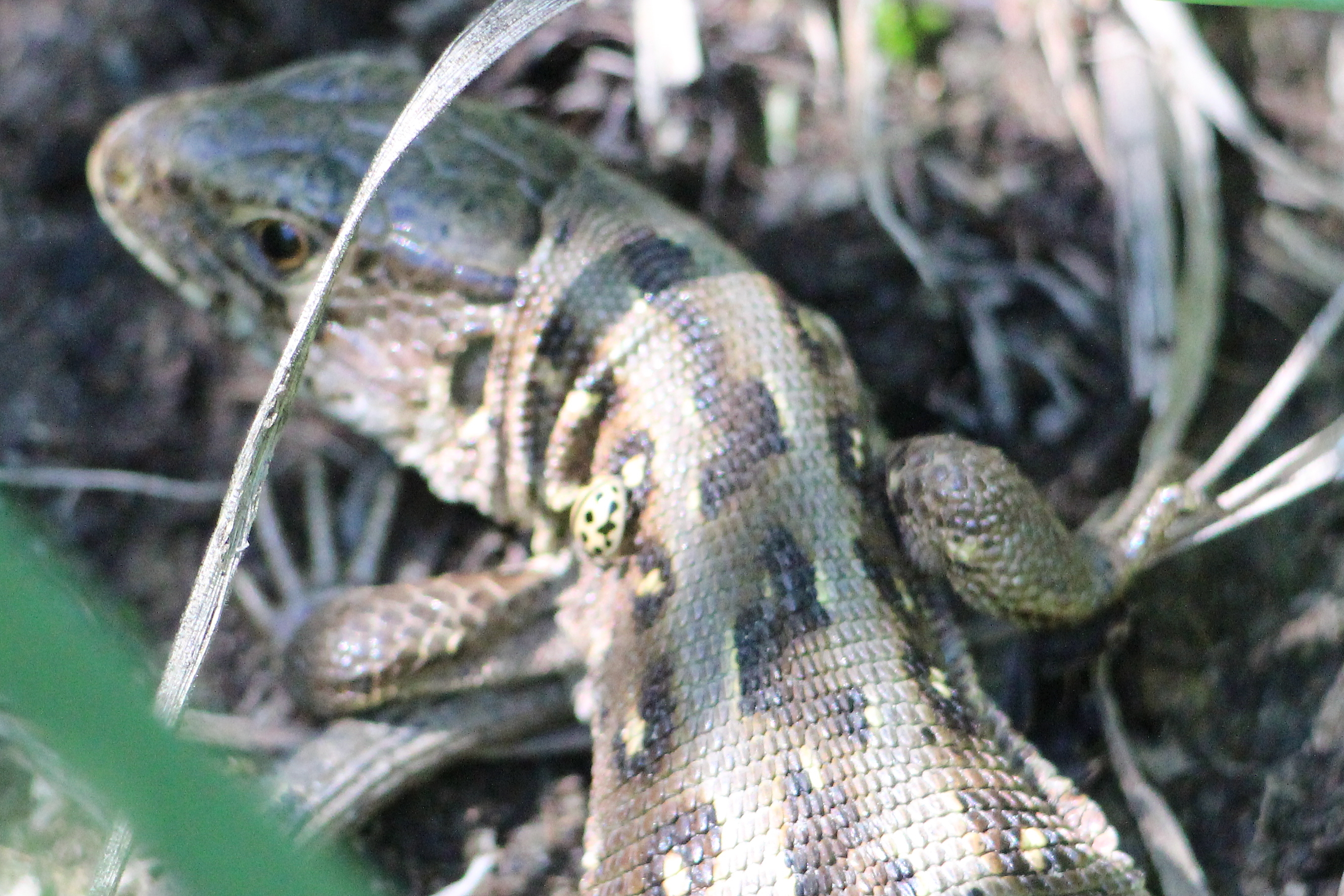 Leippe-Torno, April 2022, an gefälltem Kiefernholz beim Sonnenbaden