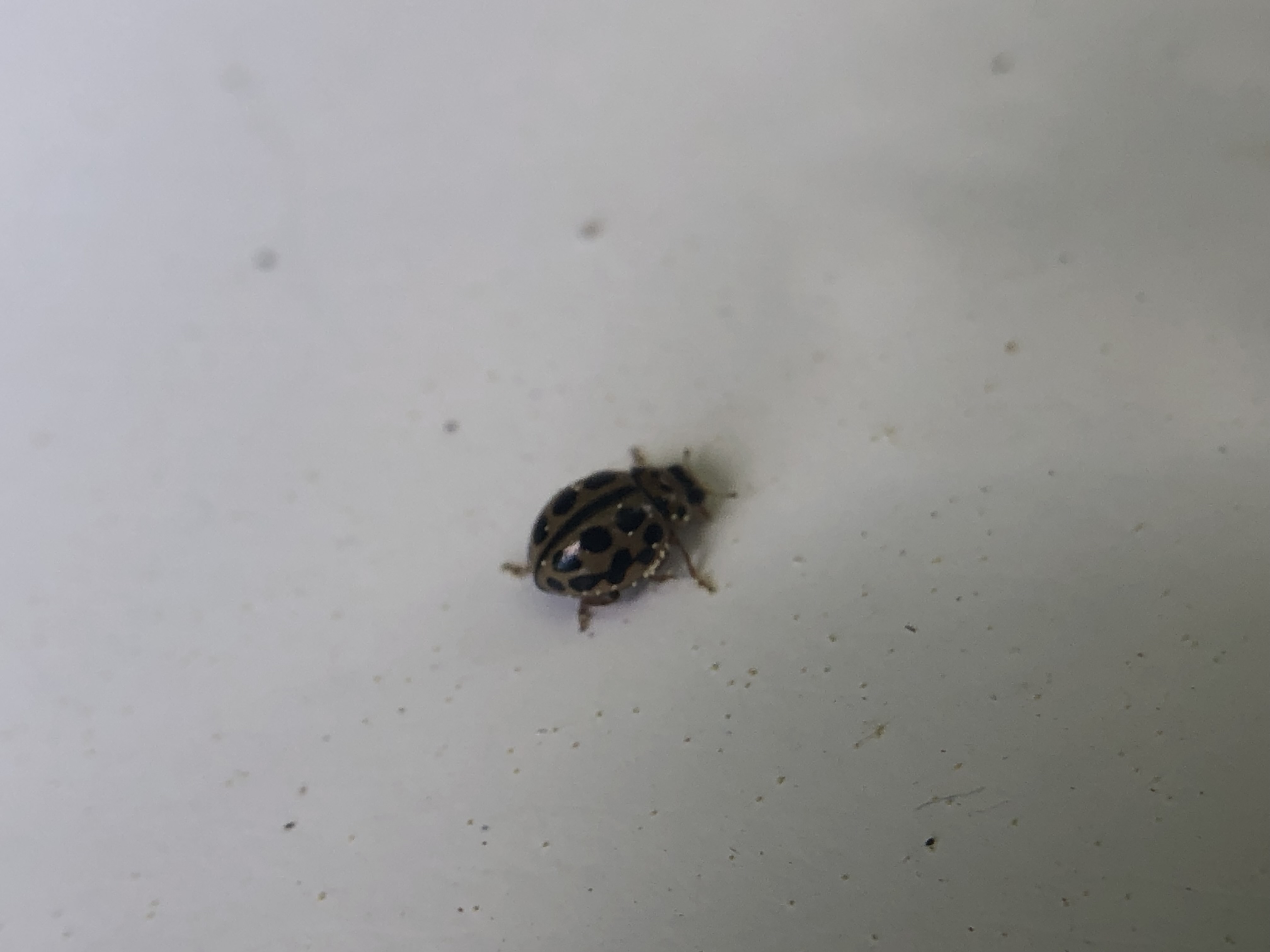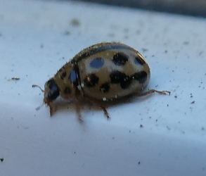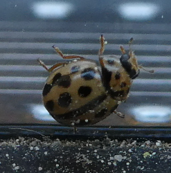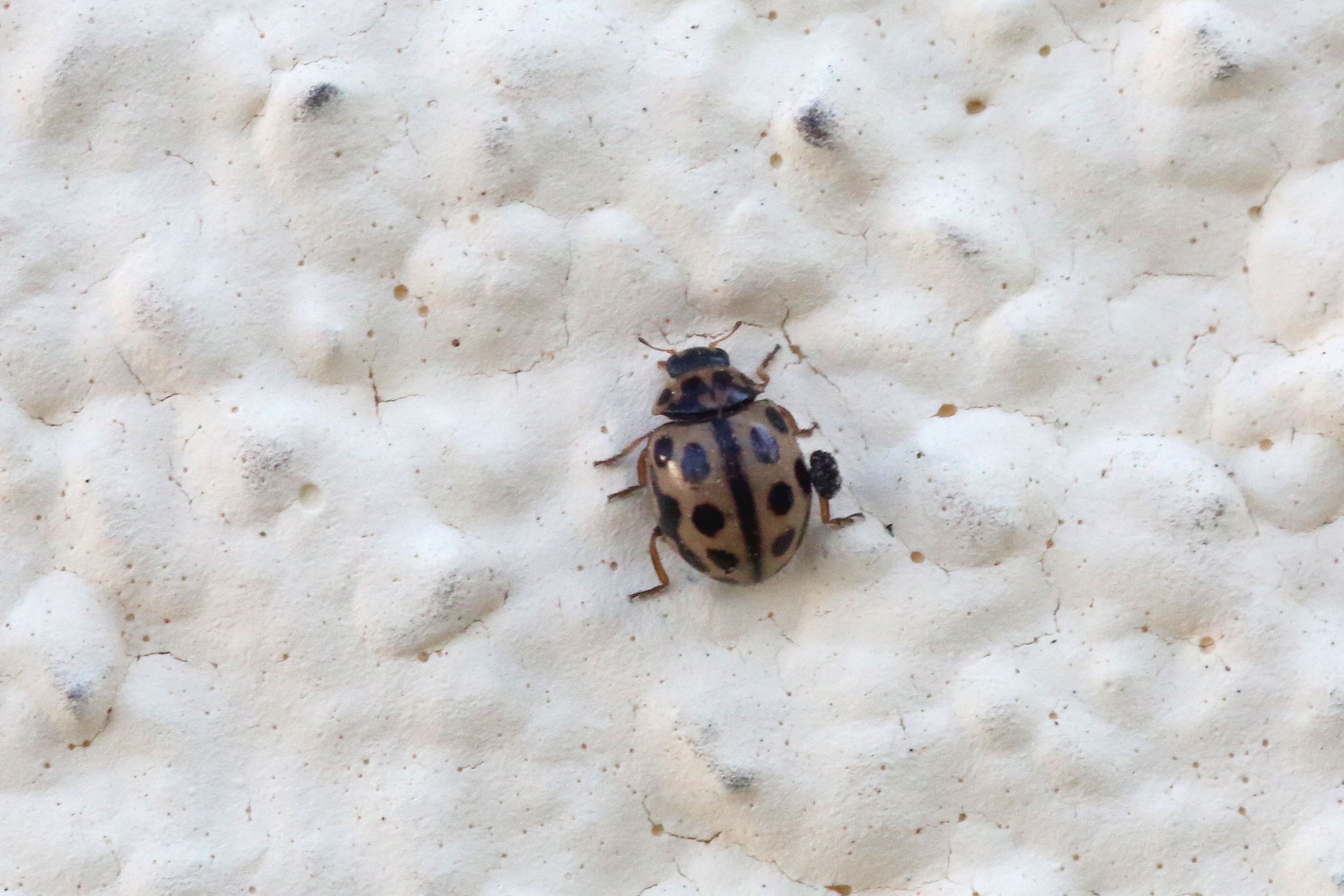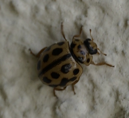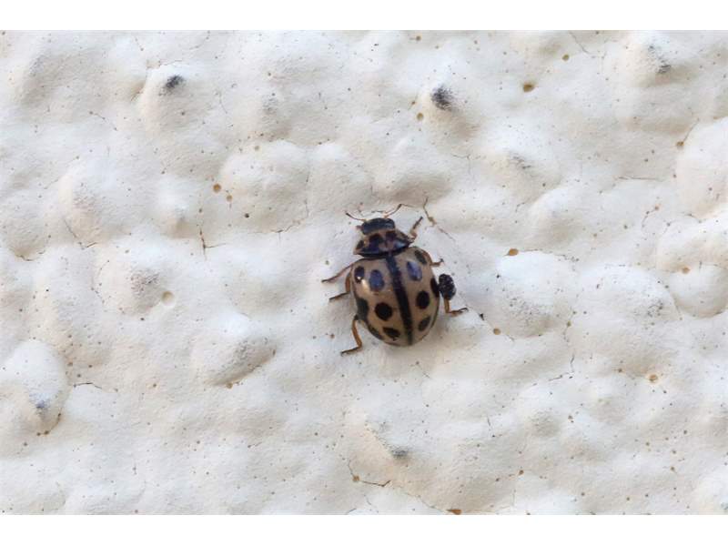Sechzehnpunkt-Marienkäfer (Tytthaspis sedecimpunctata), Radebeul, Hauswand, April 2018