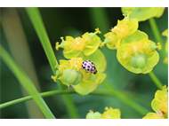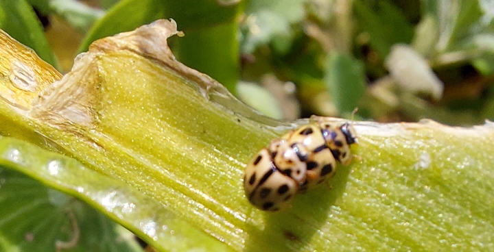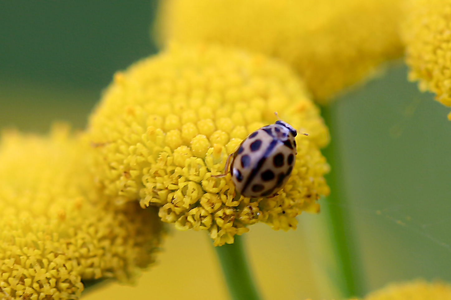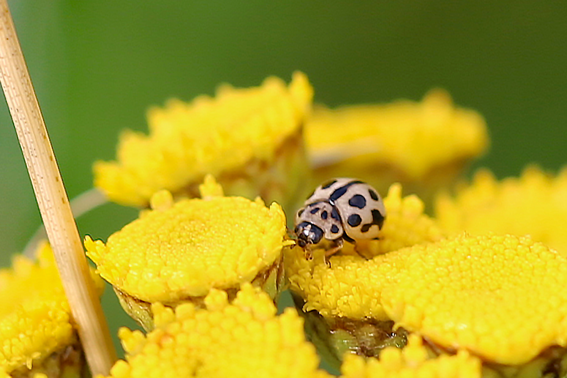Sechzehnpunkt-Marienkäfer (Tytthaspis sedecimpunctata) in Hoyerswerda Altstadt am Bahndamm, 15.07.2018