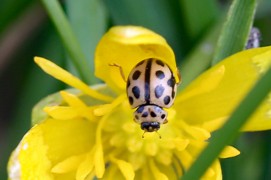 Sechzehnpunkt-Marienkäfer (Tytthaspis sedecimpunctata (Linnaeus, 1758)) auf Streuobstwiese im Vogtland, Juni 2018.
