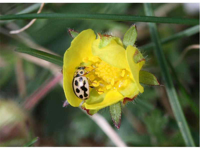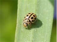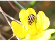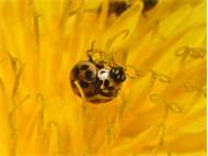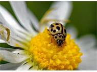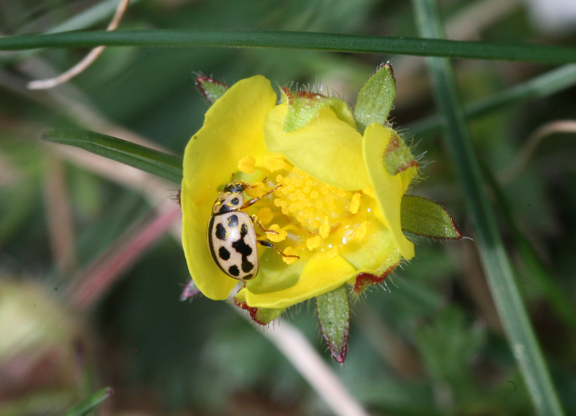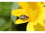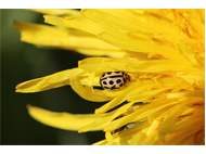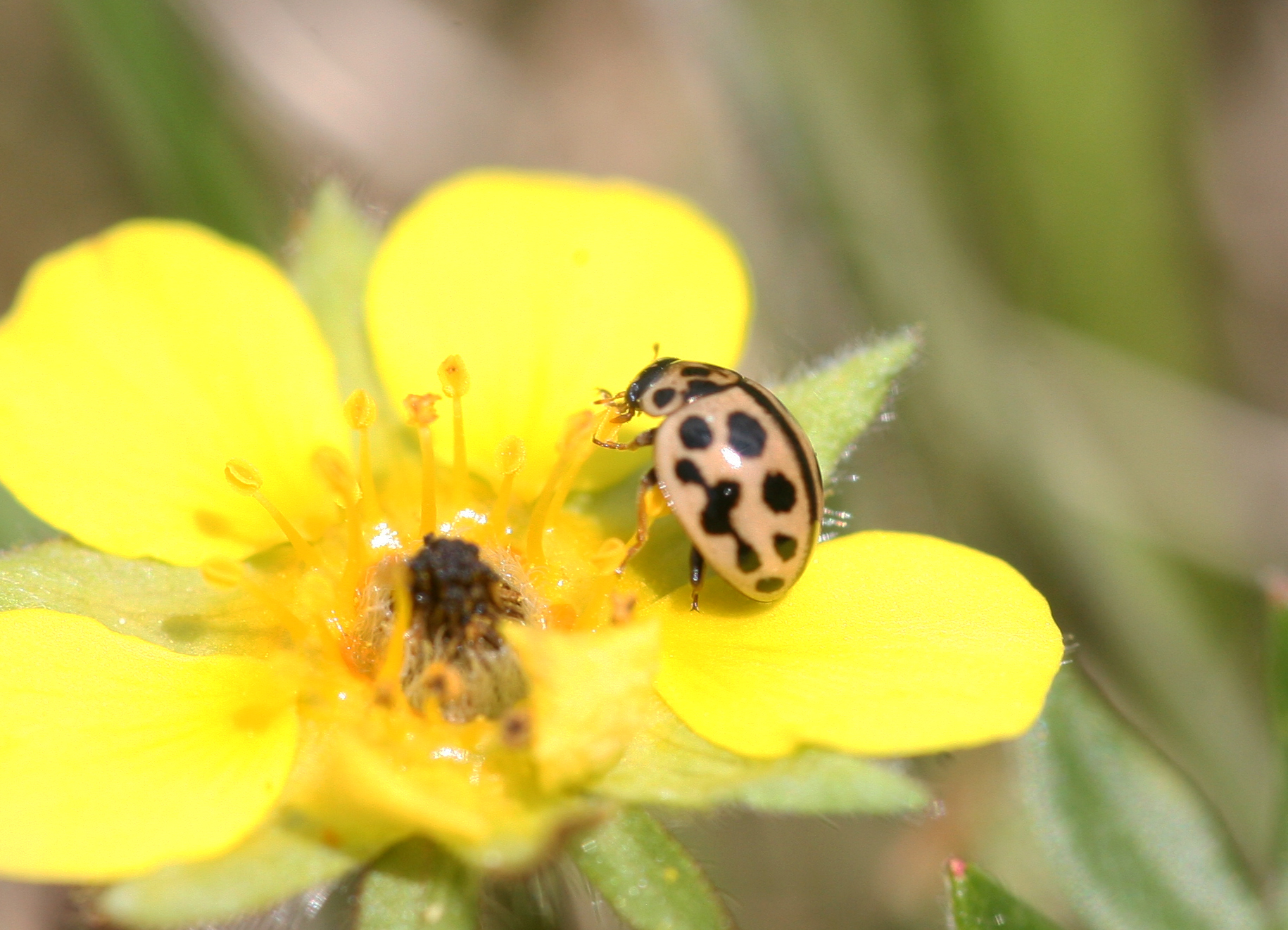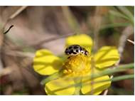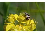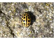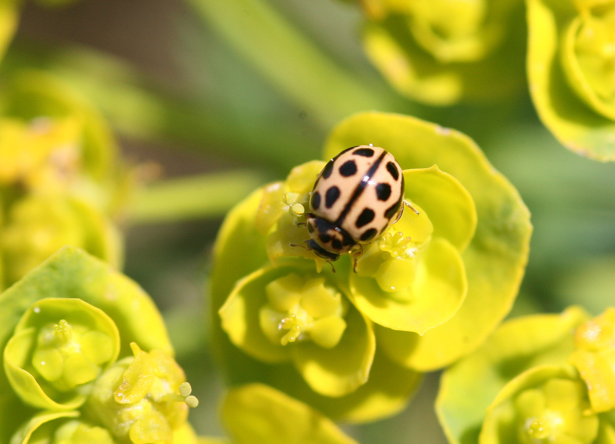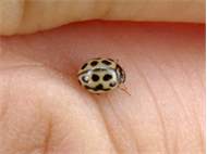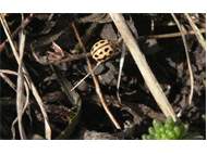 Sechzehnpunkt-Marienkäfer (Tytthaspis sedecimpunctata) in der Gemarkung Hohenprießnitz, Feldrand östlich vom Elsteich, März 2014