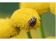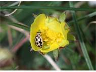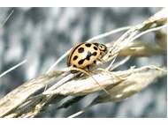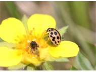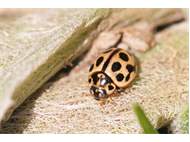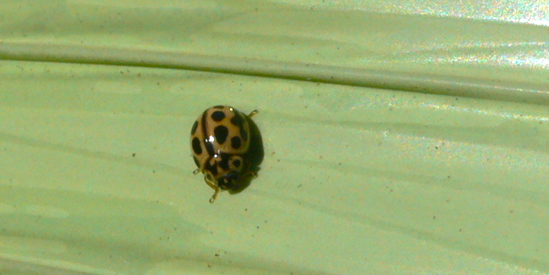 Sechzehnpunkt-Marienkäfer (Tytthaspis sedecimpunctata (Linnaeus, 1758)) beim Sonnenbad auf Silorollen, 2013