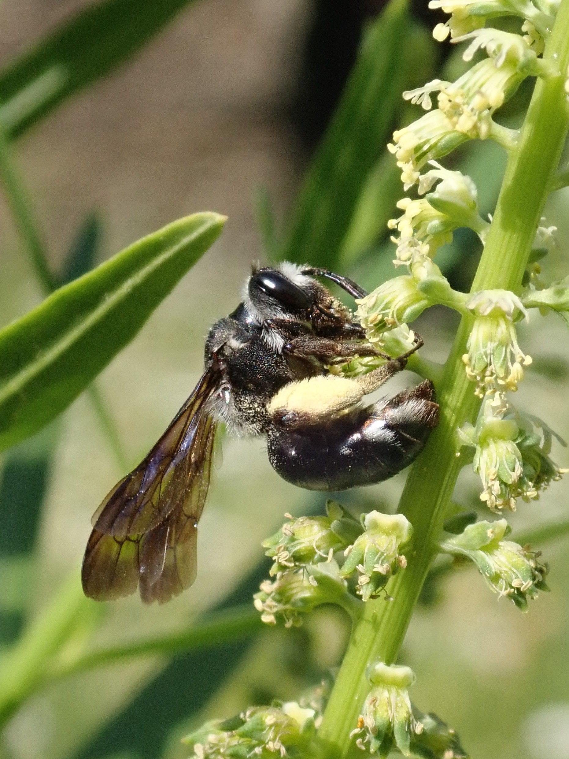 Andrena agilissima (Scopoli, 1770), Weibchen an Reseda luteola auf Blühfläche der NABU-Naturschutzstation Schloss Heynitz, Heynitz, Juni 2018