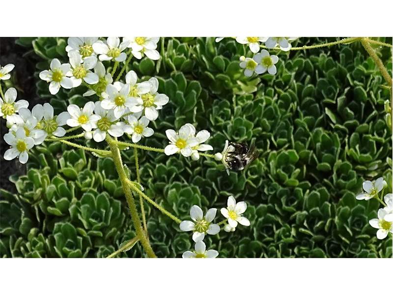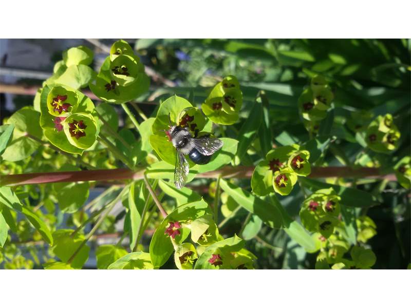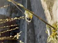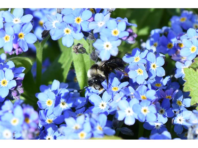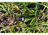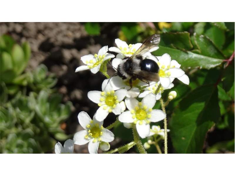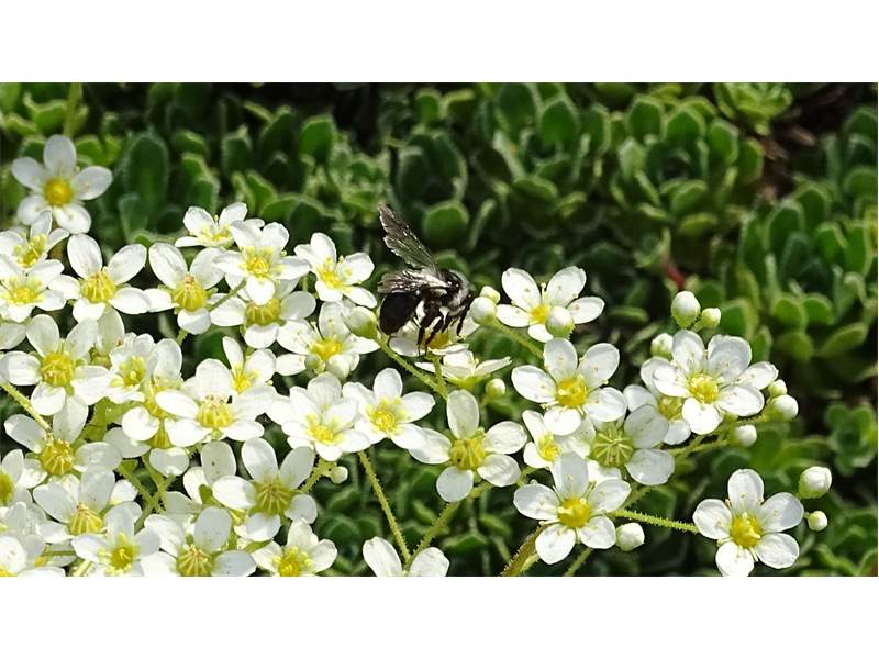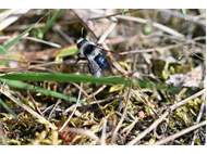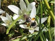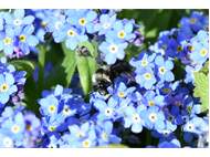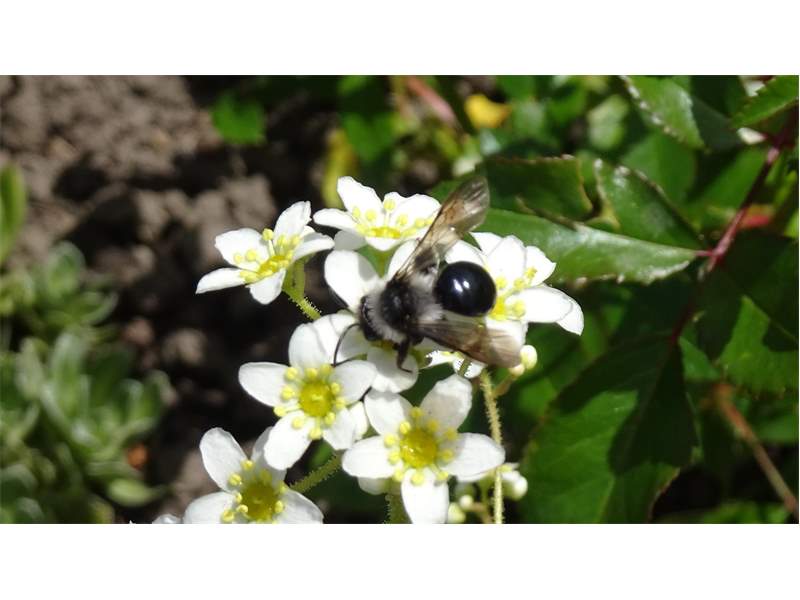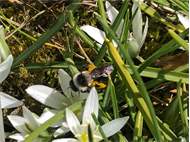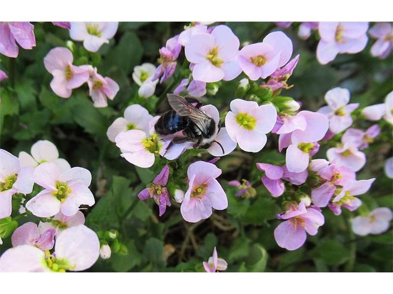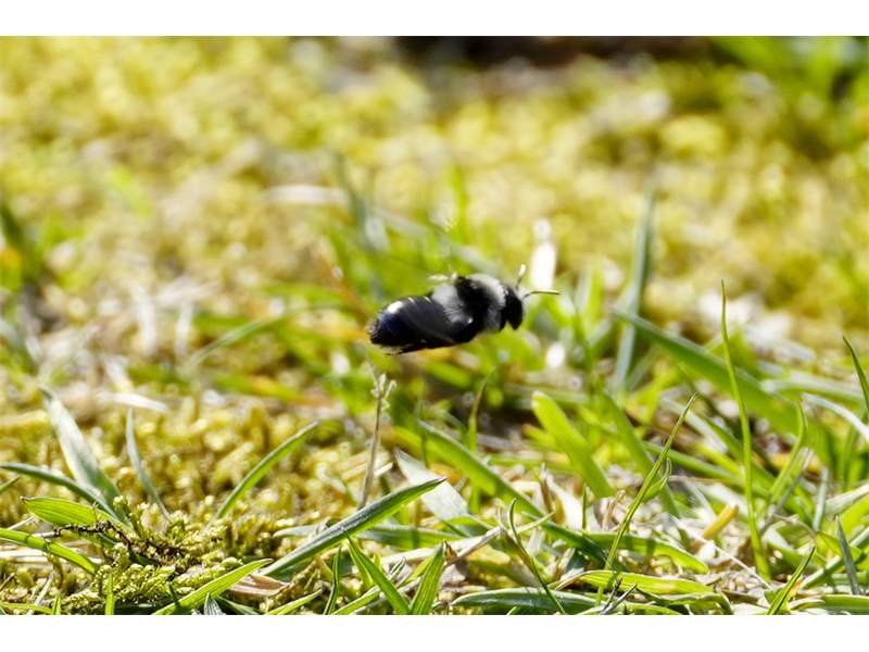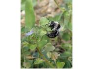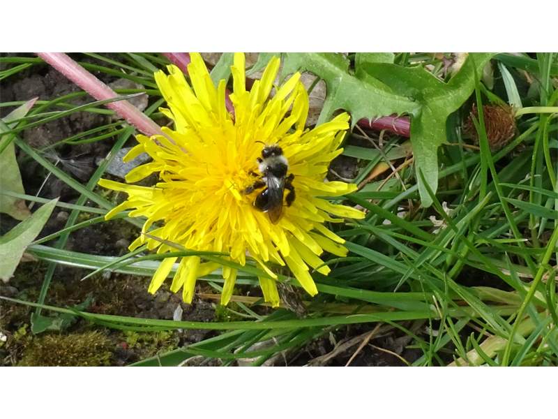 Graue Sandbiene (Andrena cineraria (Linnaeus, 1758)), Weibchen, Blütenbesuch an Efeu-Ehrenpreis (Veronica hederifolia), für die relativ große Biene eine sichtliche Herausforderung, Roßwein OT Gleisberg, April 2020 (© Andreas Hurtig)( Bild vergrößern)