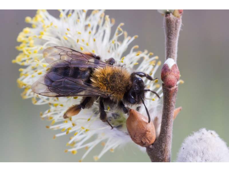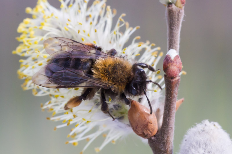 Zum Pollensammeln auf Weide spezialisiert (oligolektisch). Flugzeit entsprechend früh, von März bis April.