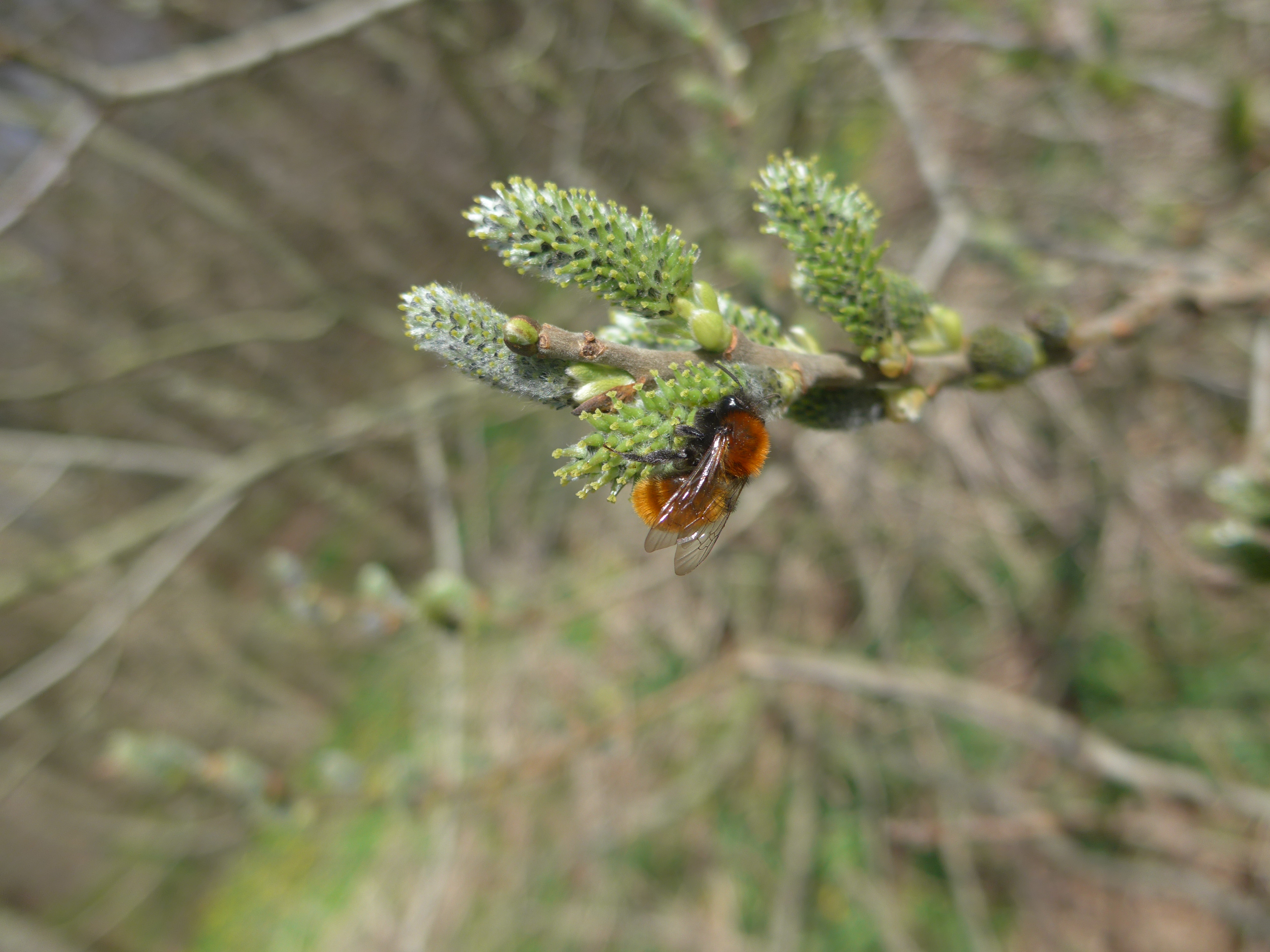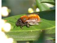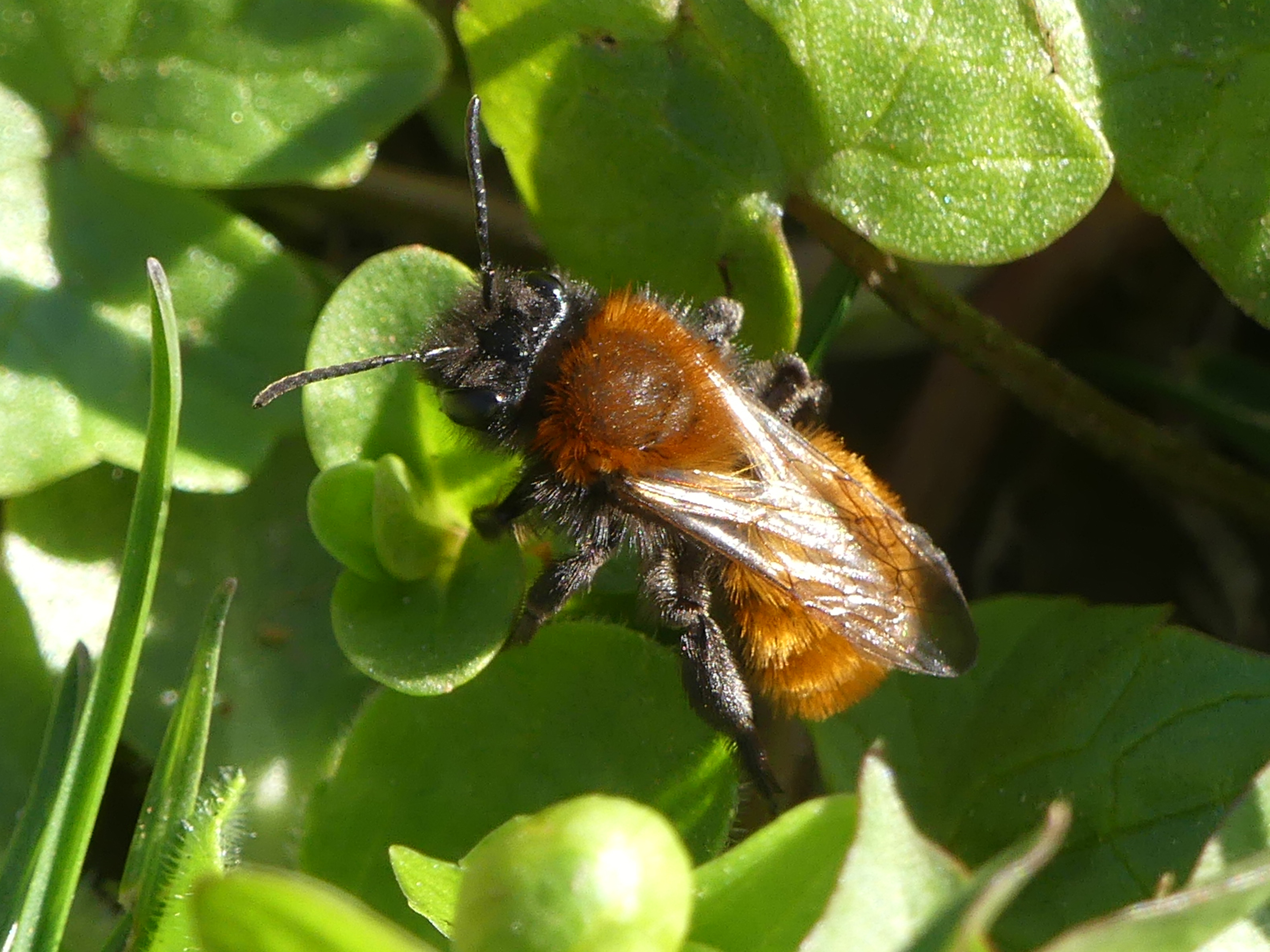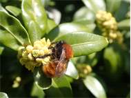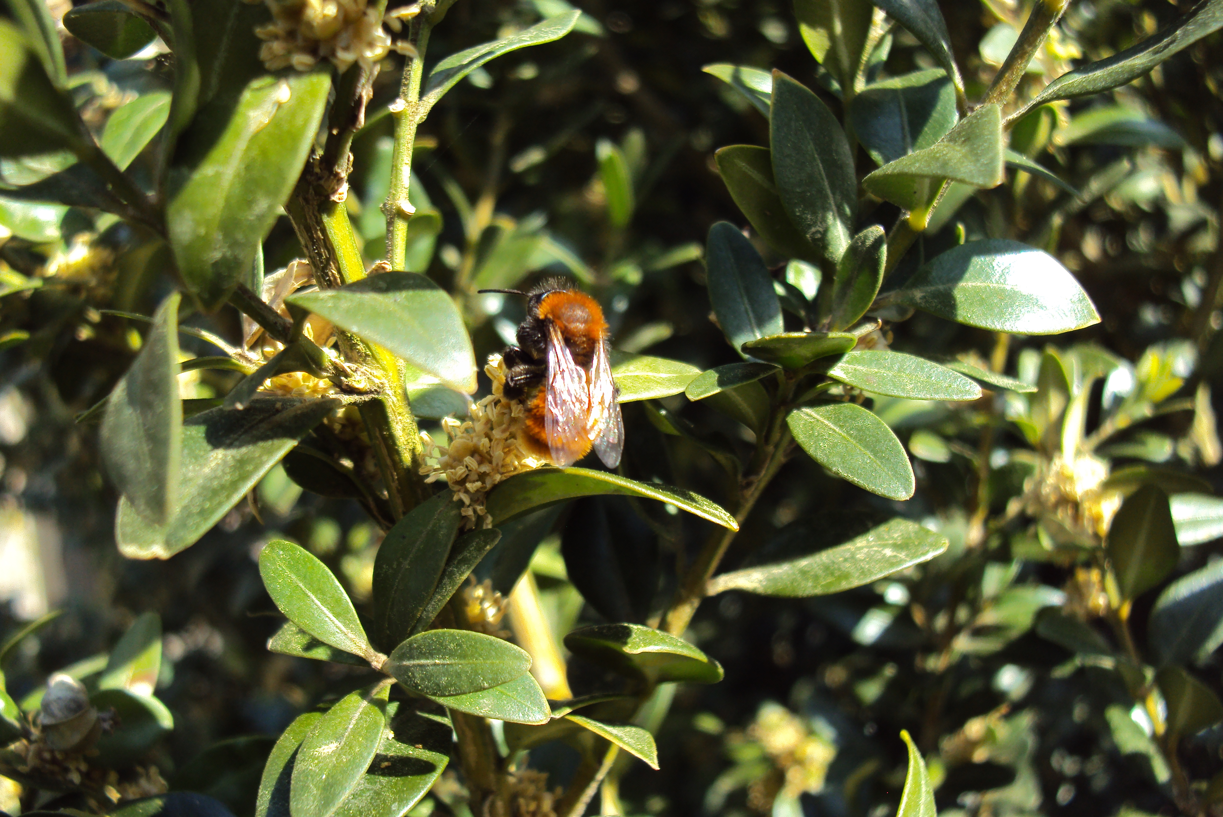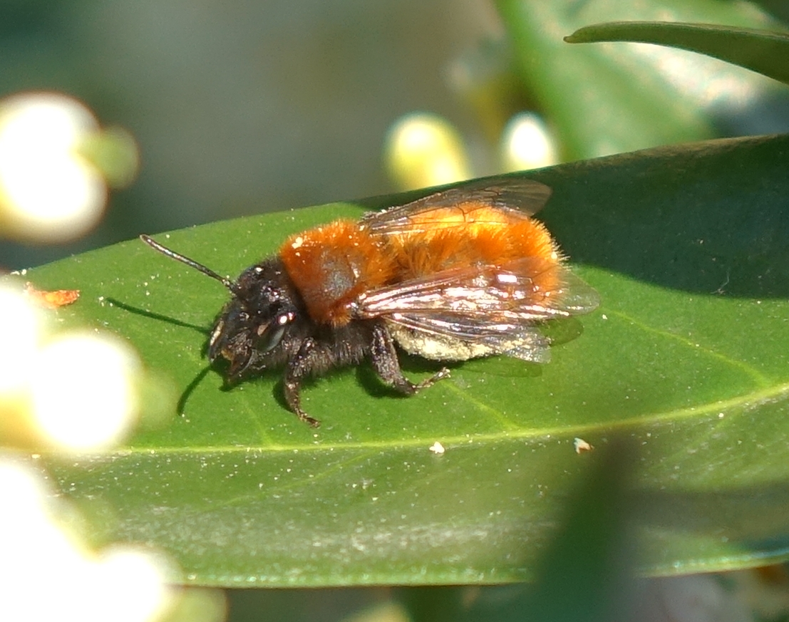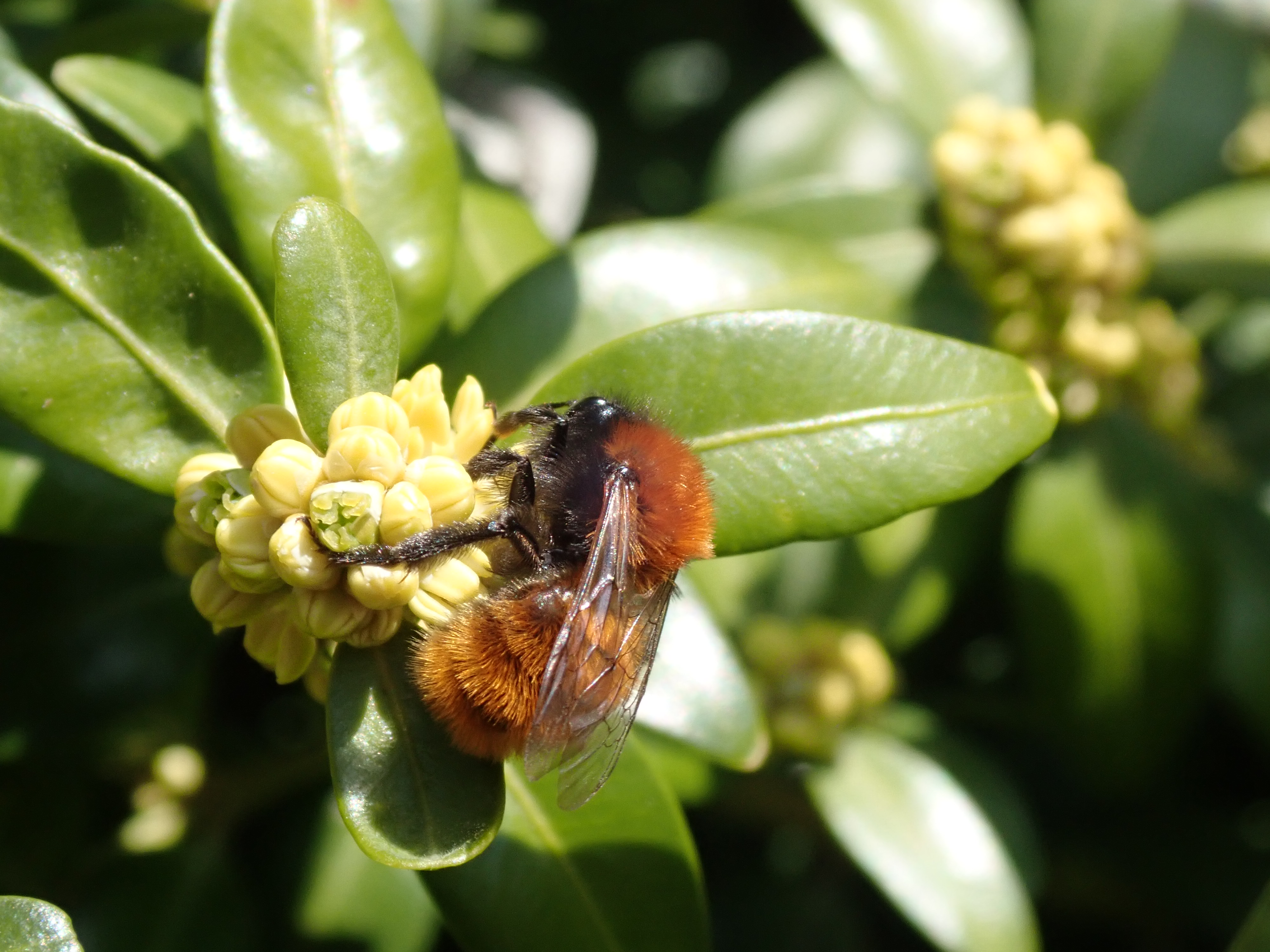 Rotpelzige Sandbiene (Andrena fulva (Müller, 1766)), Weibchen an Buchsbaum, Gleisberg, April 2018 (© Andreas Hurtig)( Bild vergrößern)