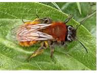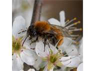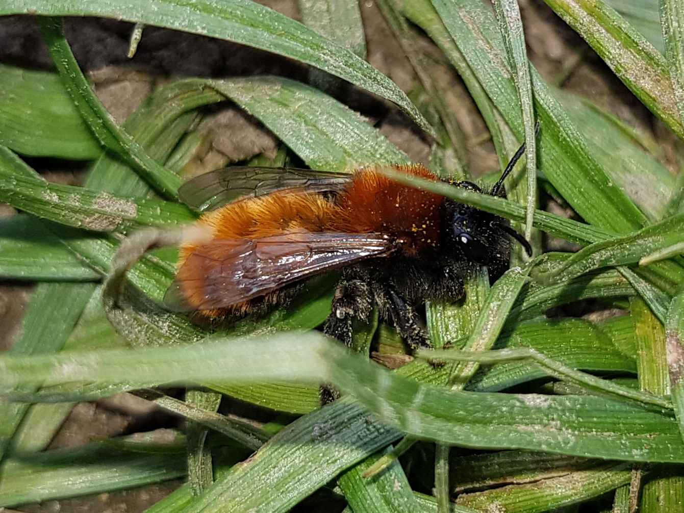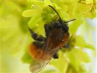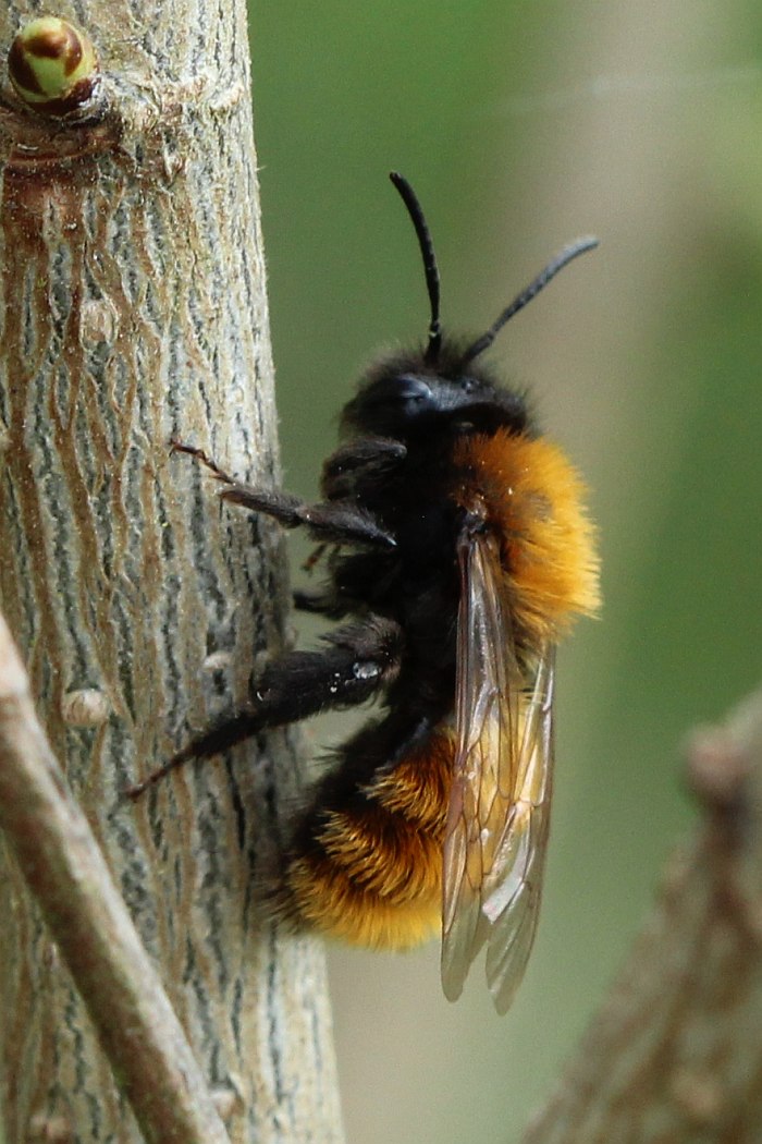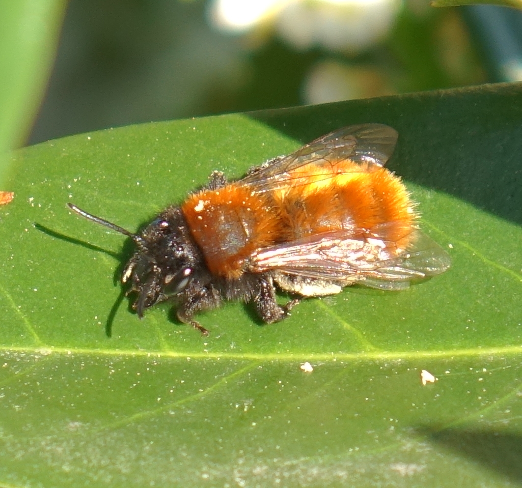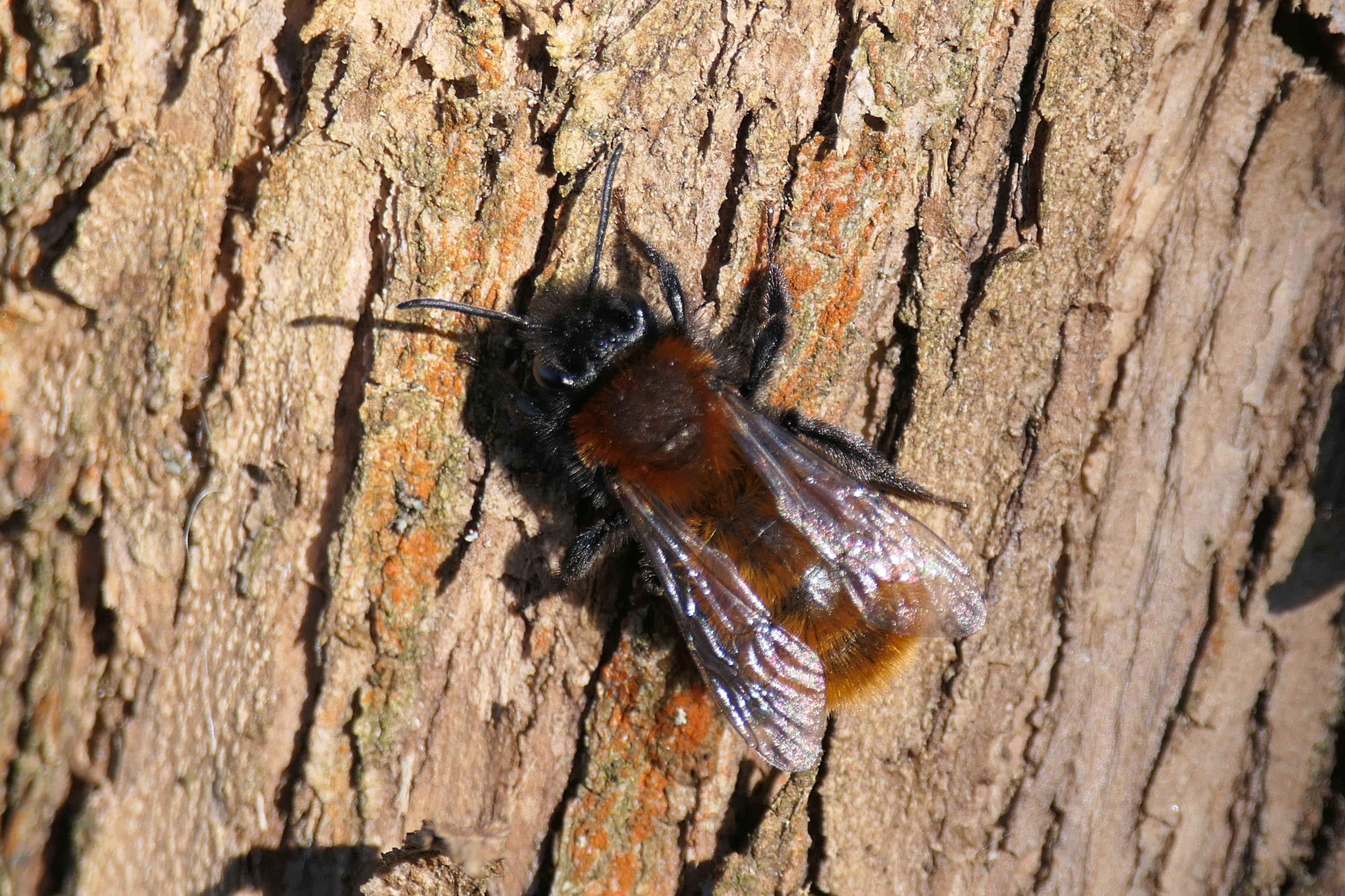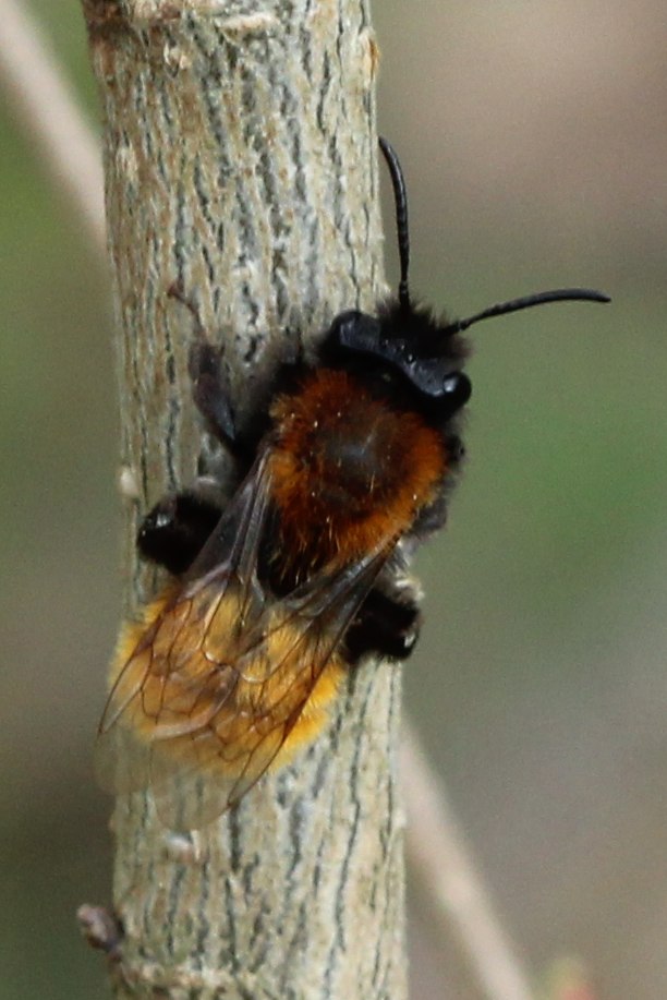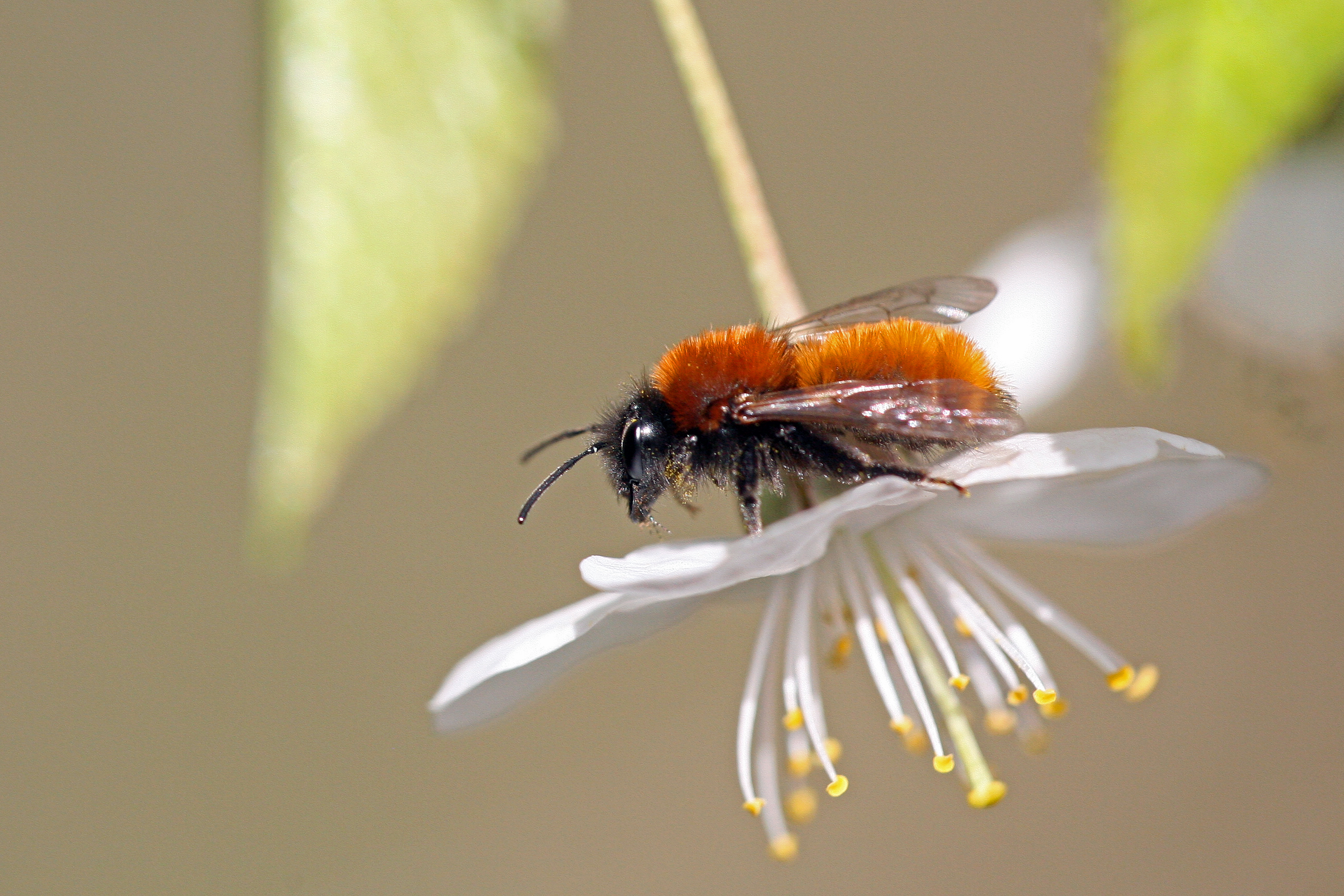 Rotpelzige Sandbiene (Andrena fulva (Müller, 1766)), Weibchen an Buchsbaum, Gleisberg, April 2018 (© Andreas Hurtig)( Bild vergrößern)
