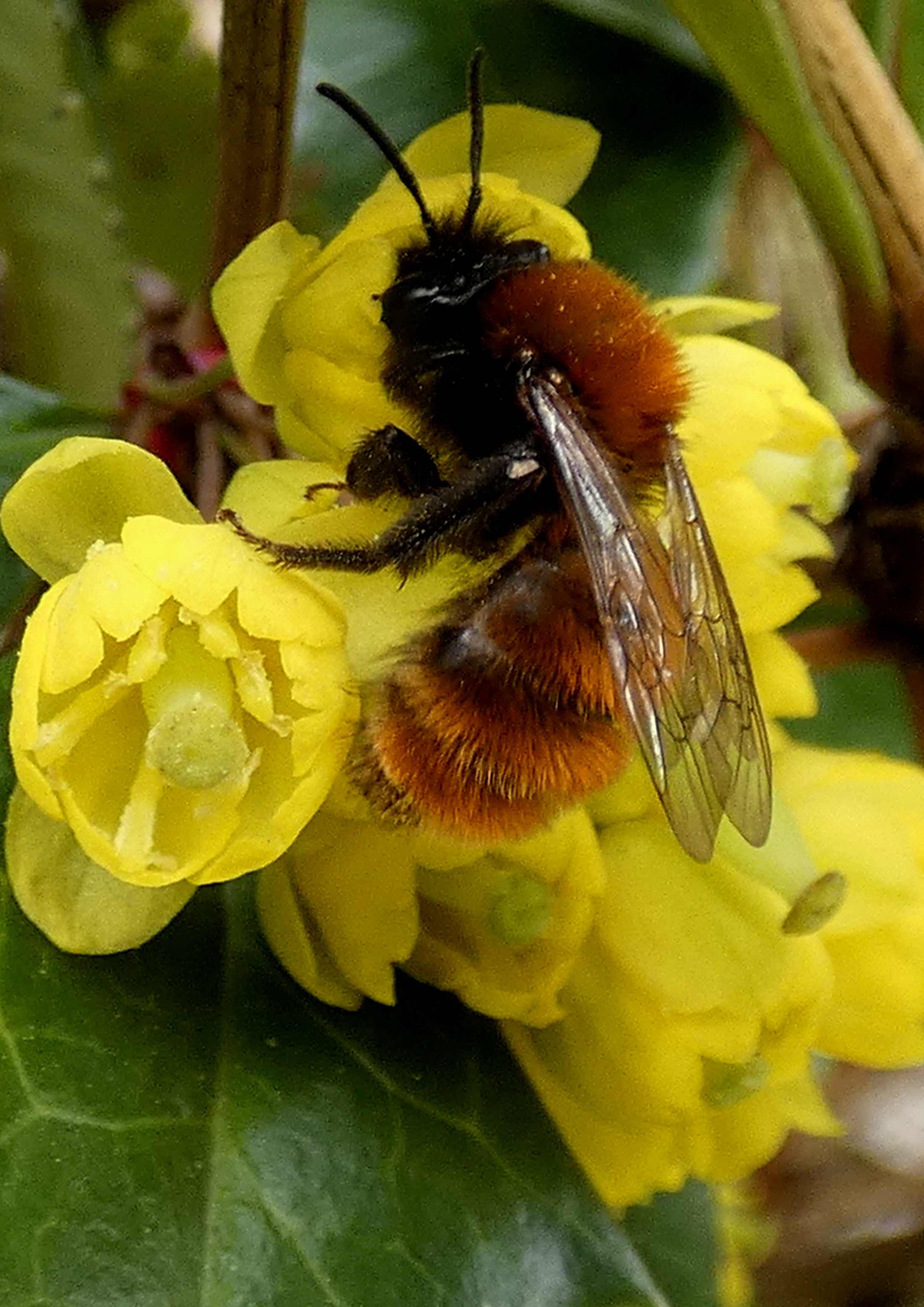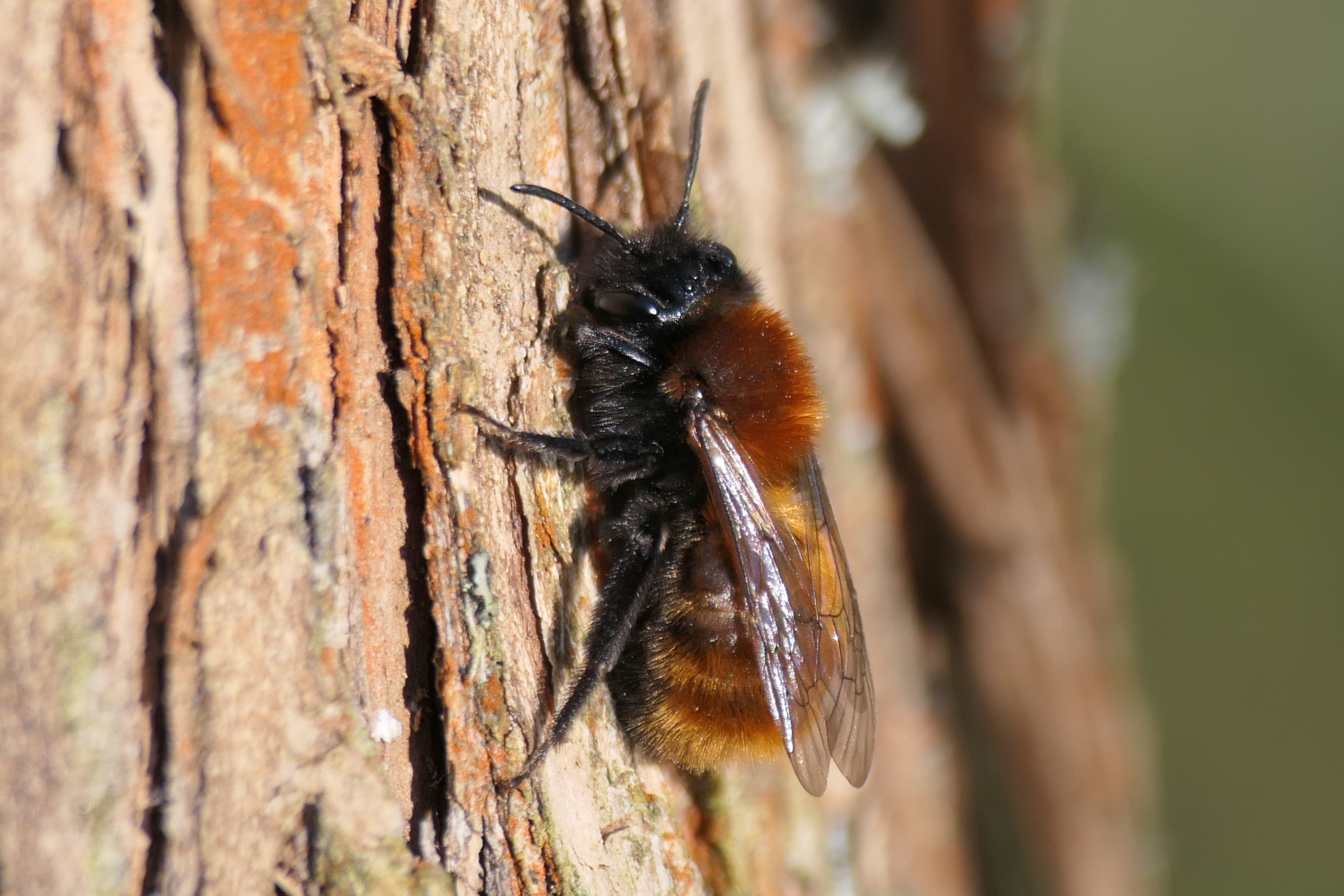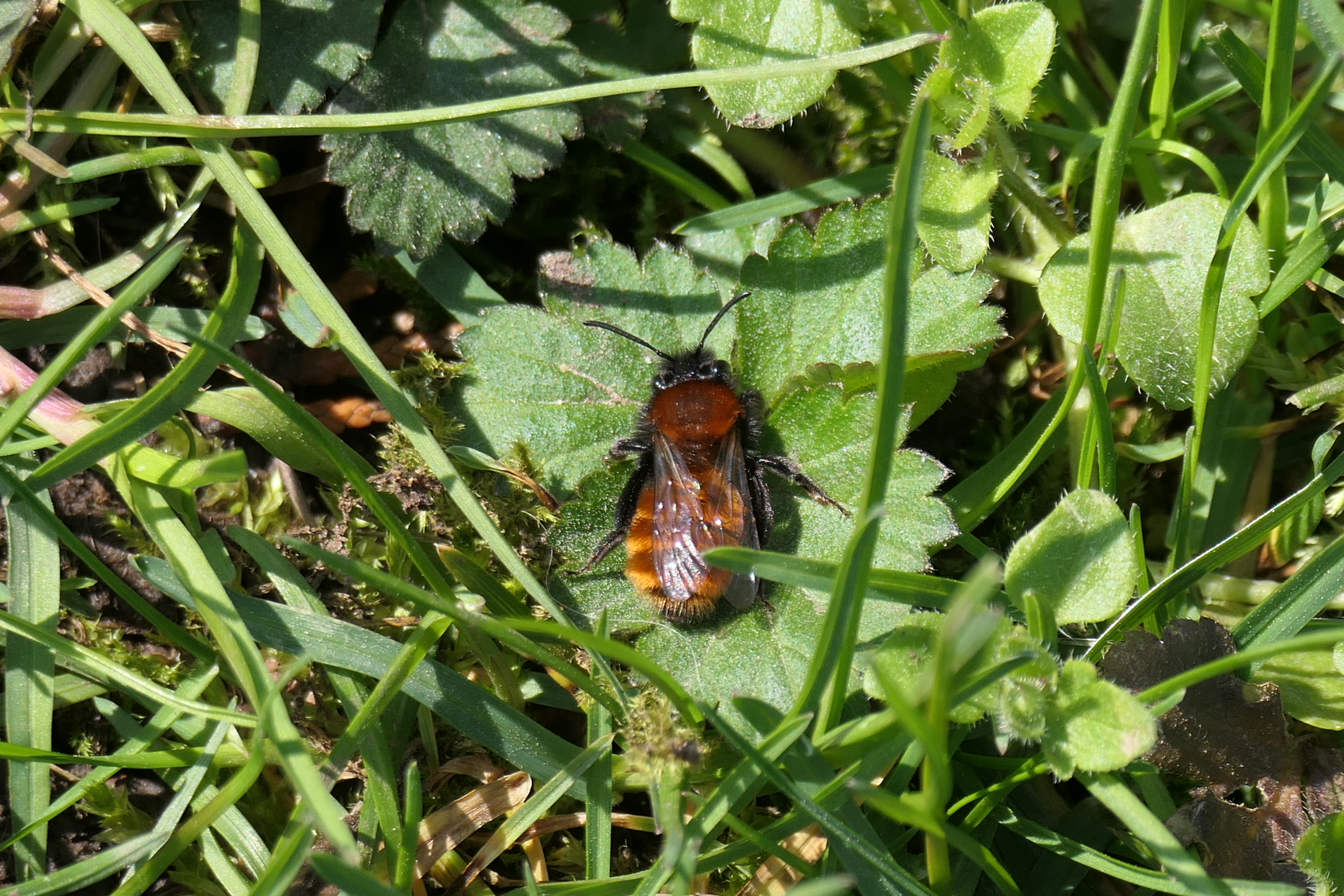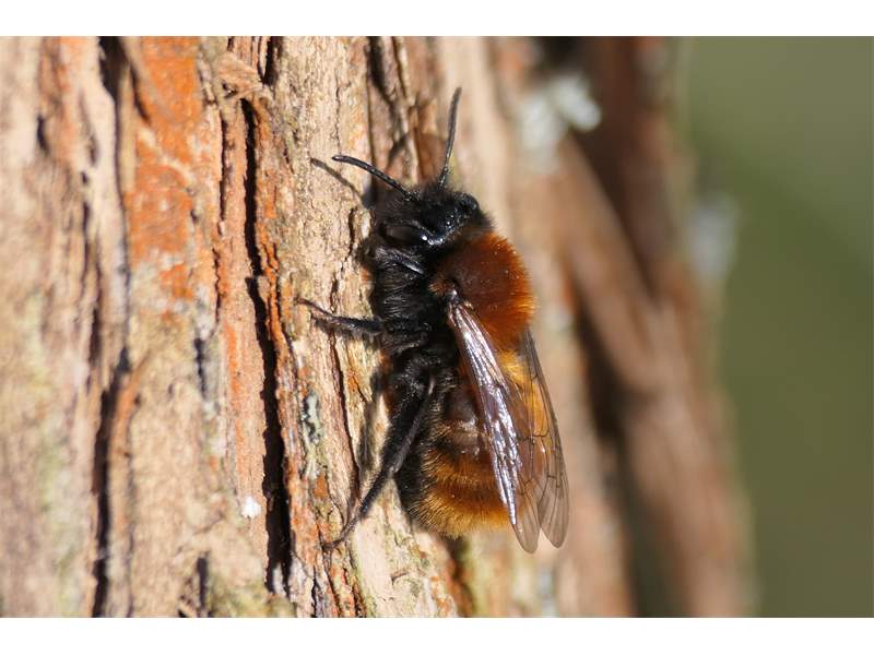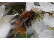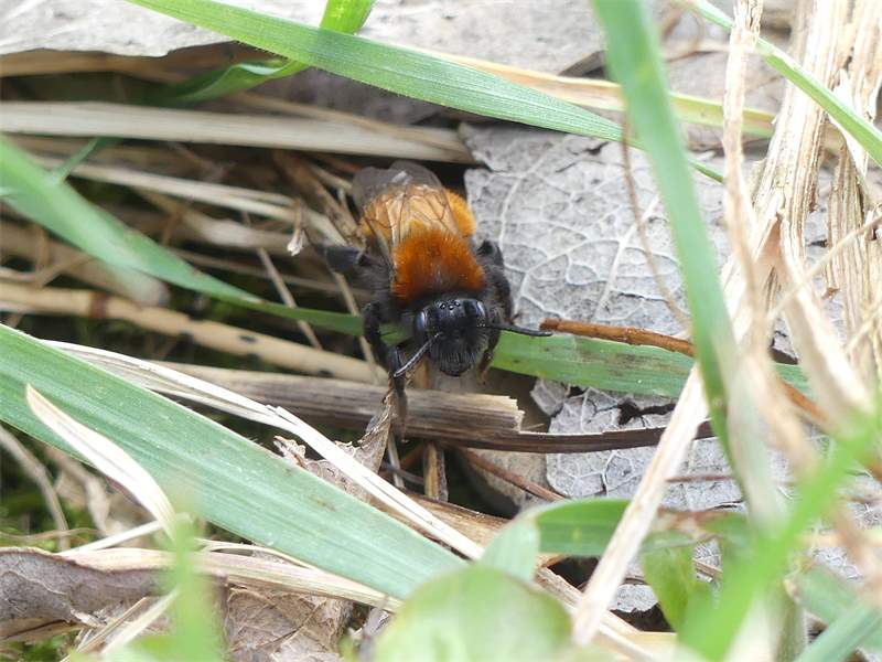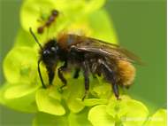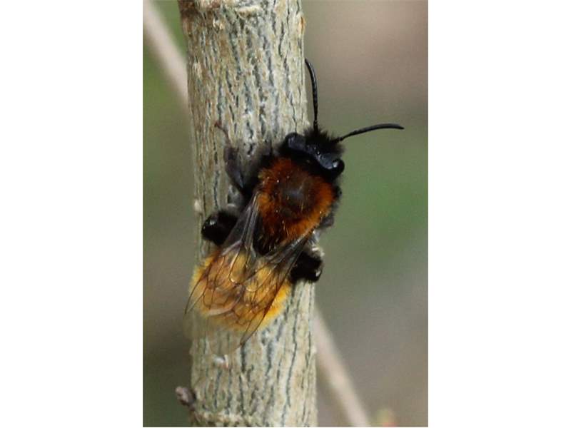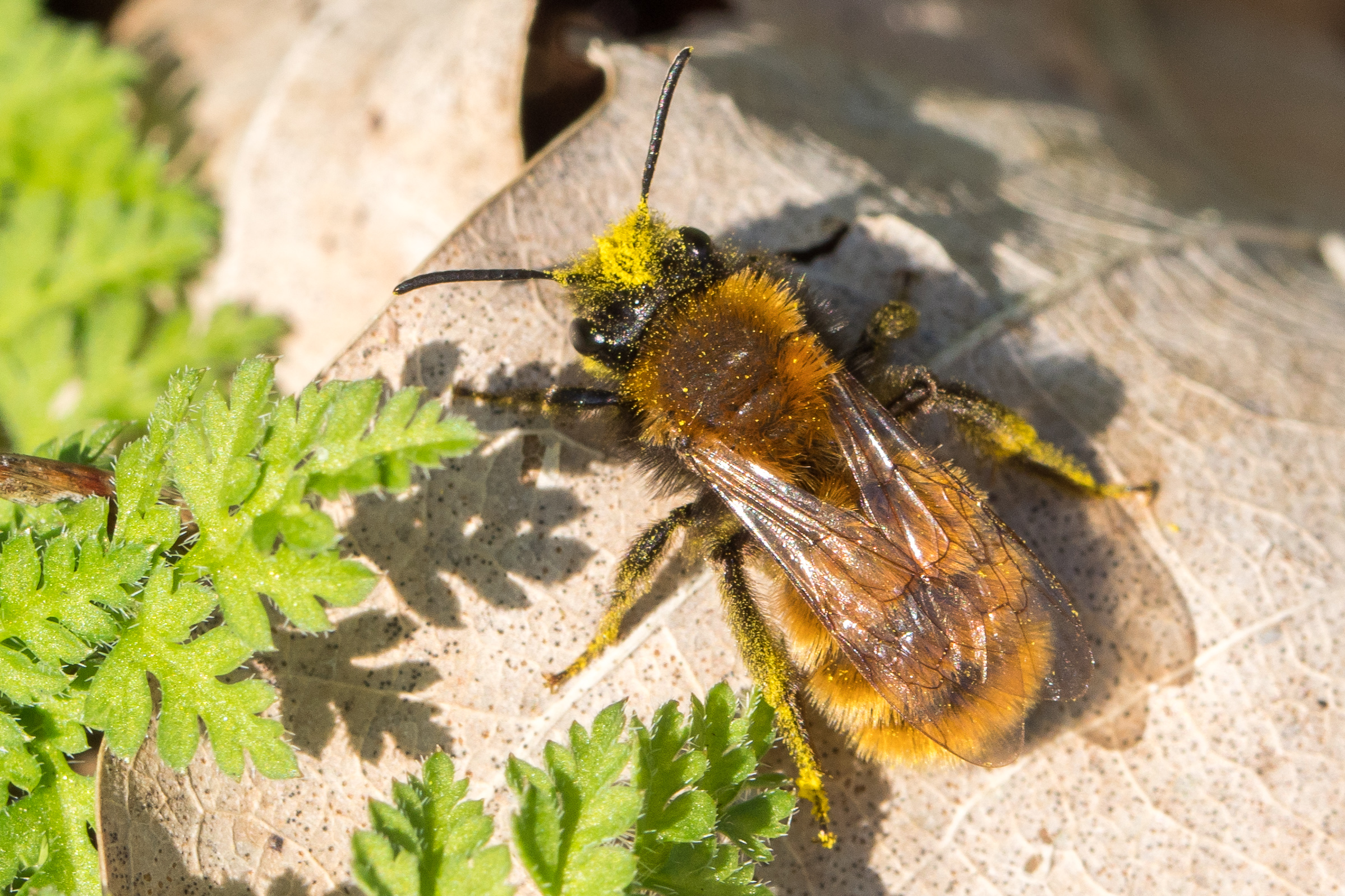 Rotpelzige Sandbiene (Andrena fulva (Müller, 1766)), Weibchen an Buchsbaum, Gleisberg, April 2018 (© Andreas Hurtig)( Bild vergrößern)