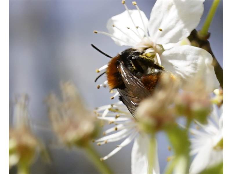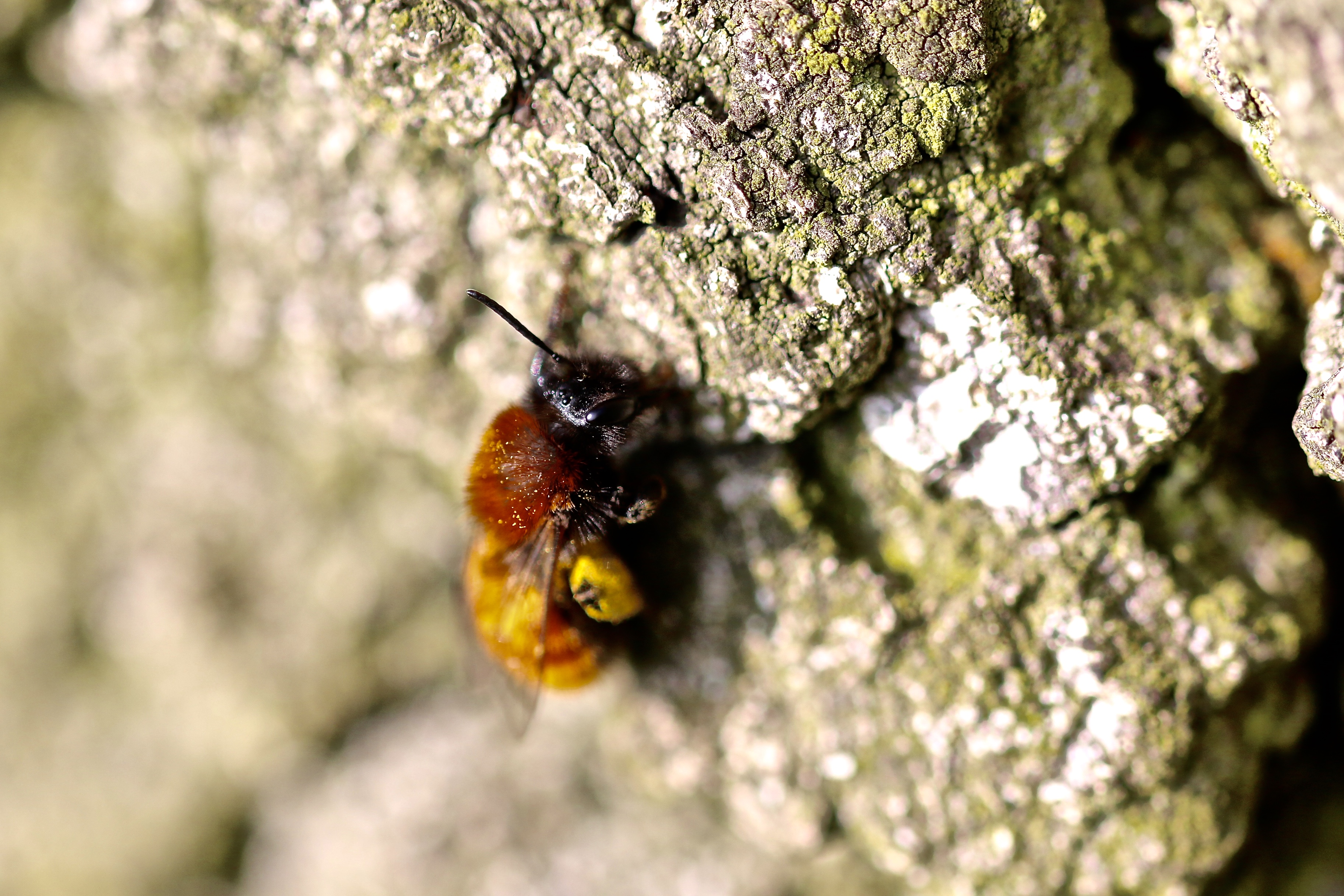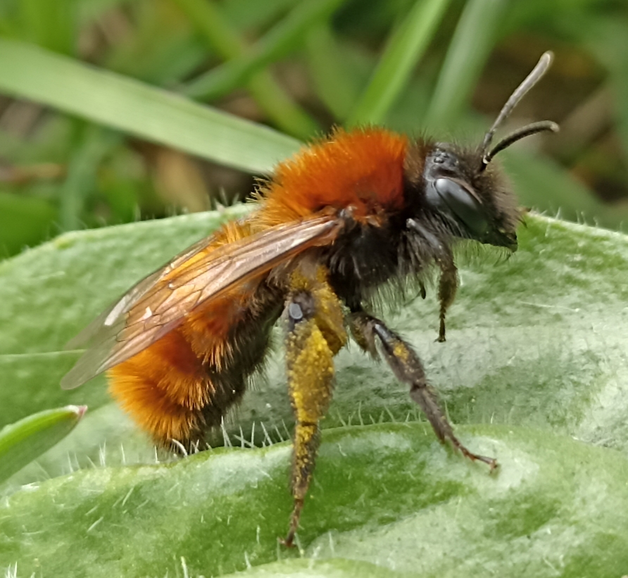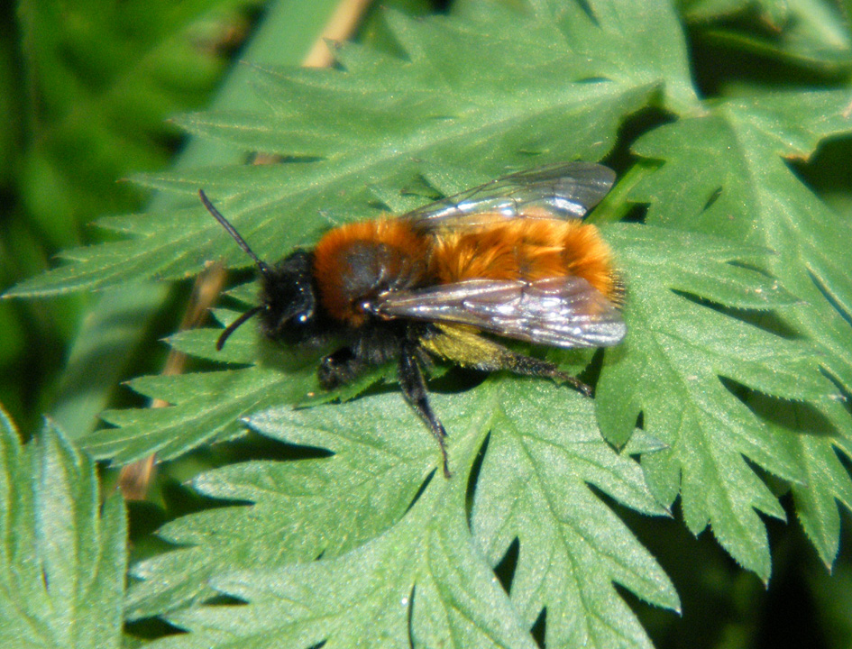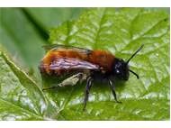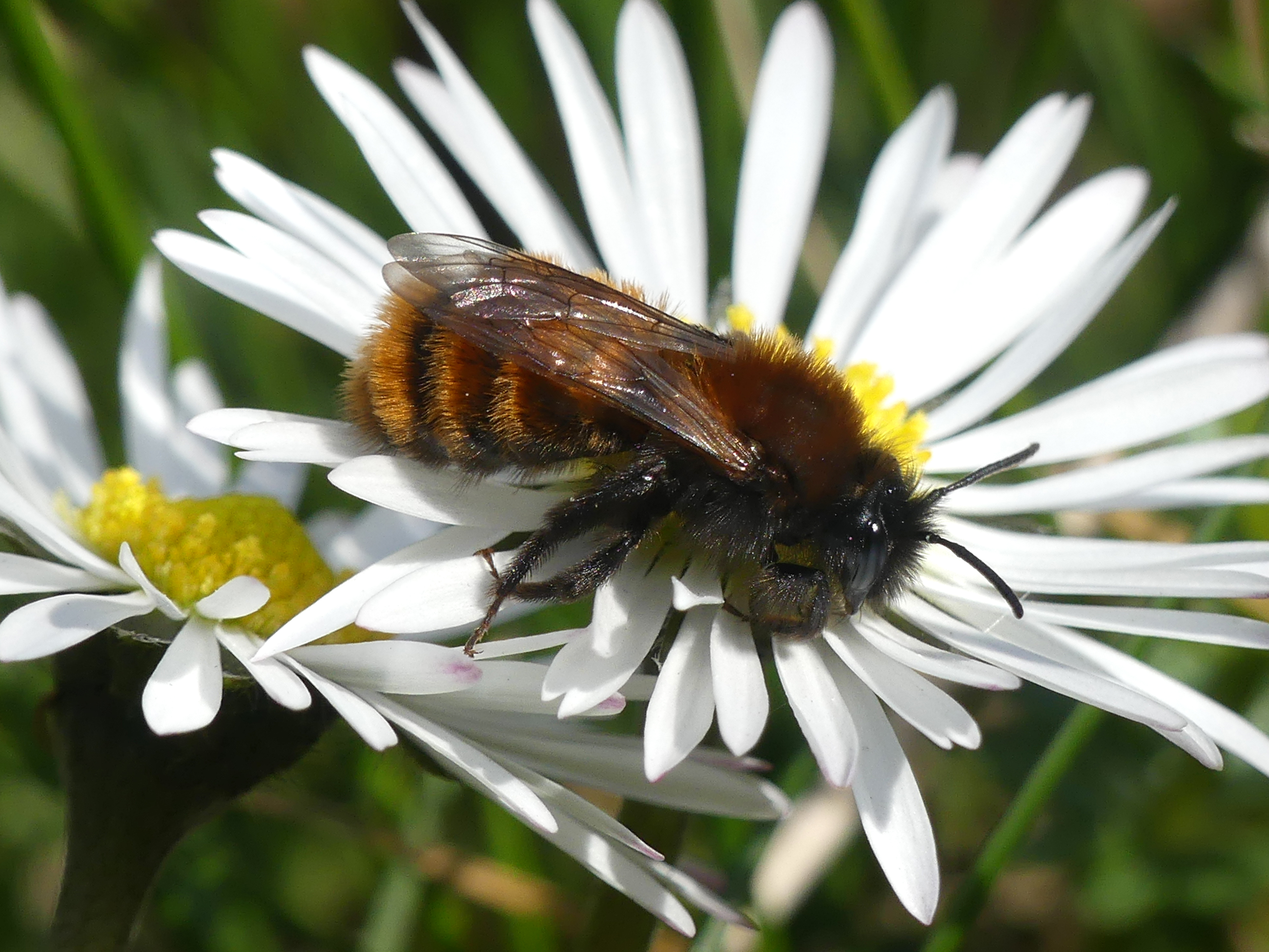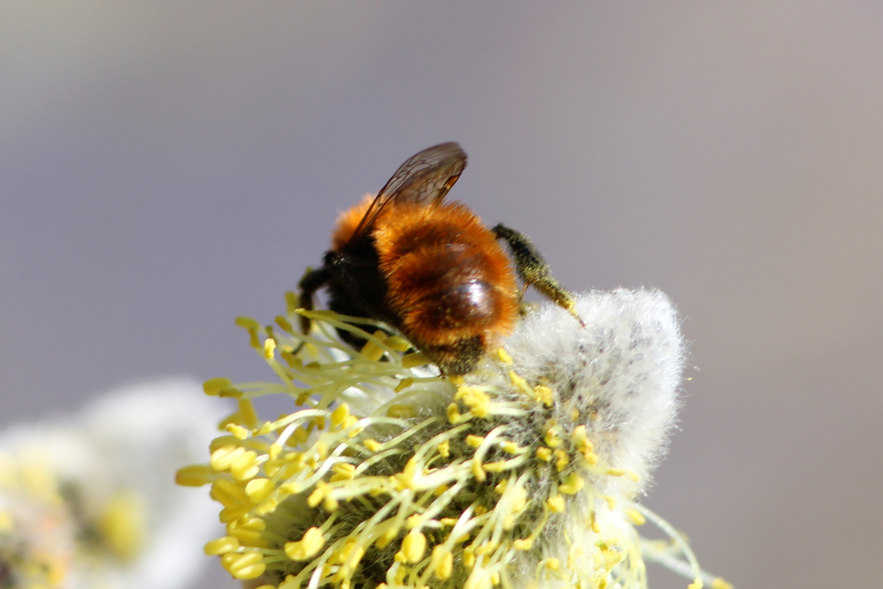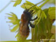 Rotpelzige Sandbiene (Andrena fulva (Müller, 1766)), Weibchen an Buchsbaum, Gleisberg, April 2018 (© Andreas Hurtig)( Bild vergrößern)