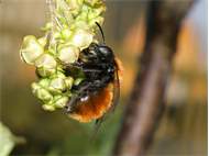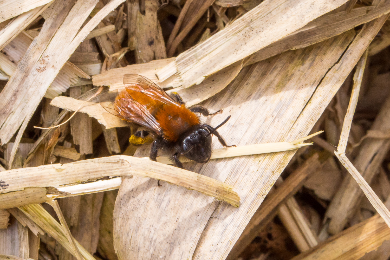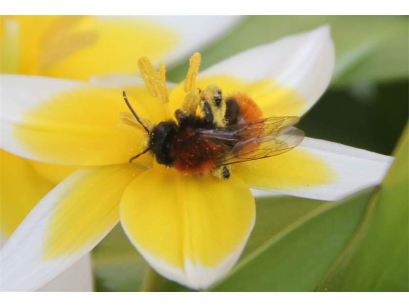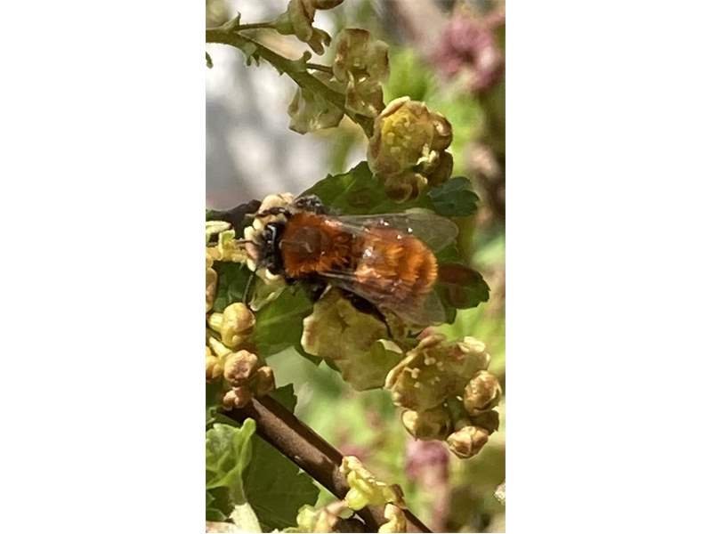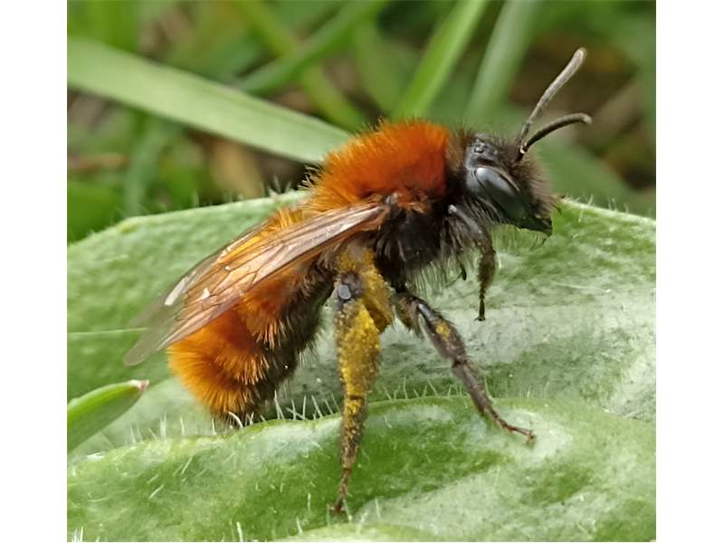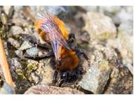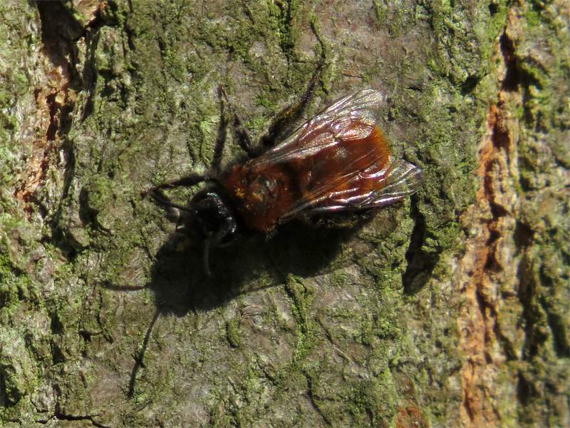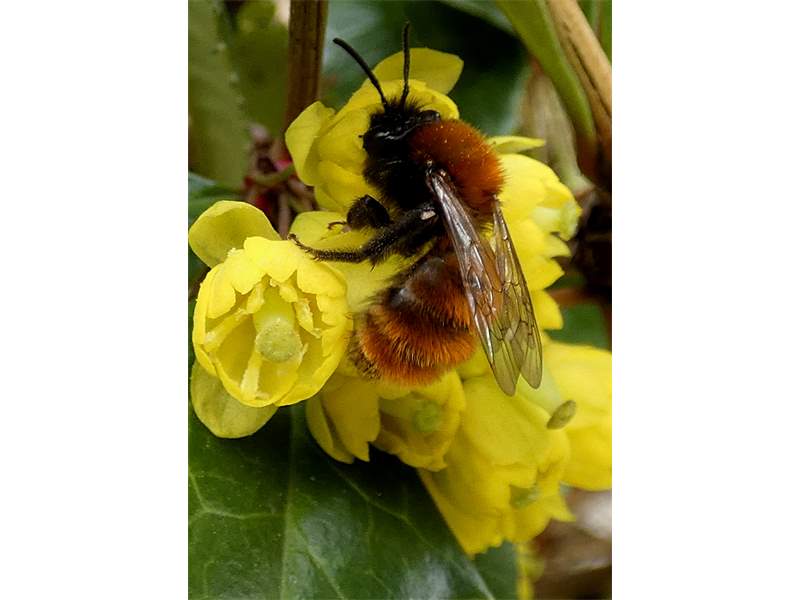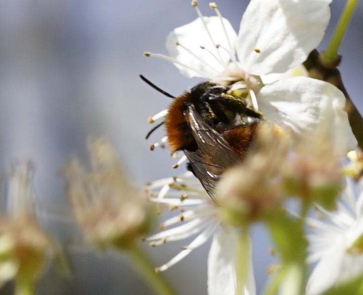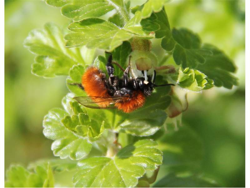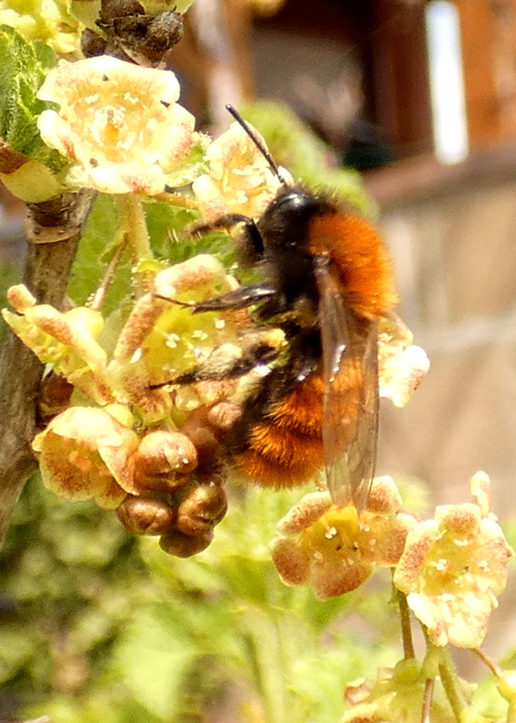 Rotpelzige Sandbiene (Andrena fulva (Müller, 1766)), Weibchen an Buchsbaum, Gleisberg, April 2018 (© Andreas Hurtig)( Bild vergrößern)
