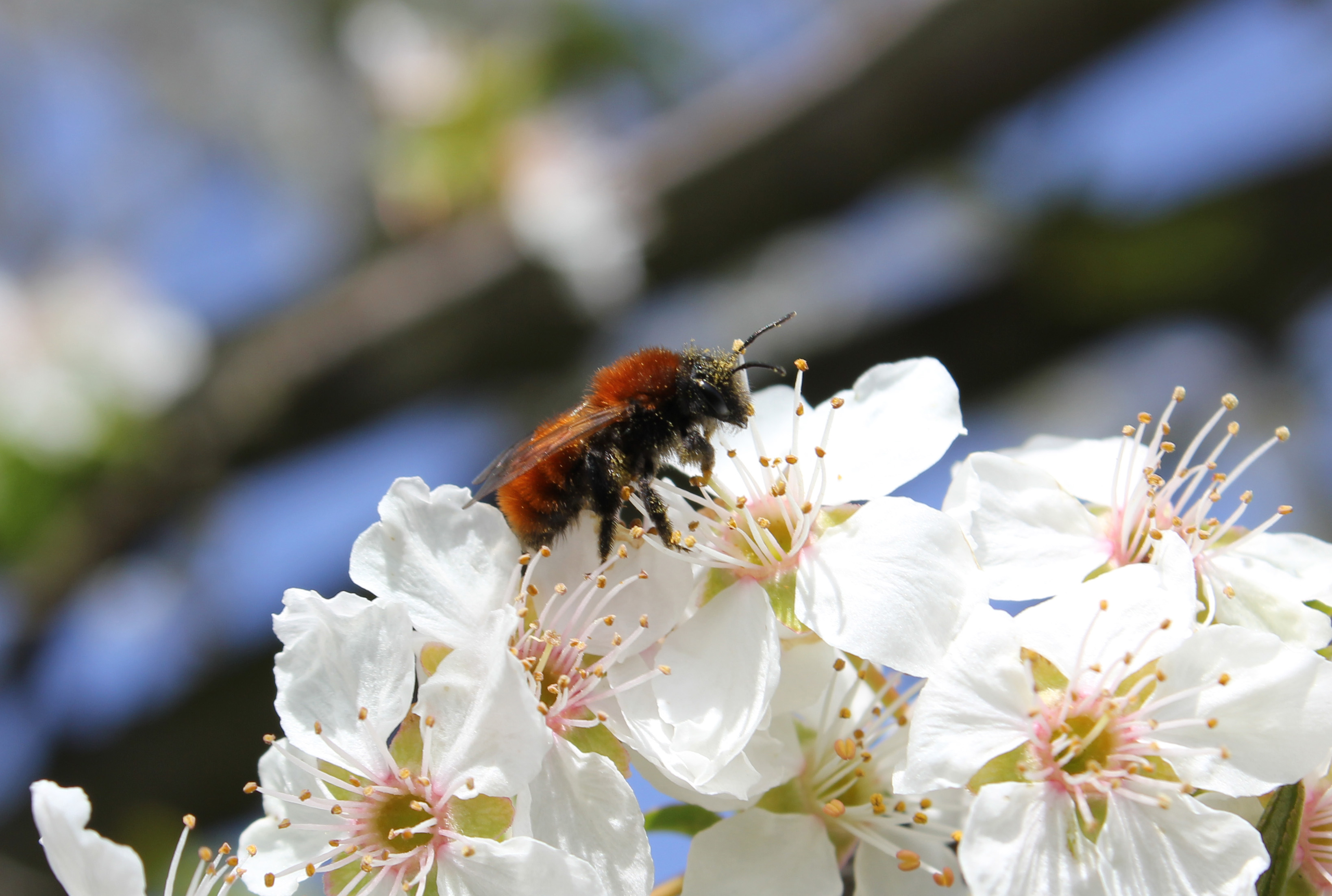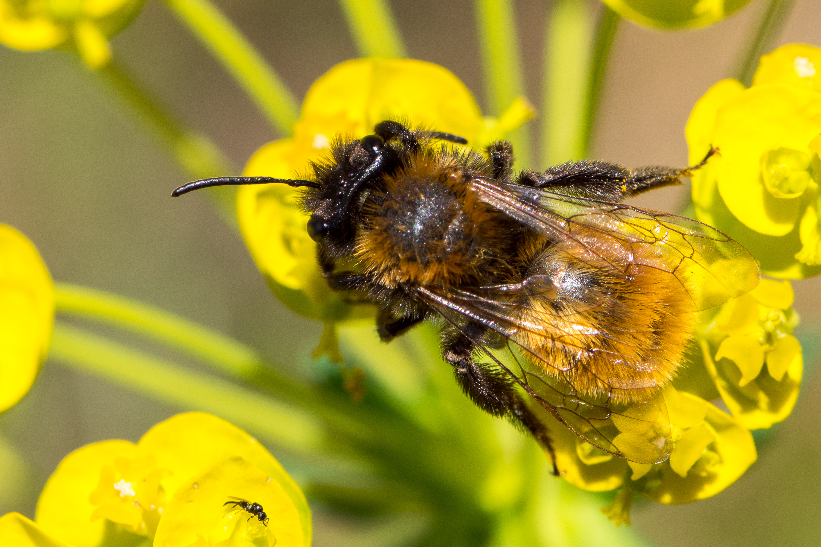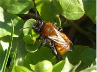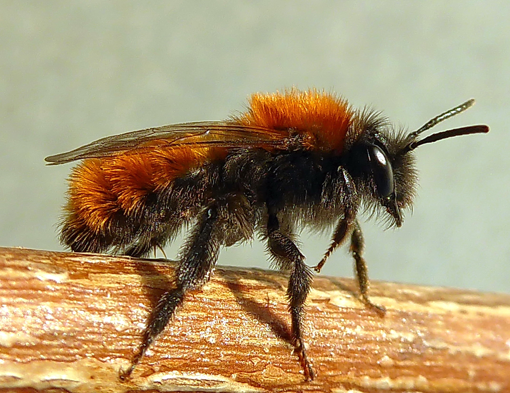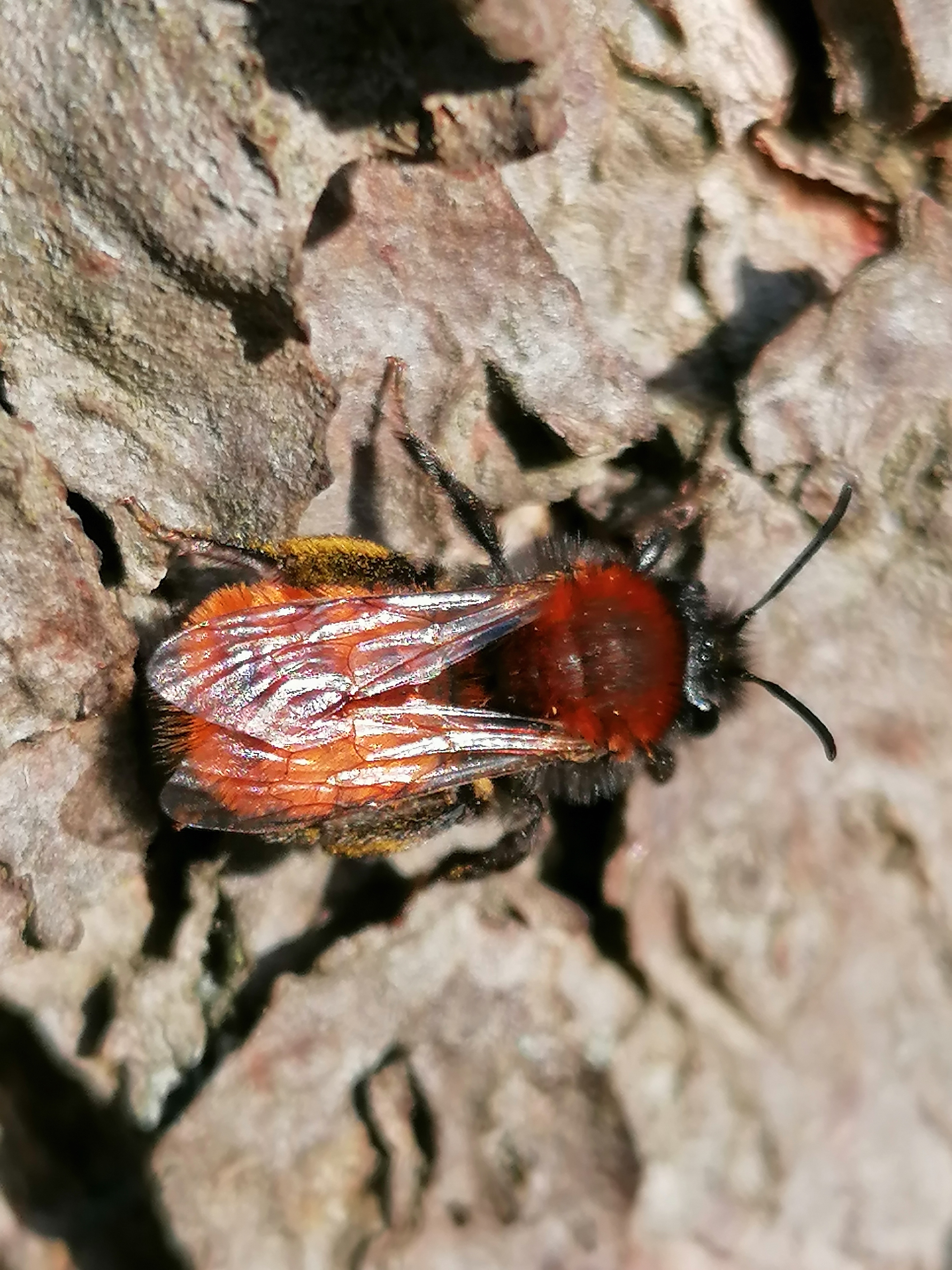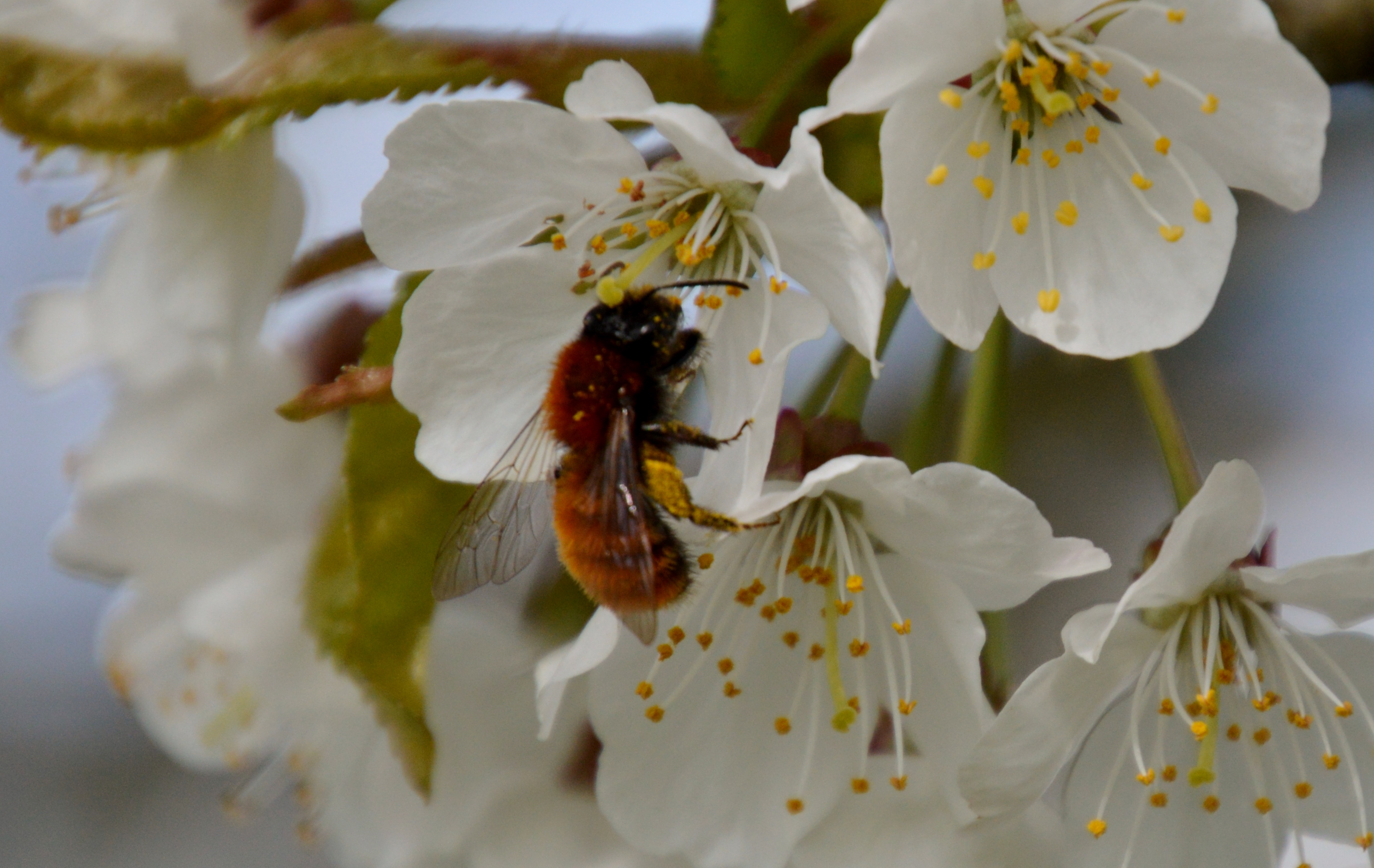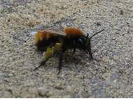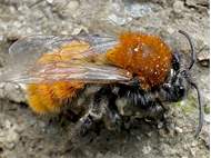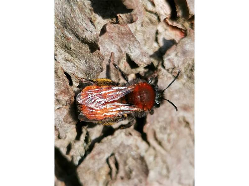 Rotpelzige Sandbiene (Andrena fulva (Müller, 1766)), Weibchen an Buchsbaum, Gleisberg, April 2018 (© Andreas Hurtig)( Bild vergrößern)