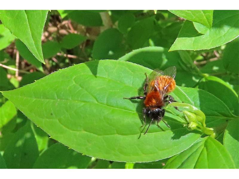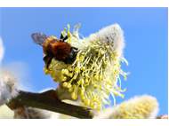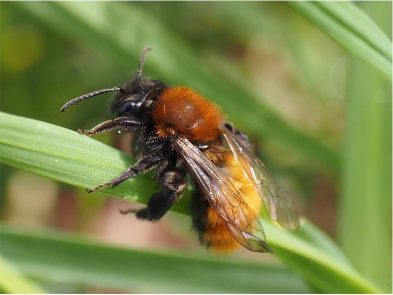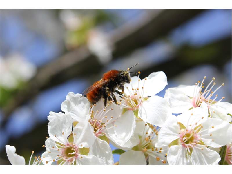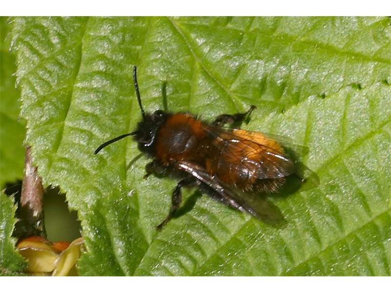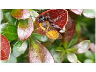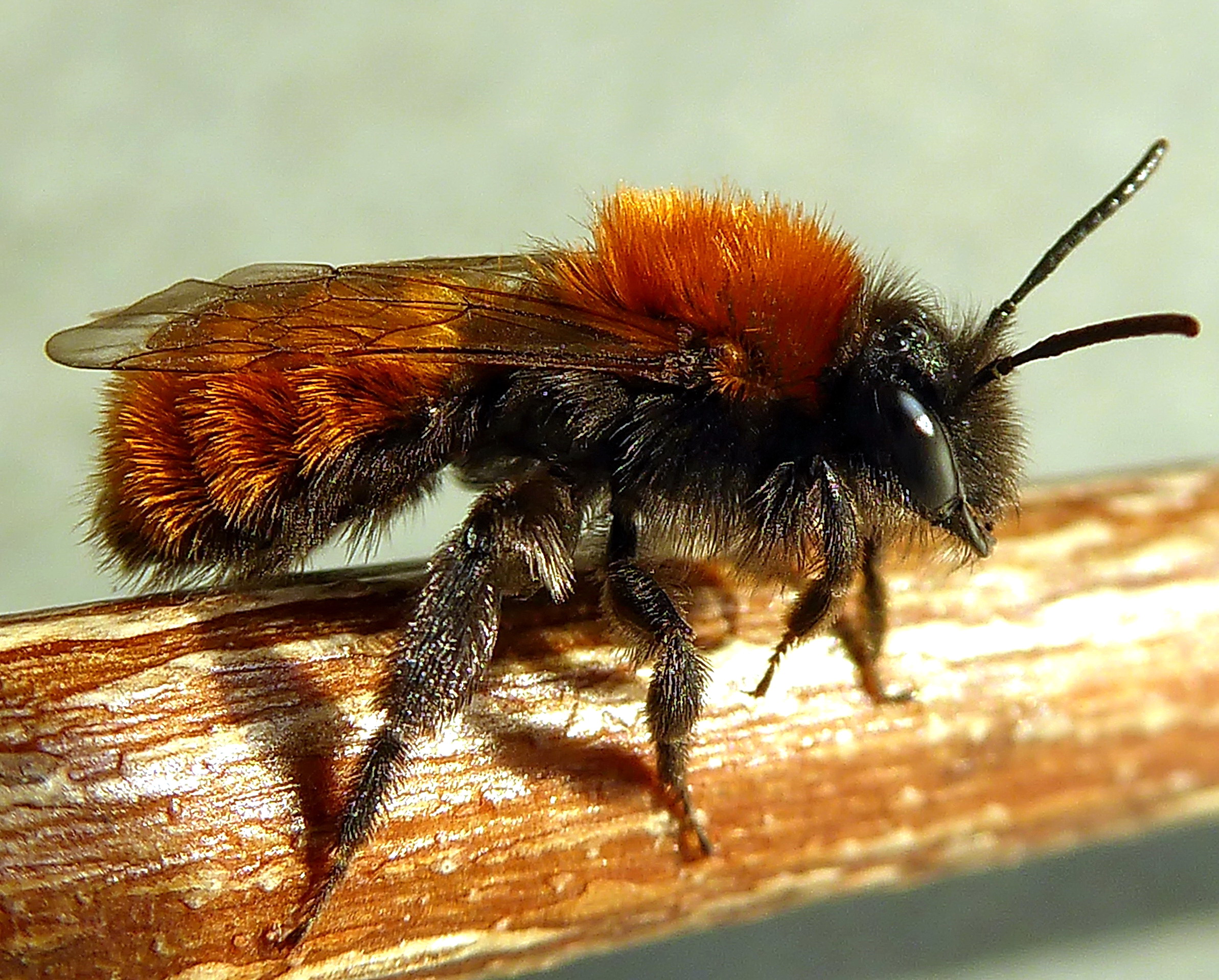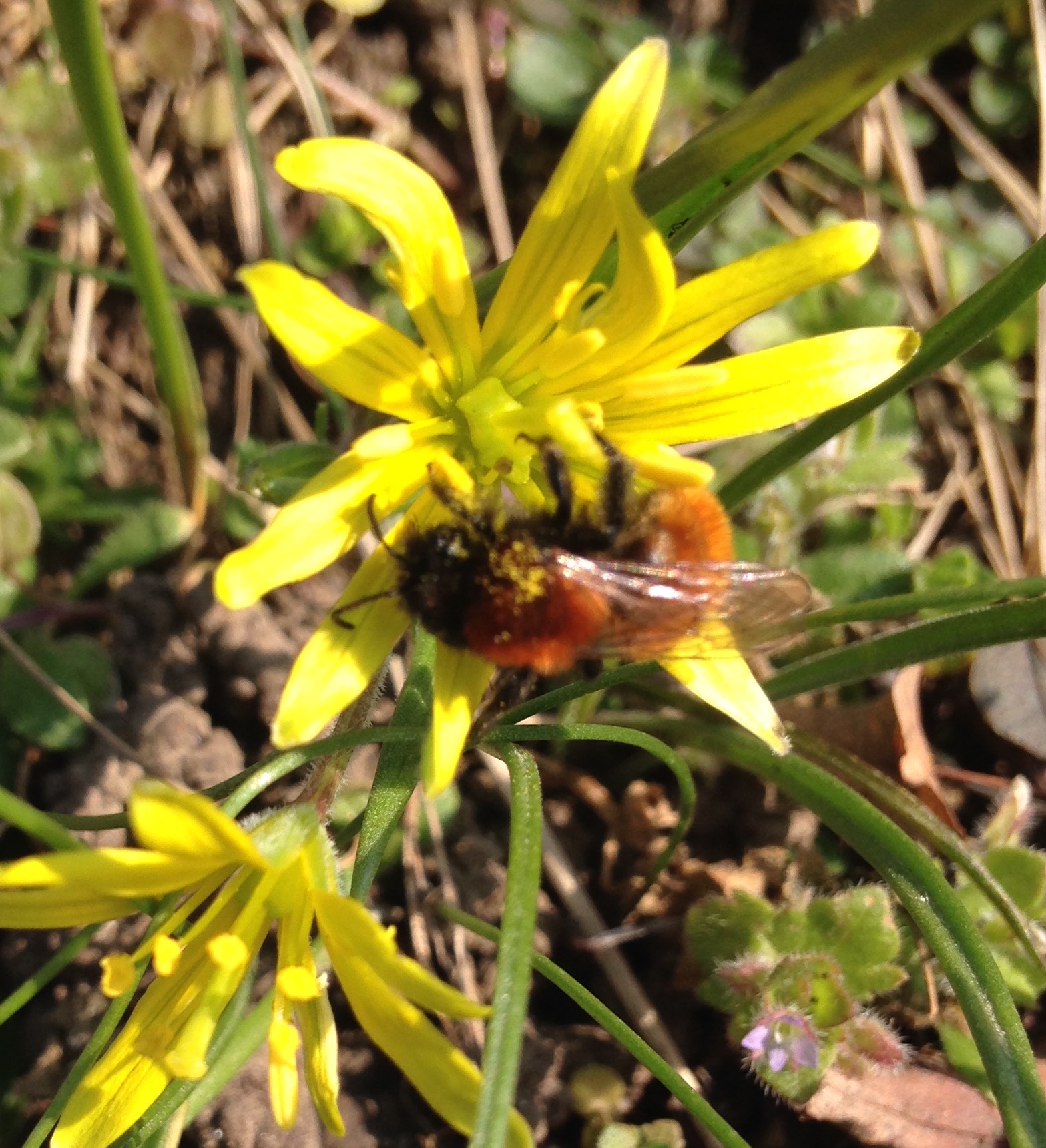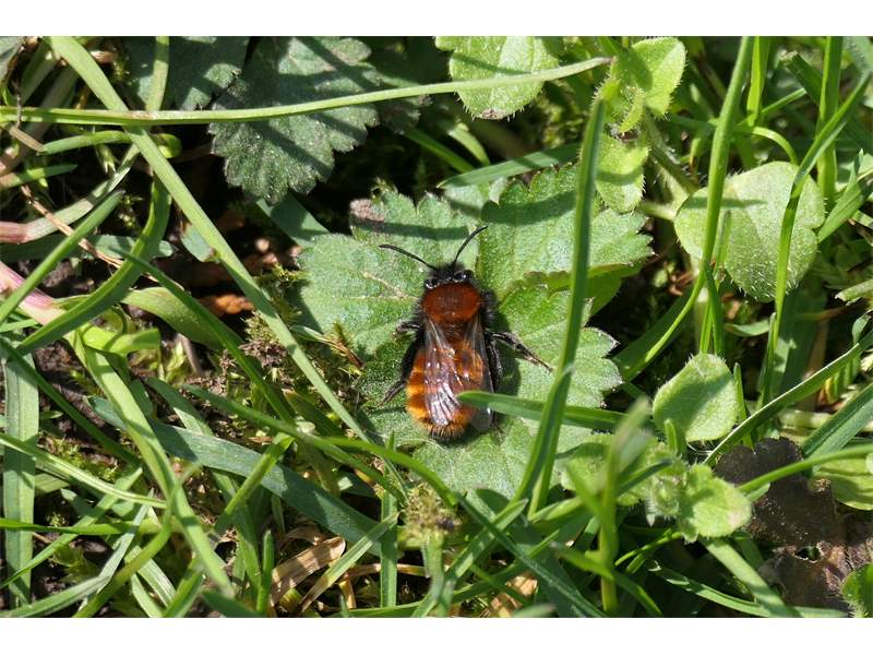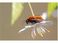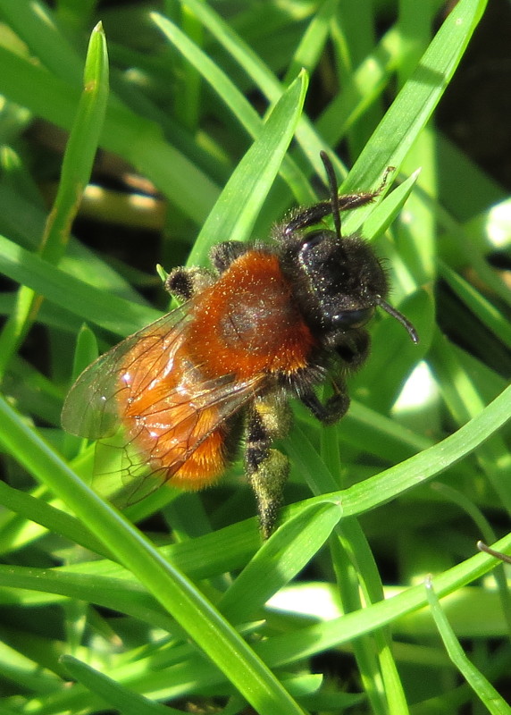 Rotpelzige Sandbiene (Andrena fulva (Müller, 1766)), Weibchen an Buchsbaum, Gleisberg, April 2018 (© Andreas Hurtig)( Bild vergrößern)