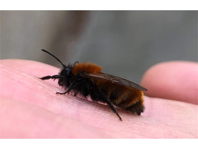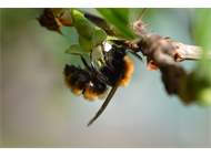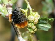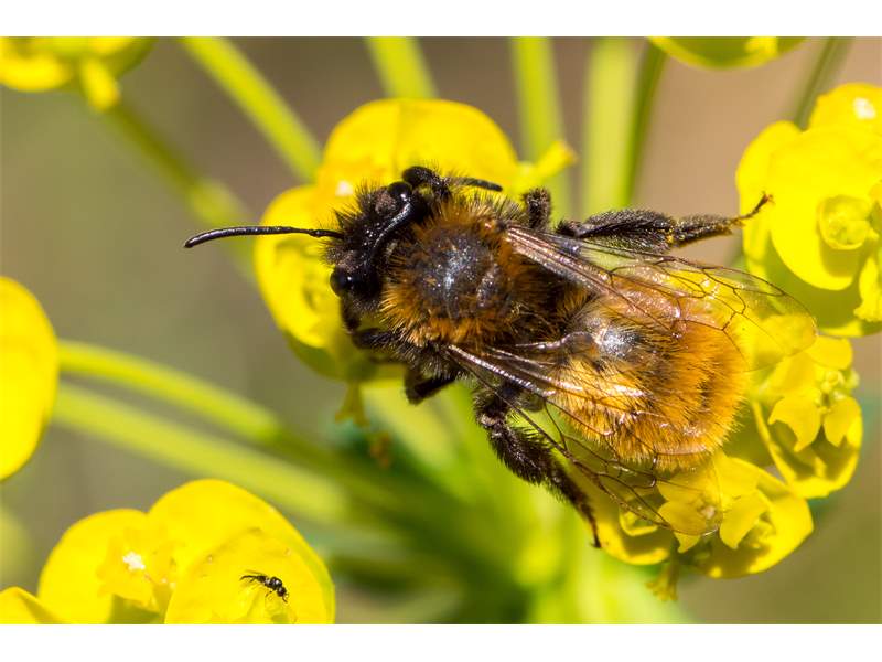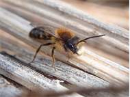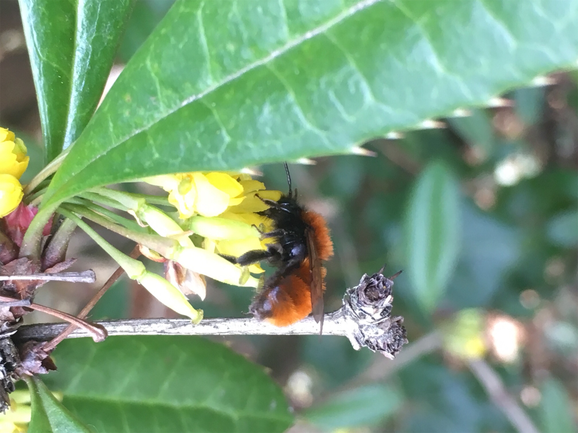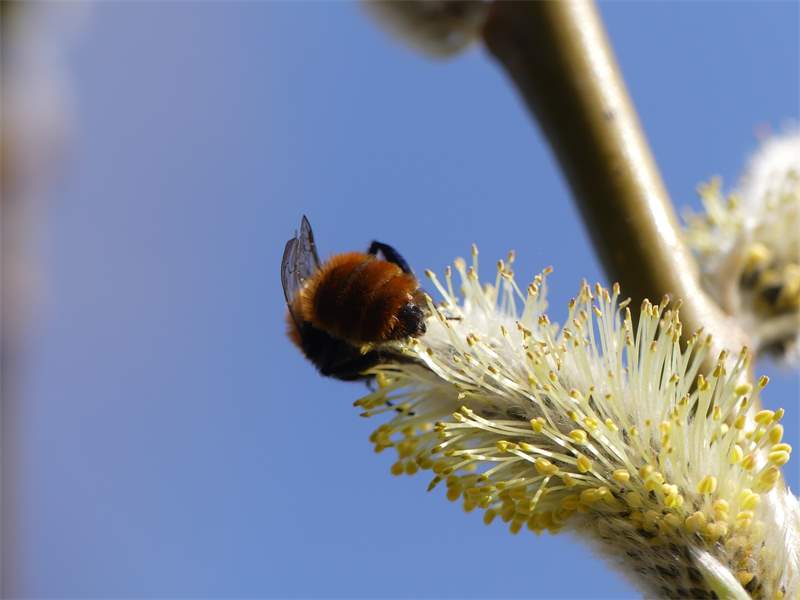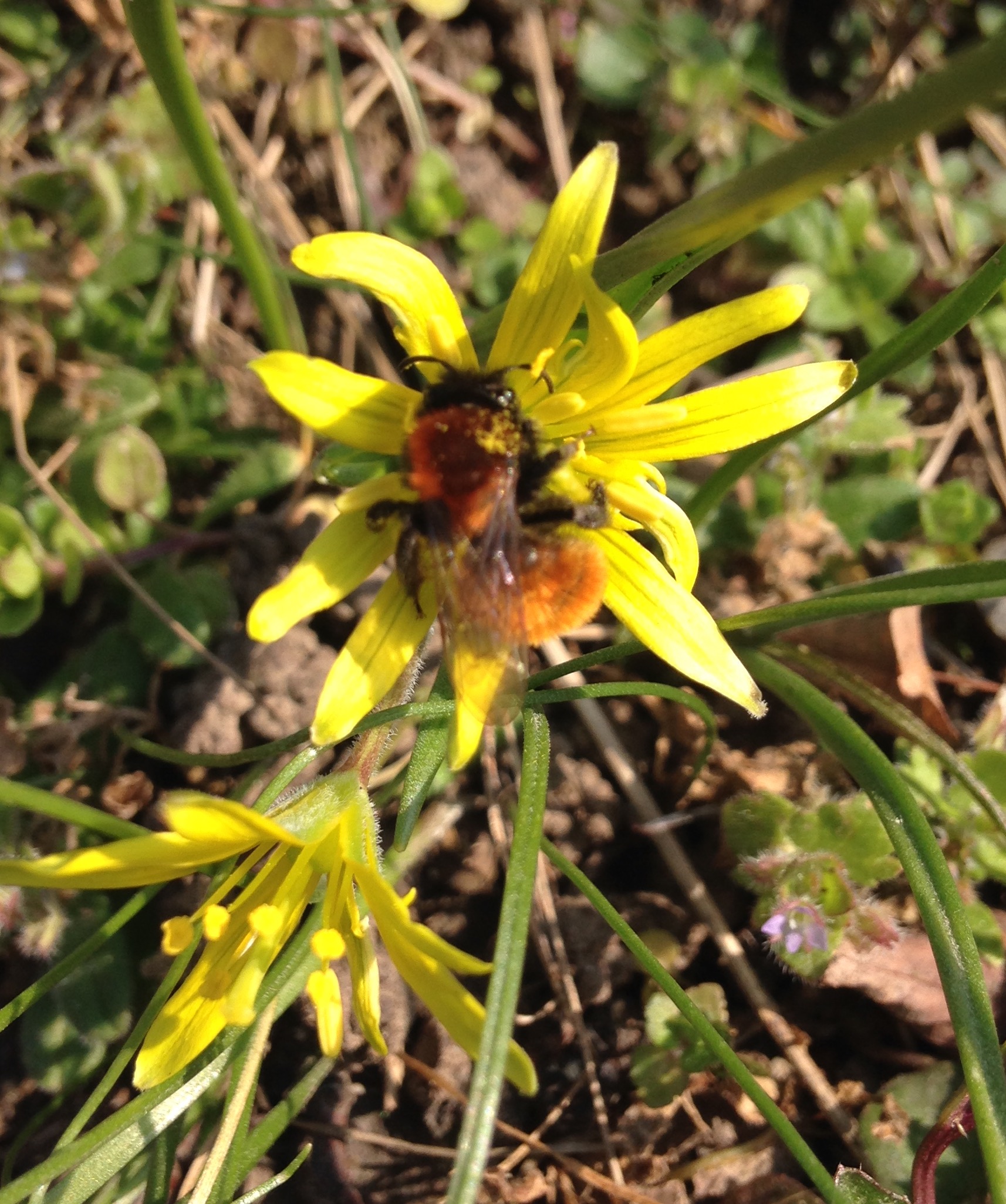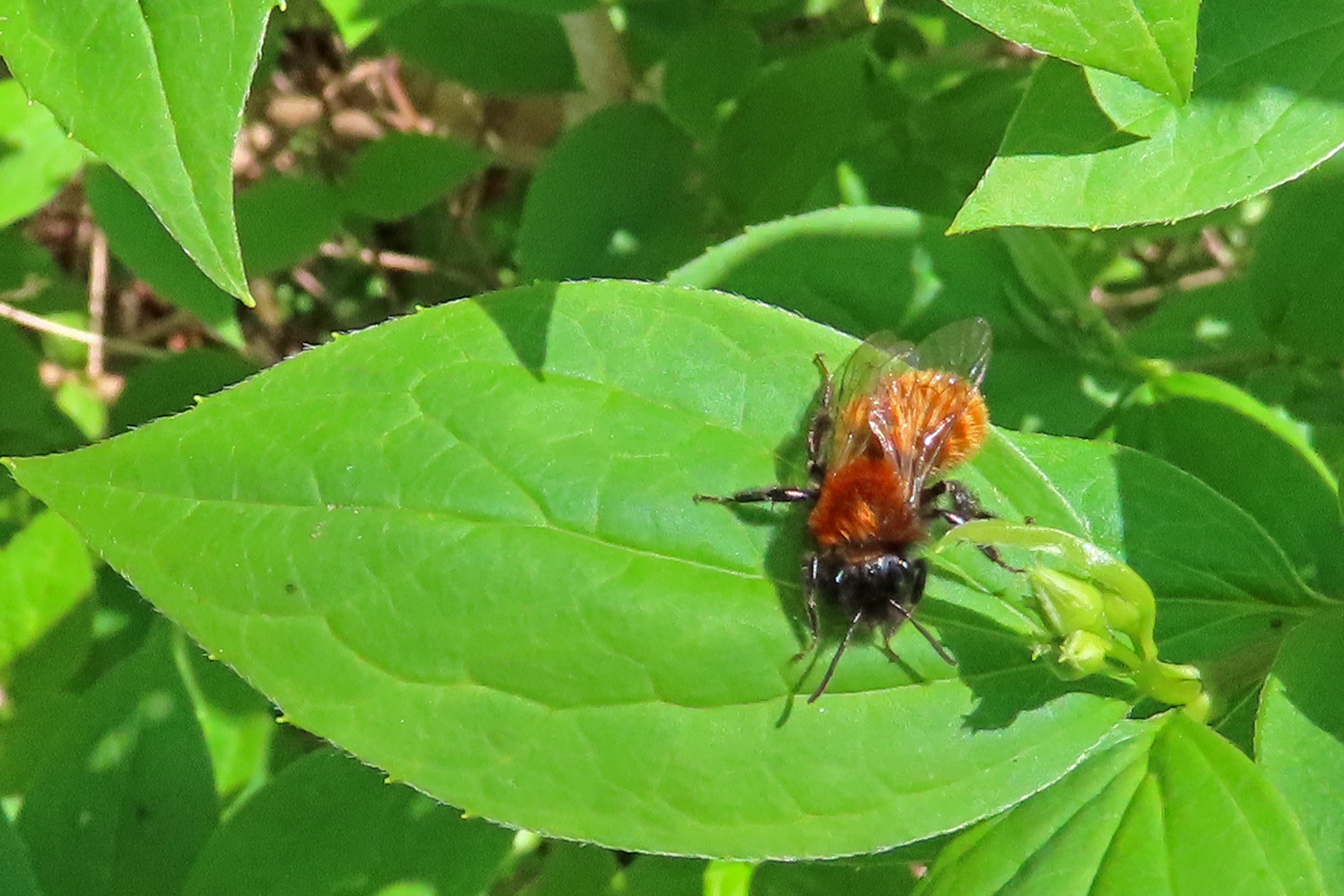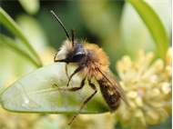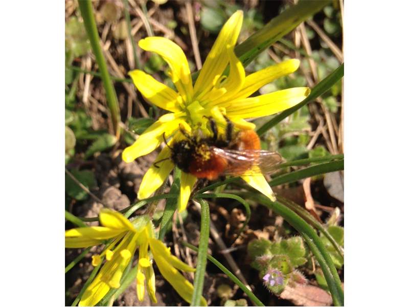 Rotpelzige Sandbiene (Andrena fulva (Müller, 1766)), Weibchen an Buchsbaum, Gleisberg, April 2018 (© Andreas Hurtig)( Bild vergrößern)