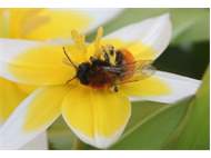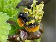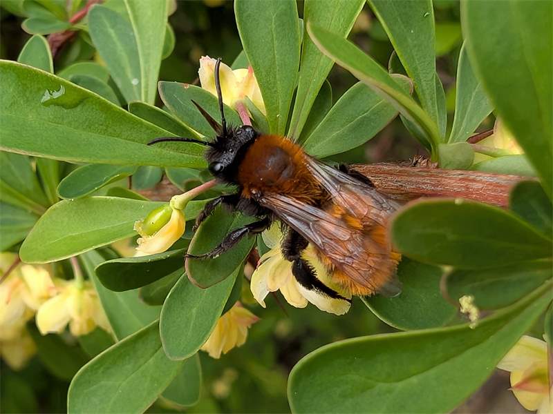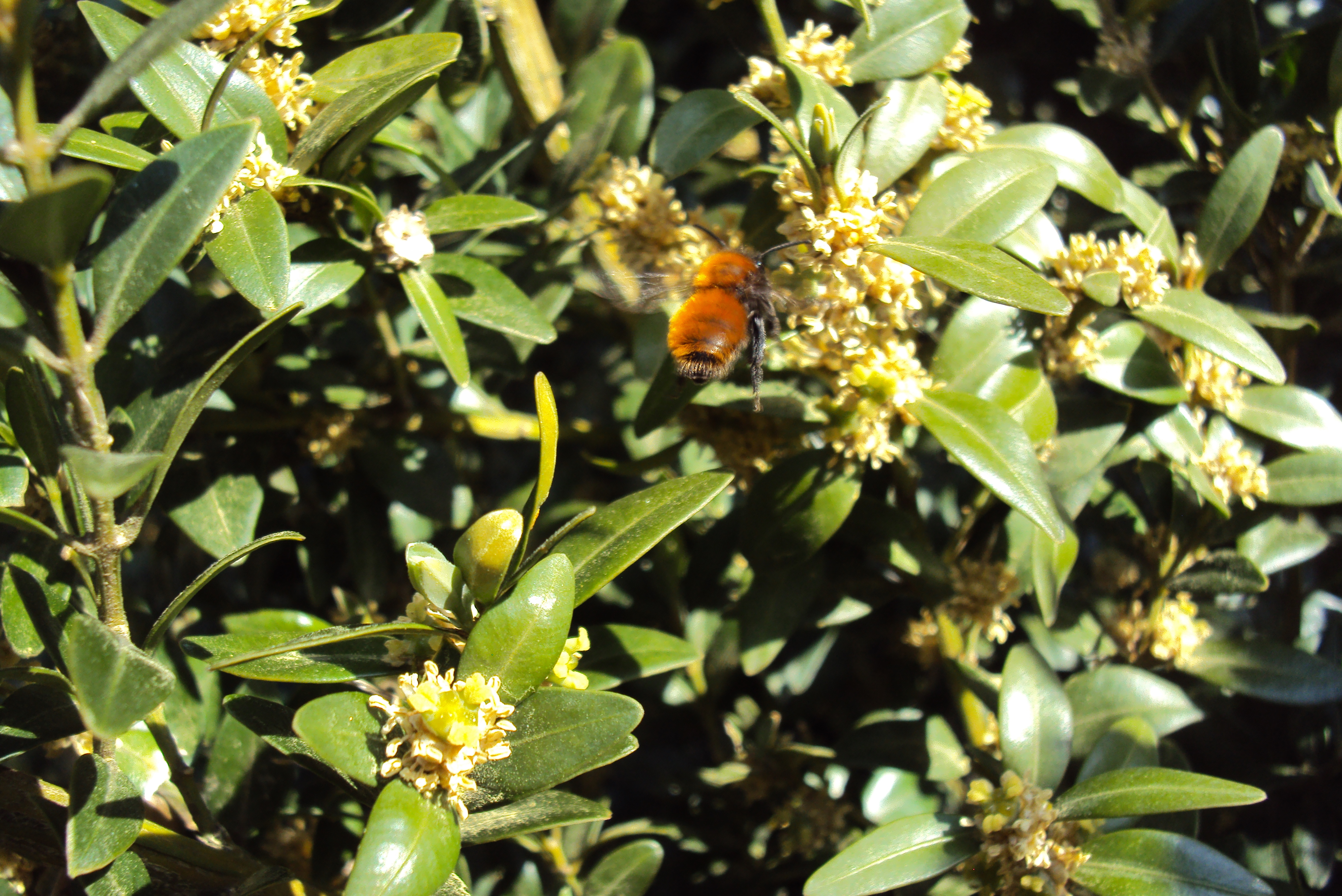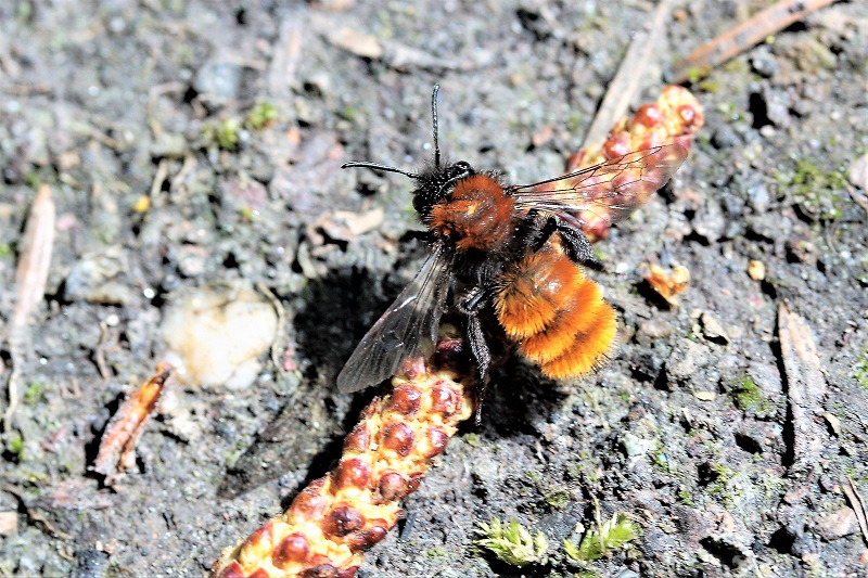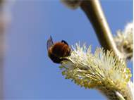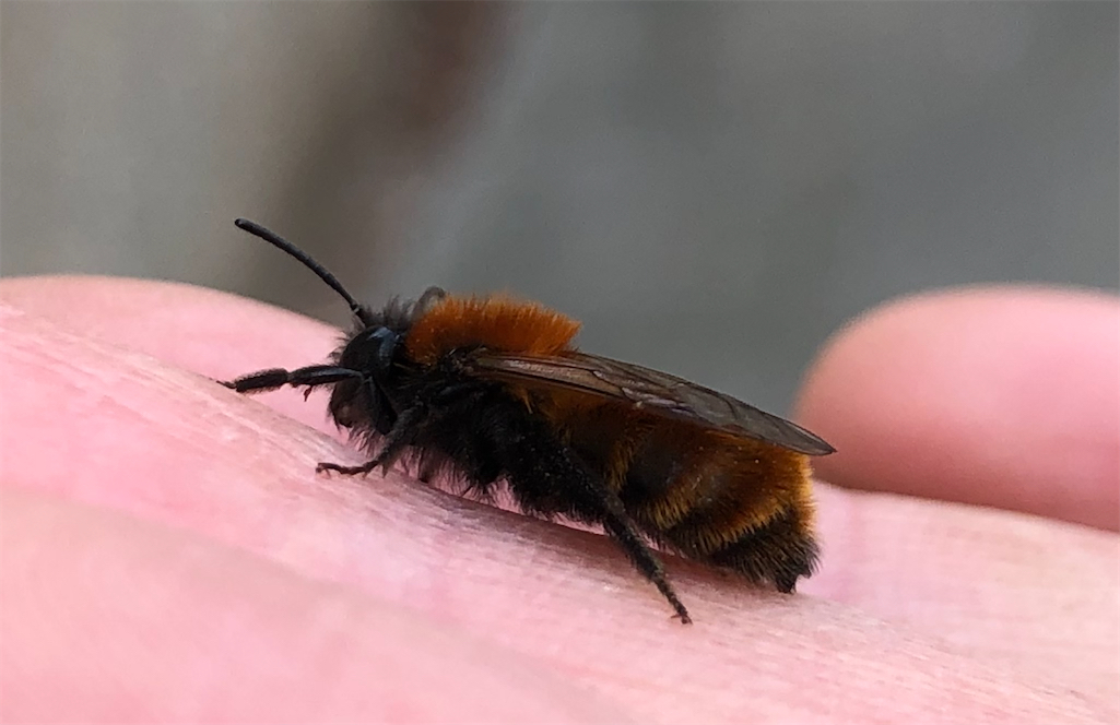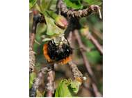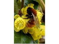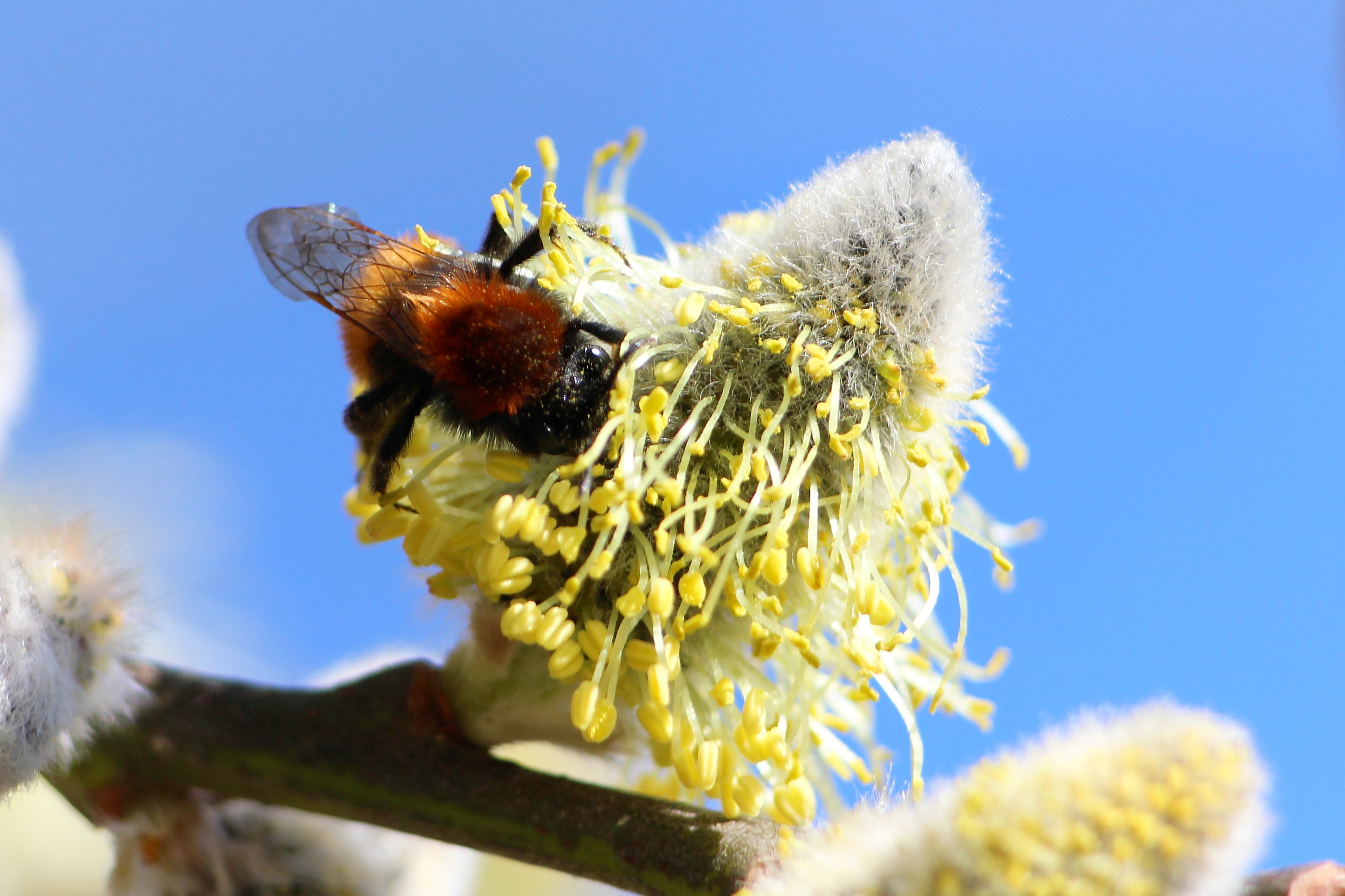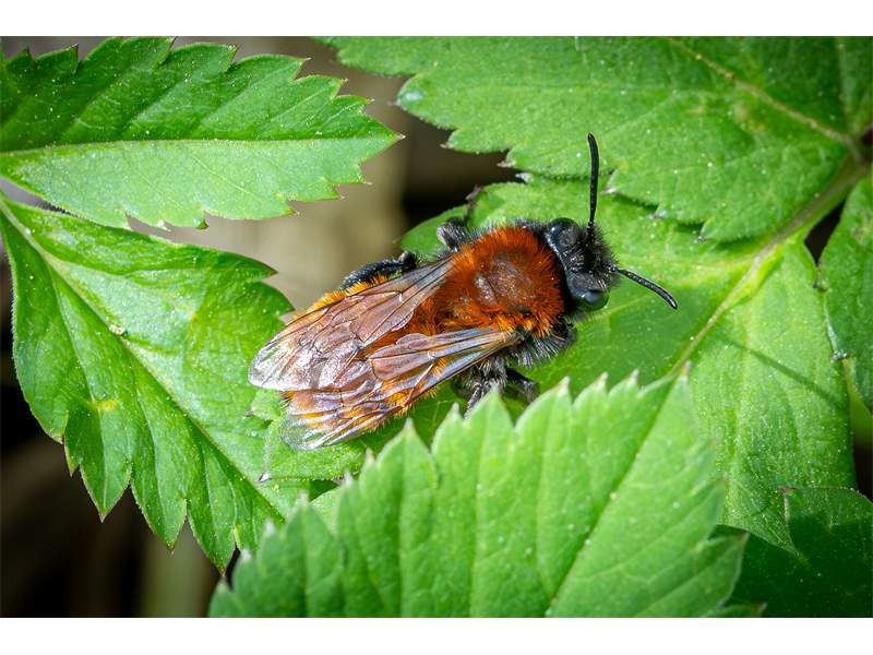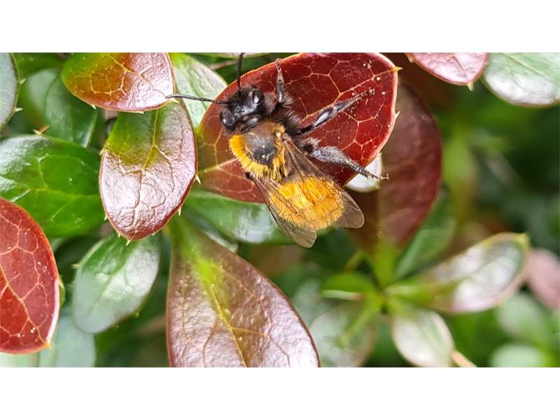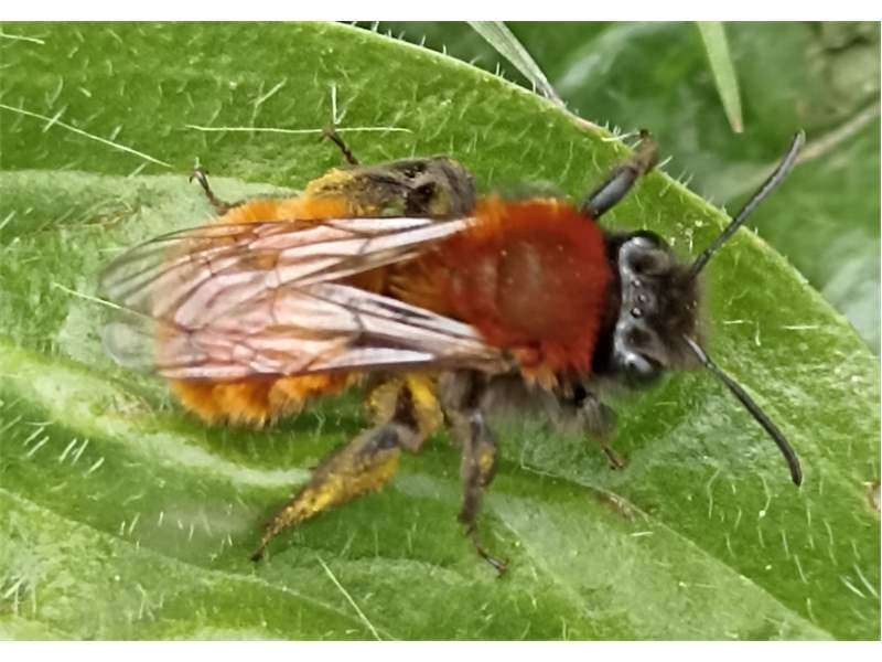 Rotpelzige Sandbiene (Andrena fulva (Müller, 1766)), Weibchen an Buchsbaum, Gleisberg, April 2018 (© Andreas Hurtig)( Bild vergrößern)