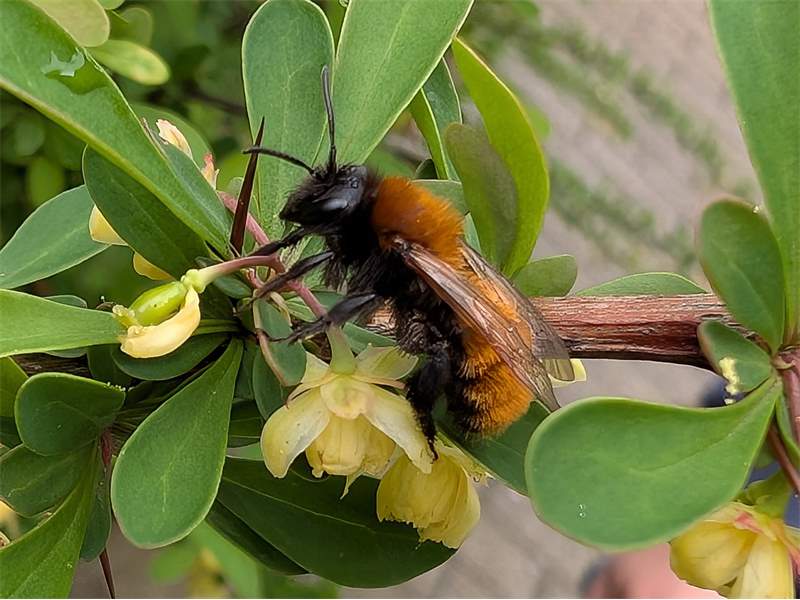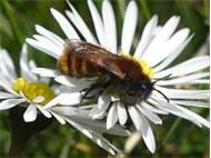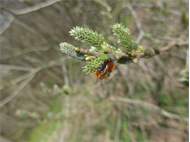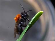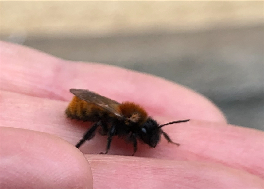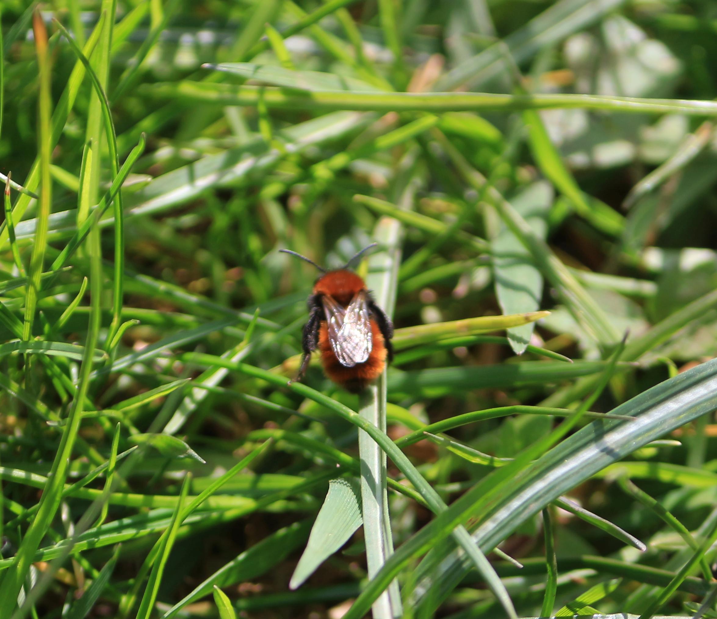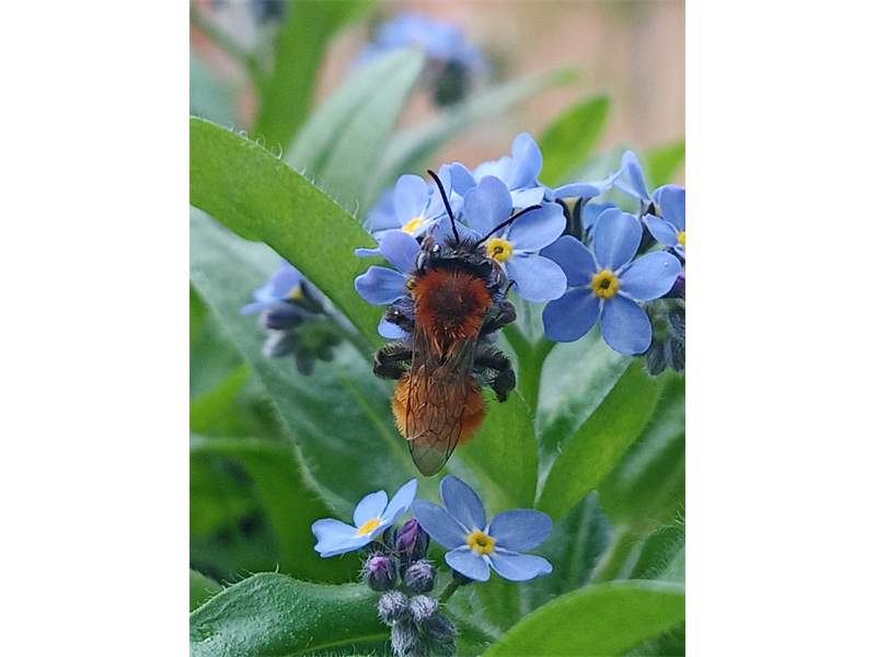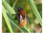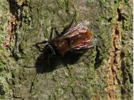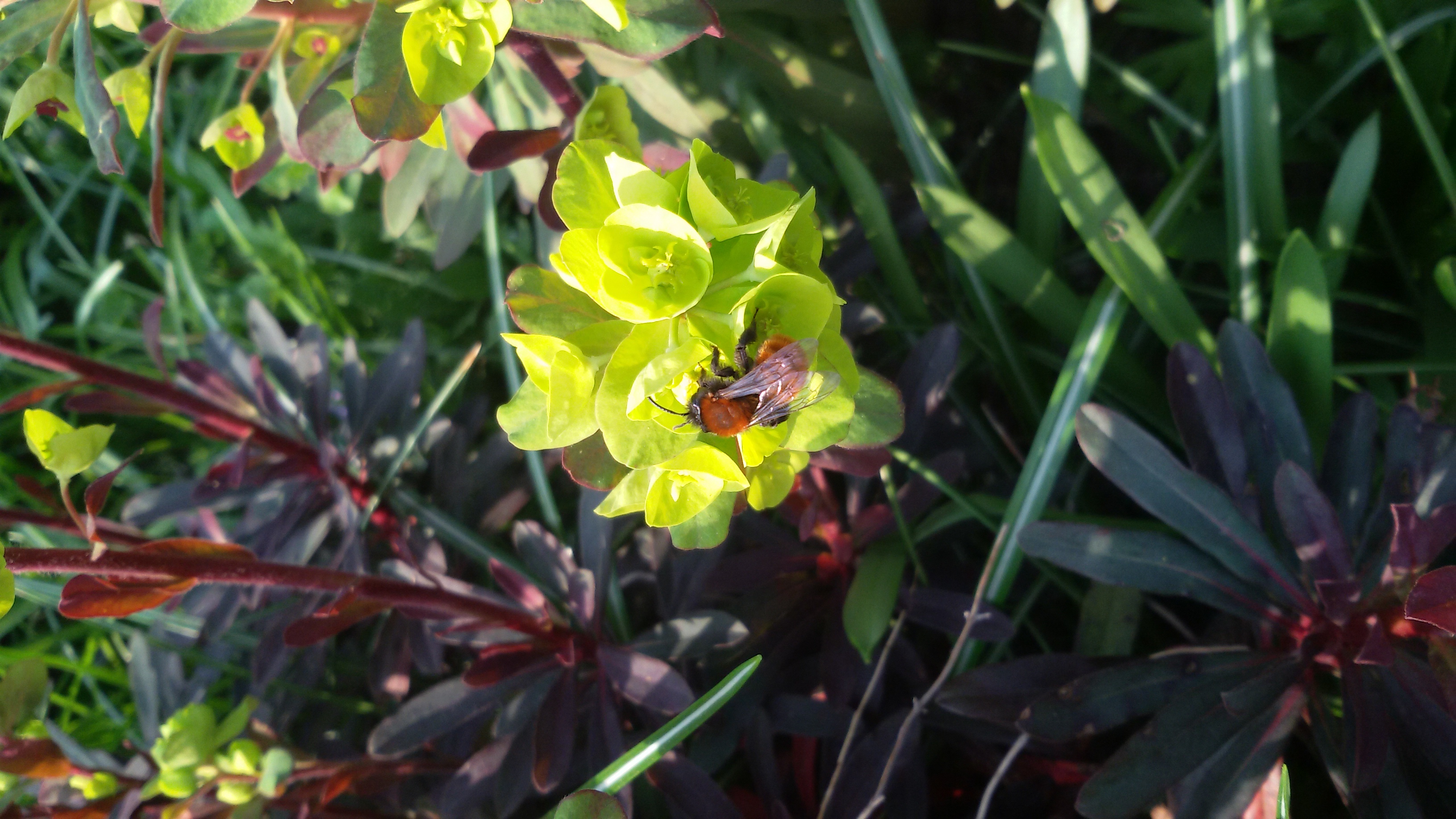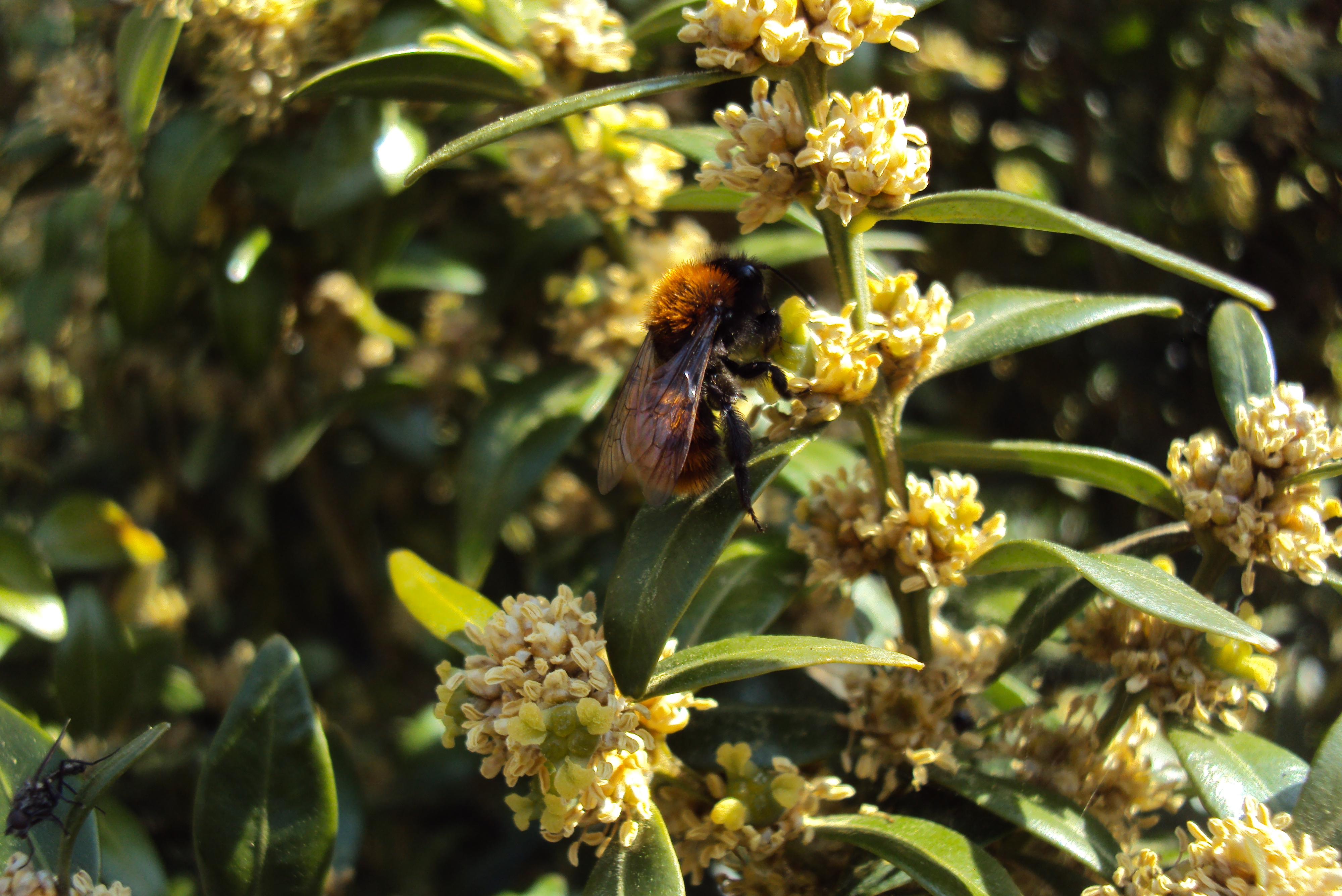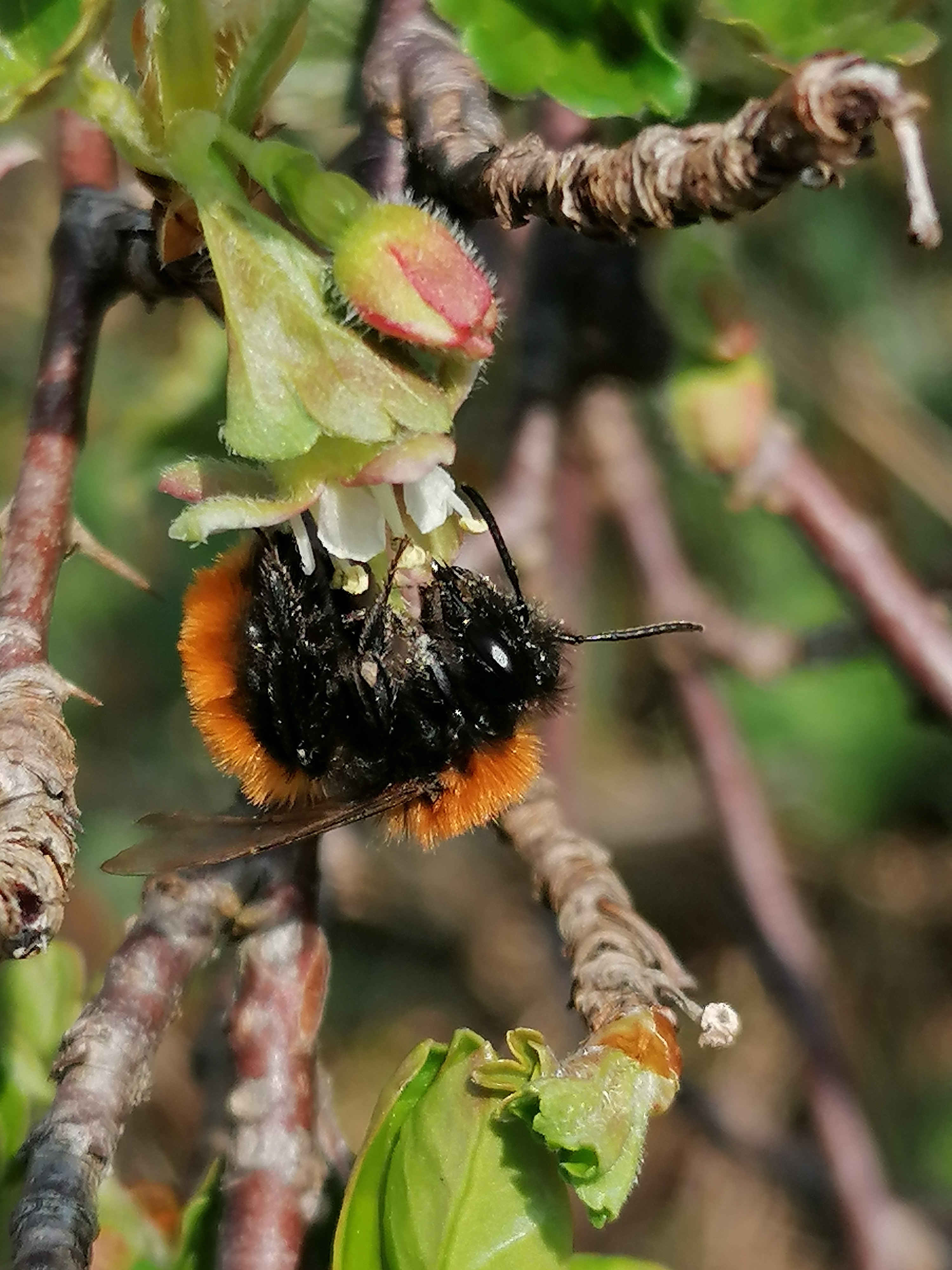 Rotpelzige Sandbiene (Andrena fulva (Müller, 1766)), Weibchen an Buchsbaum, Gleisberg, April 2018 (© Andreas Hurtig)( Bild vergrößern)