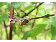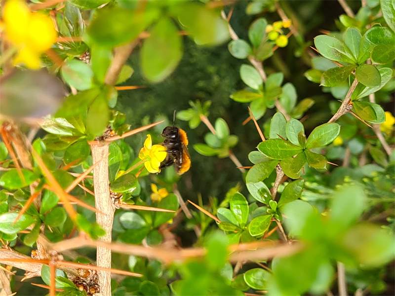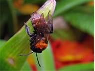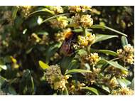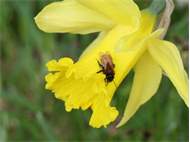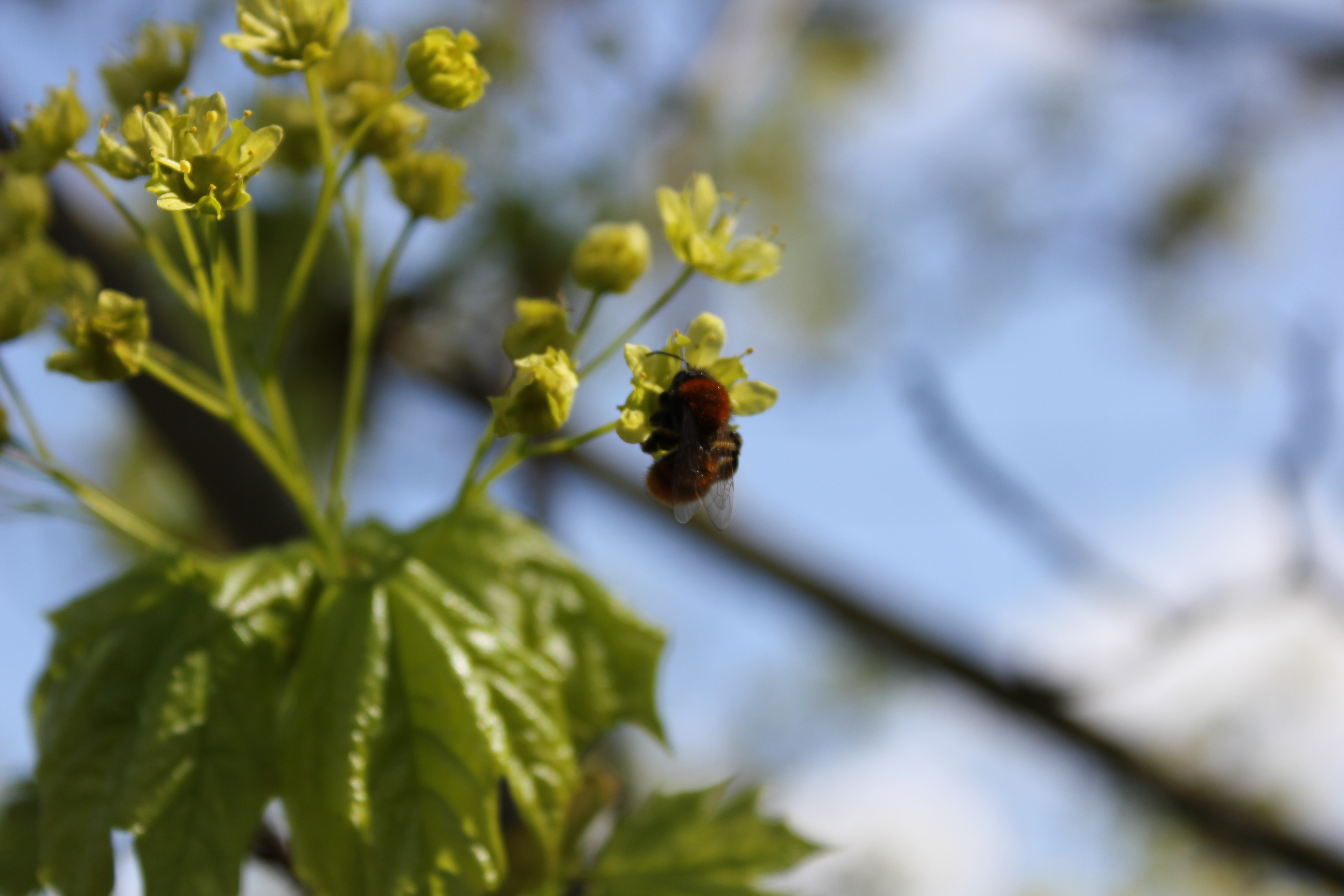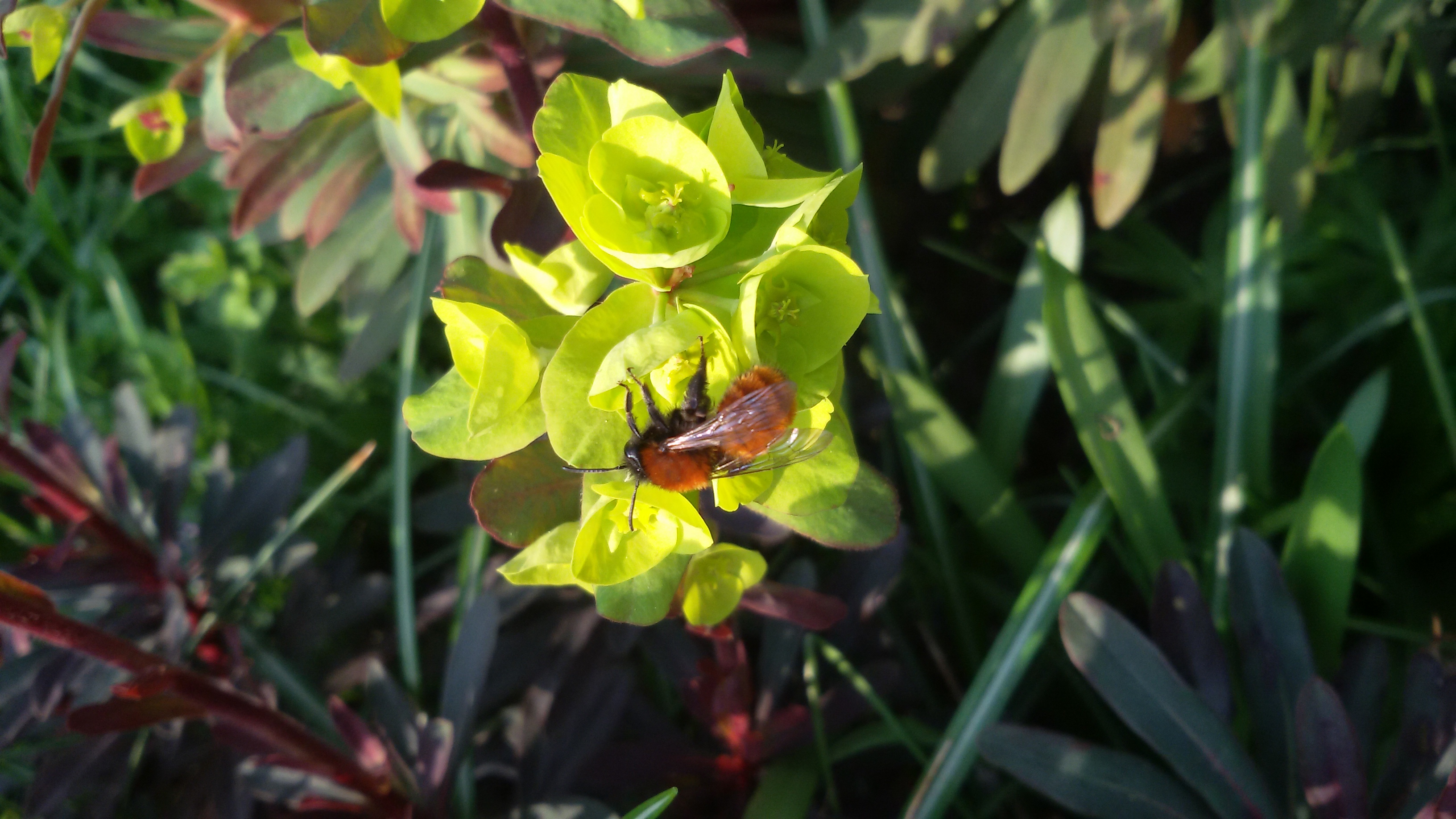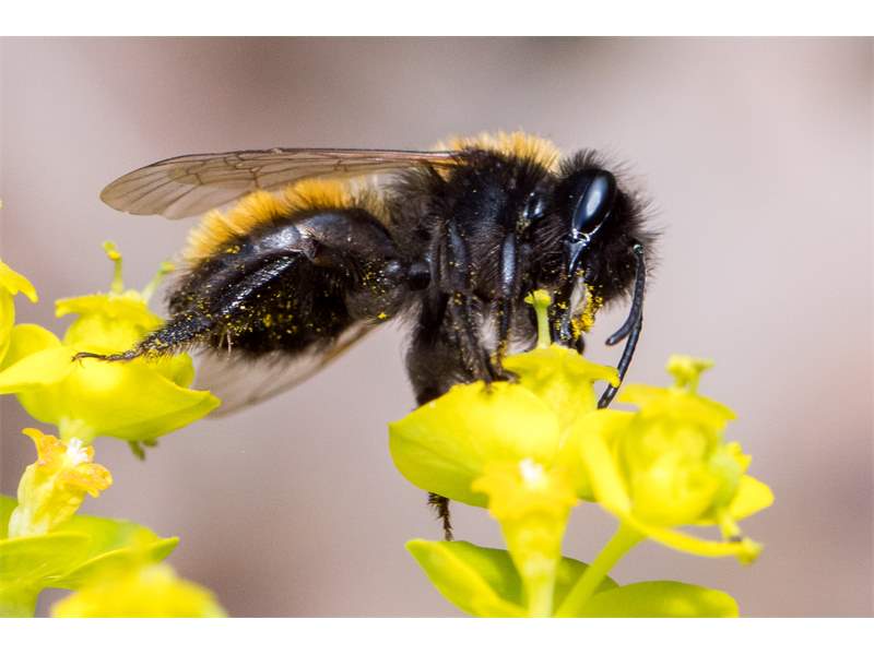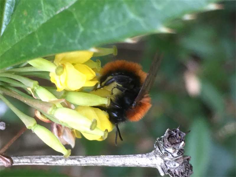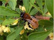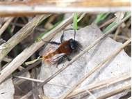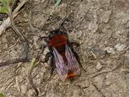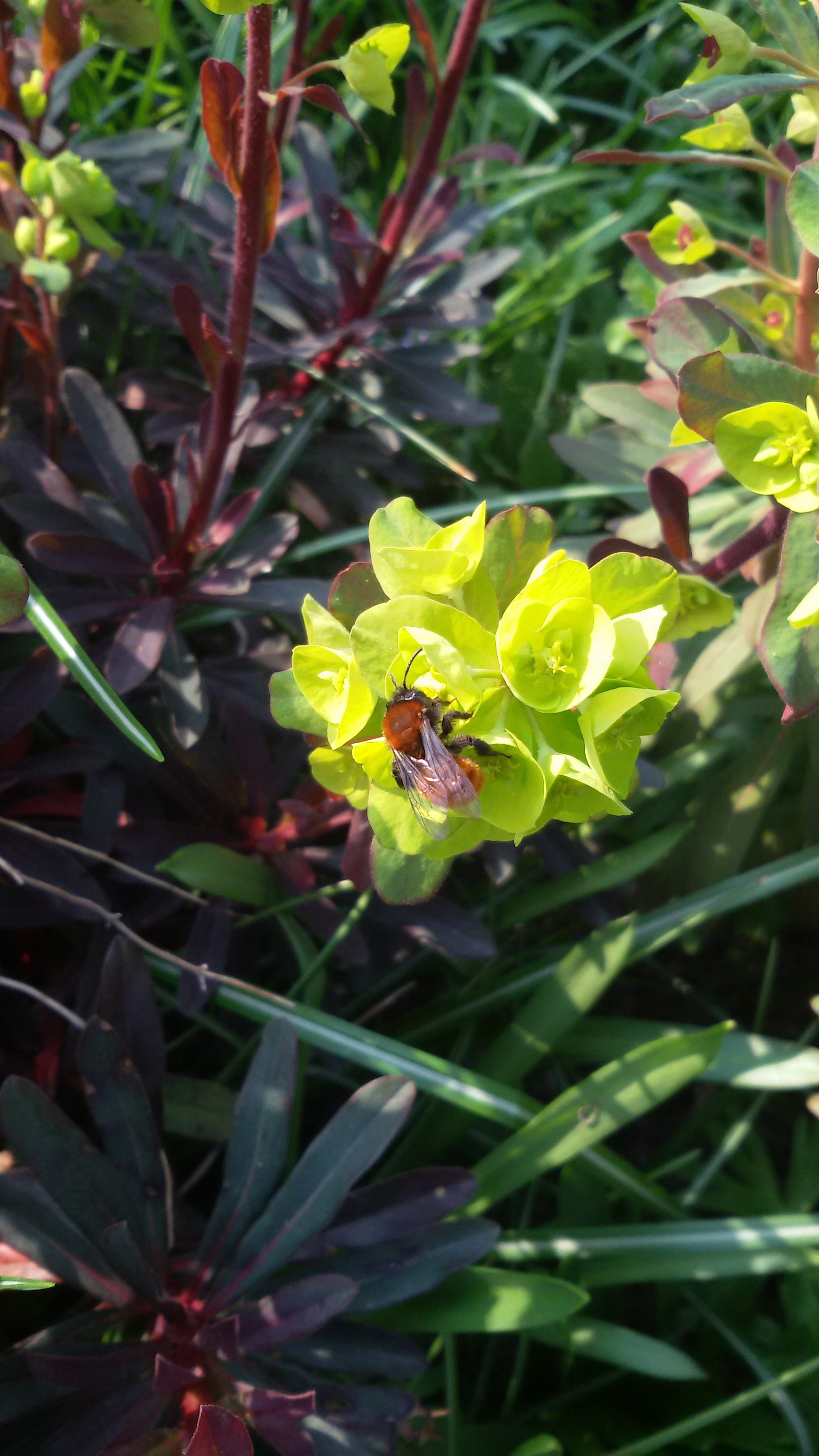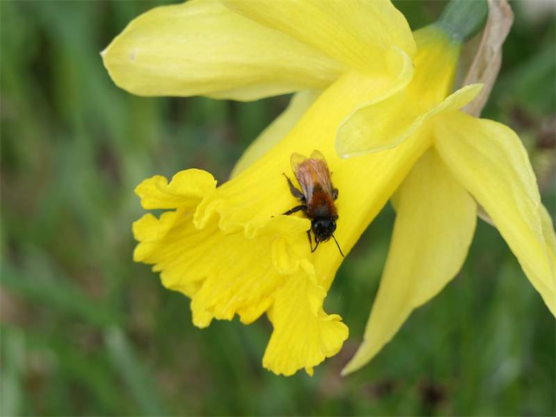 Rotpelzige Sandbiene (Andrena fulva (Müller, 1766)), Weibchen an Buchsbaum, Gleisberg, April 2018 (© Andreas Hurtig)( Bild vergrößern)