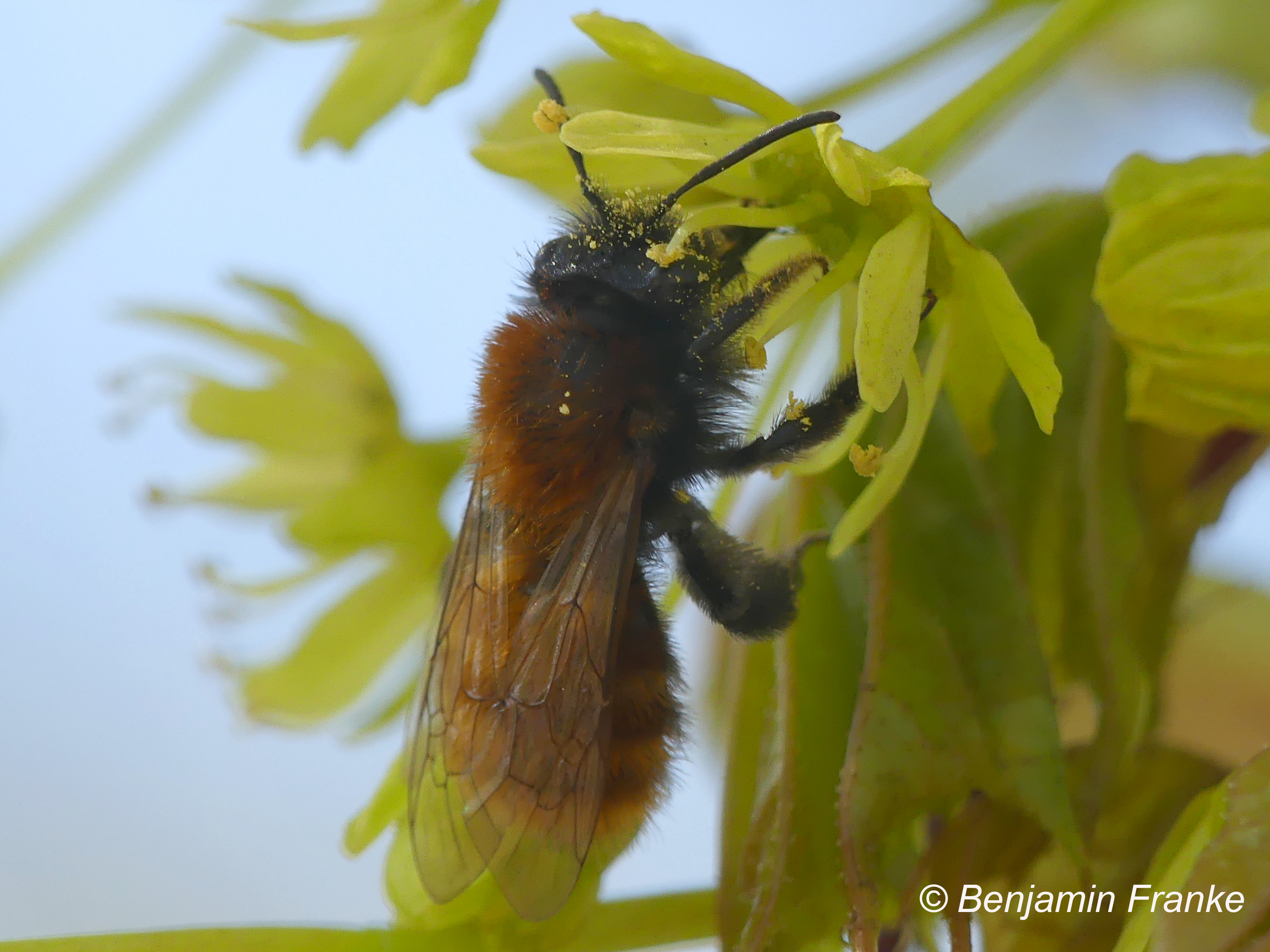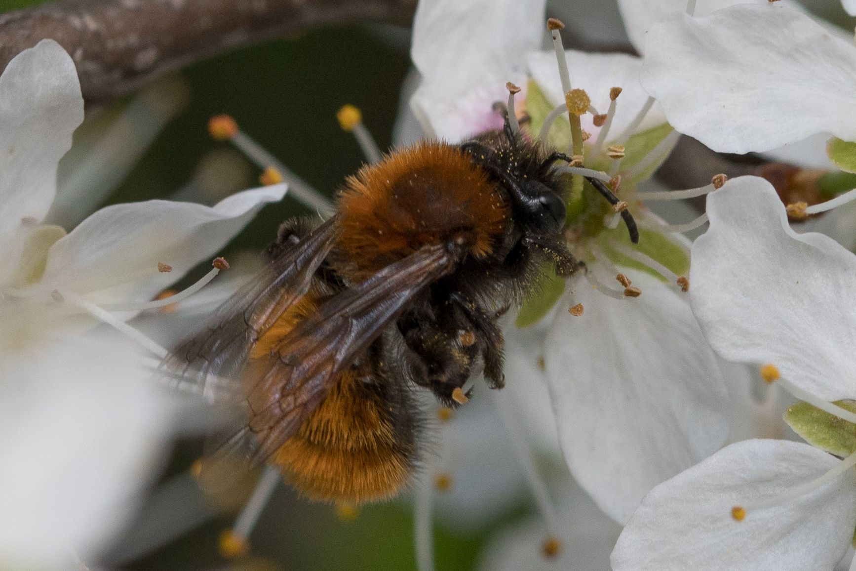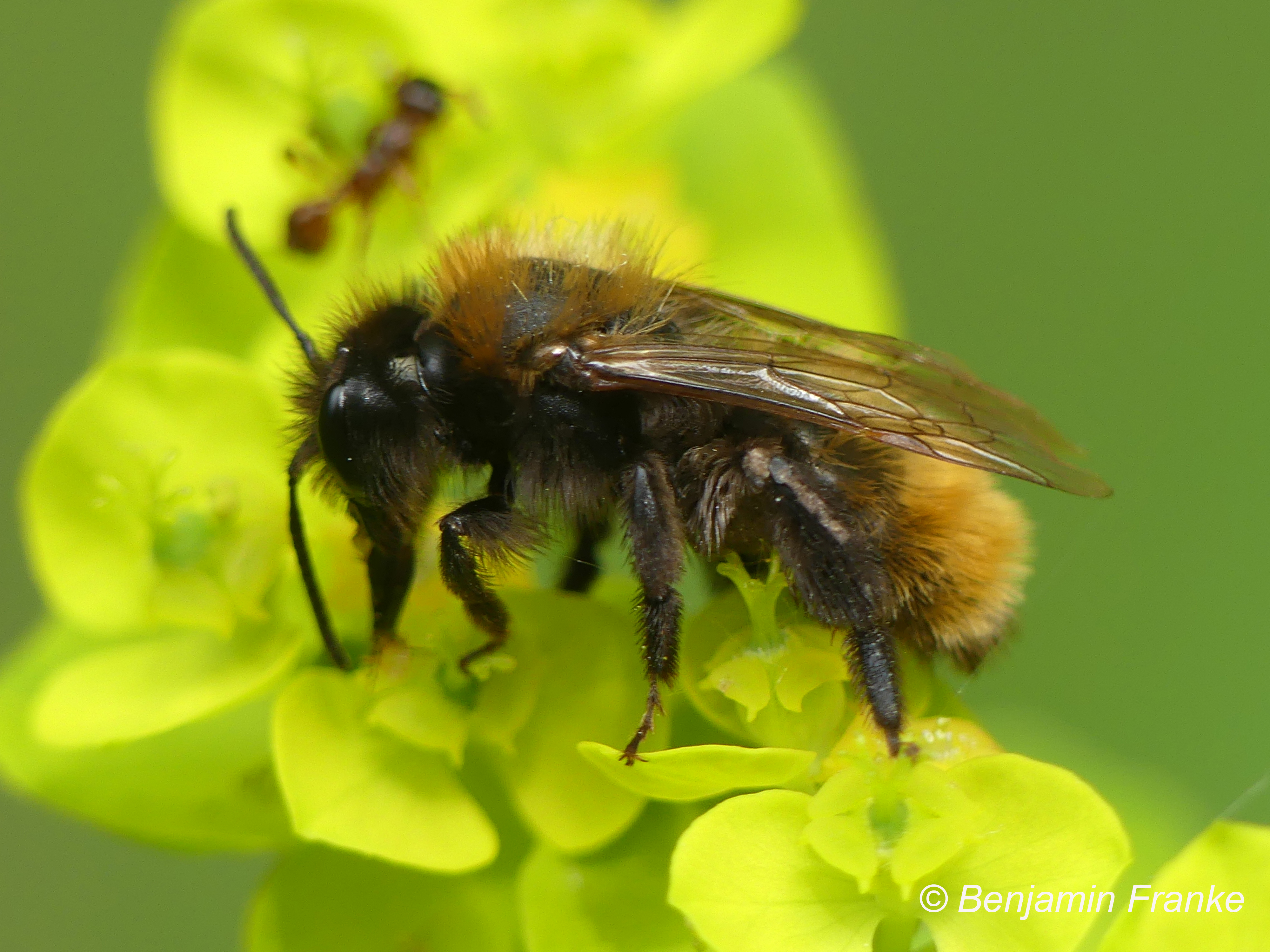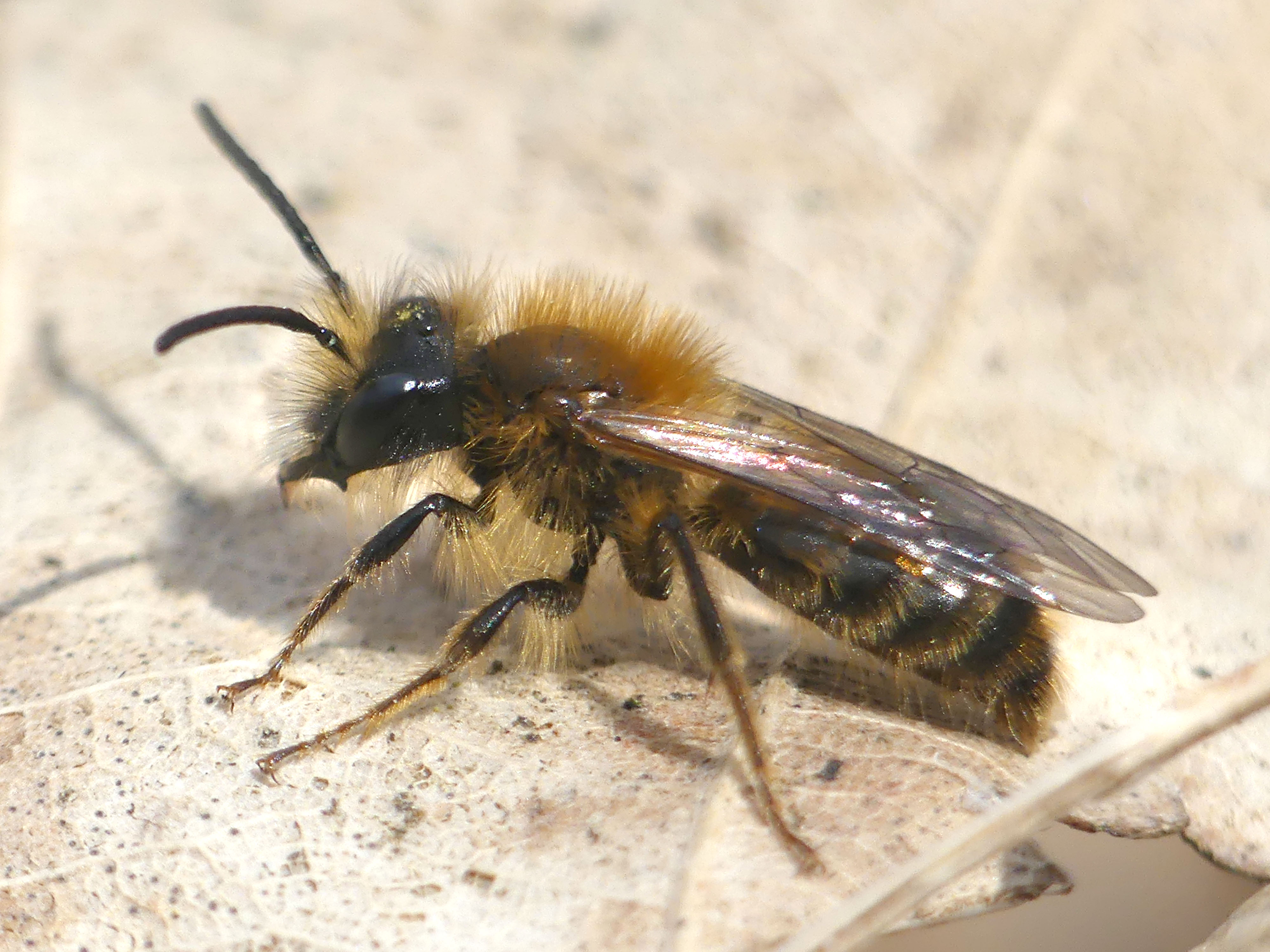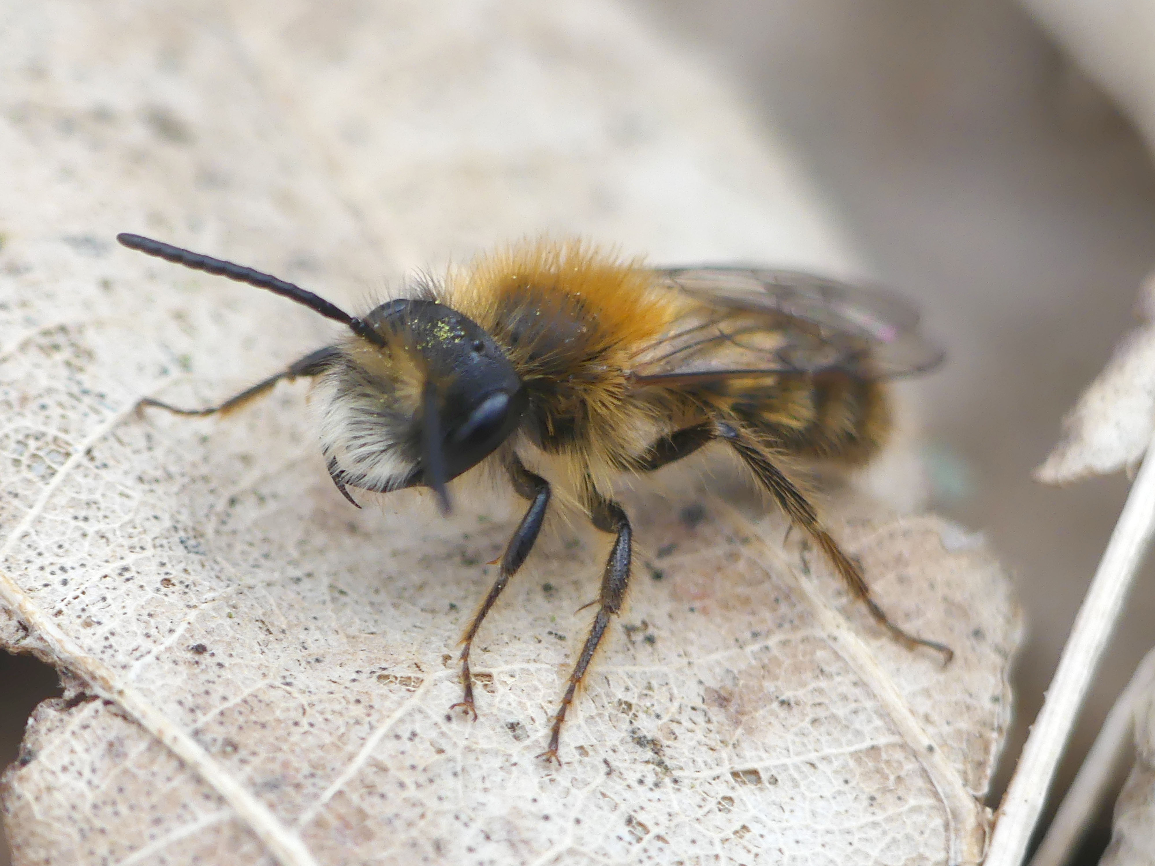 Rotpelzige Sandbiene (Andrena fulva (Müller, 1766)), Weibchen an Buchsbaum, Gleisberg, April 2018