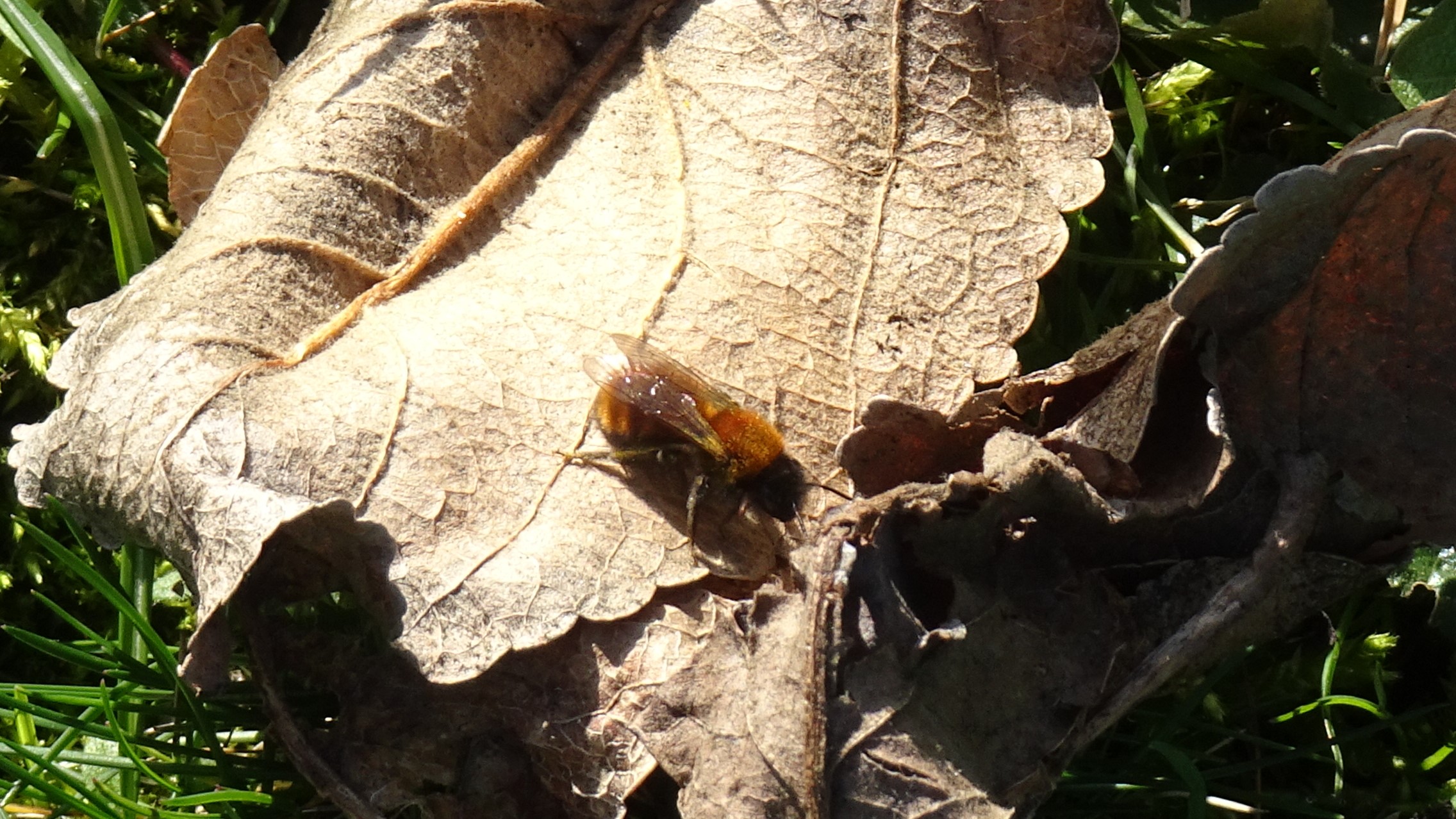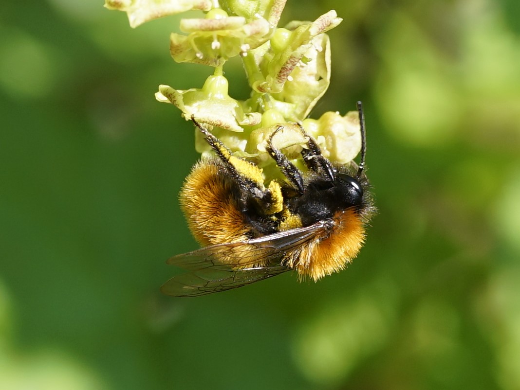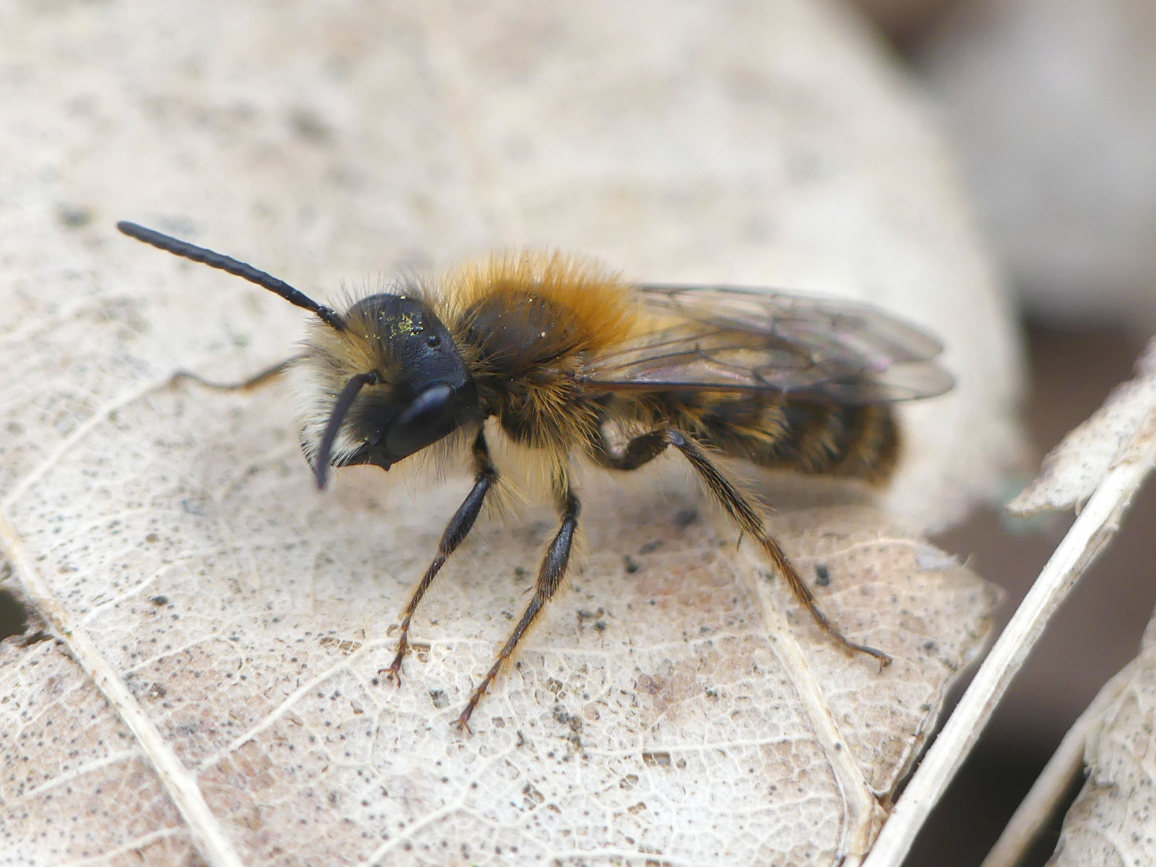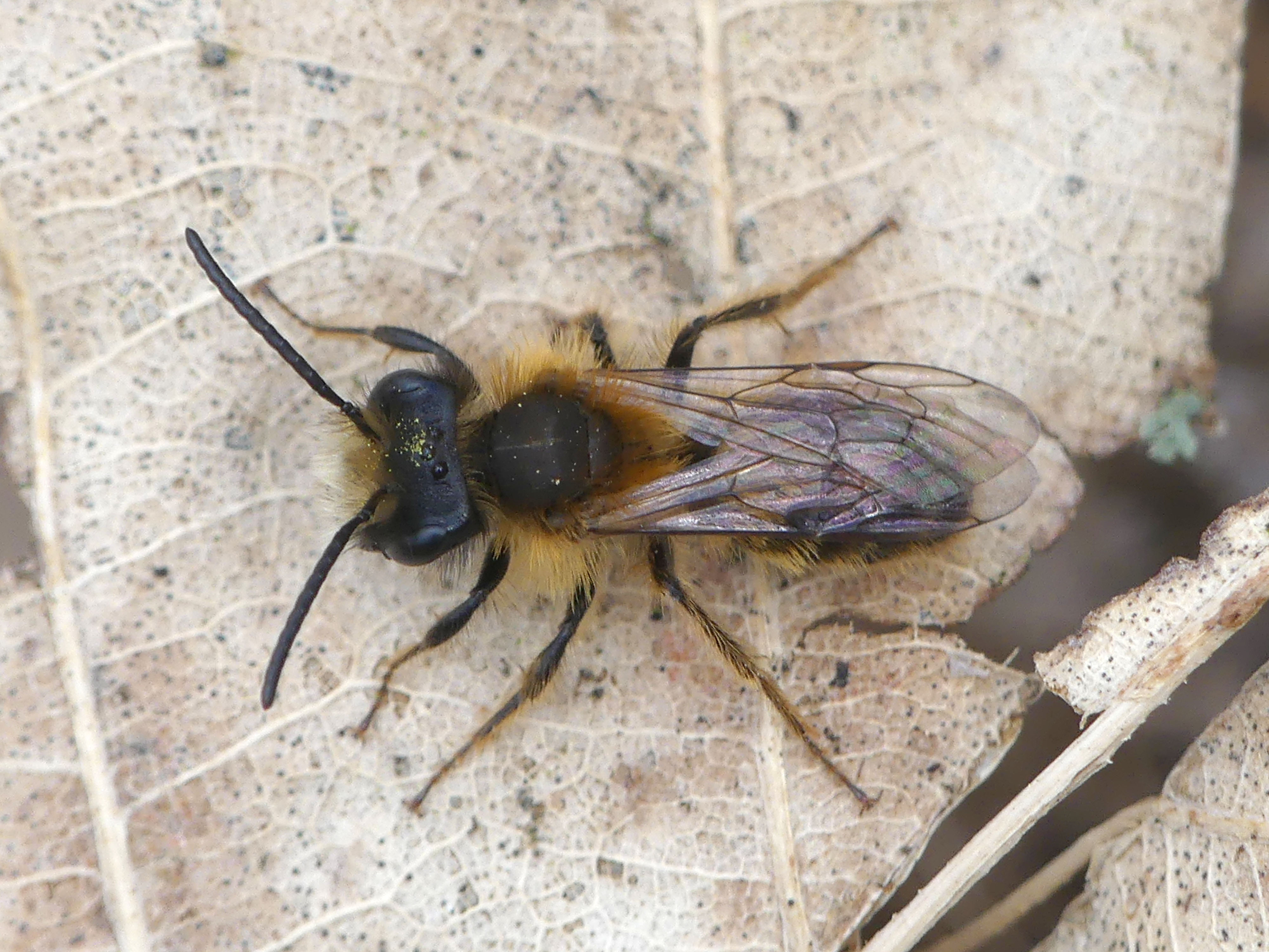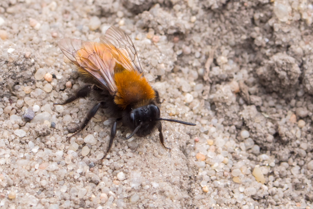 Rotpelzige Sandbiene (Andrena fulva (Müller, 1766)), Weibchen an Buchsbaum, Gleisberg, April 2018
