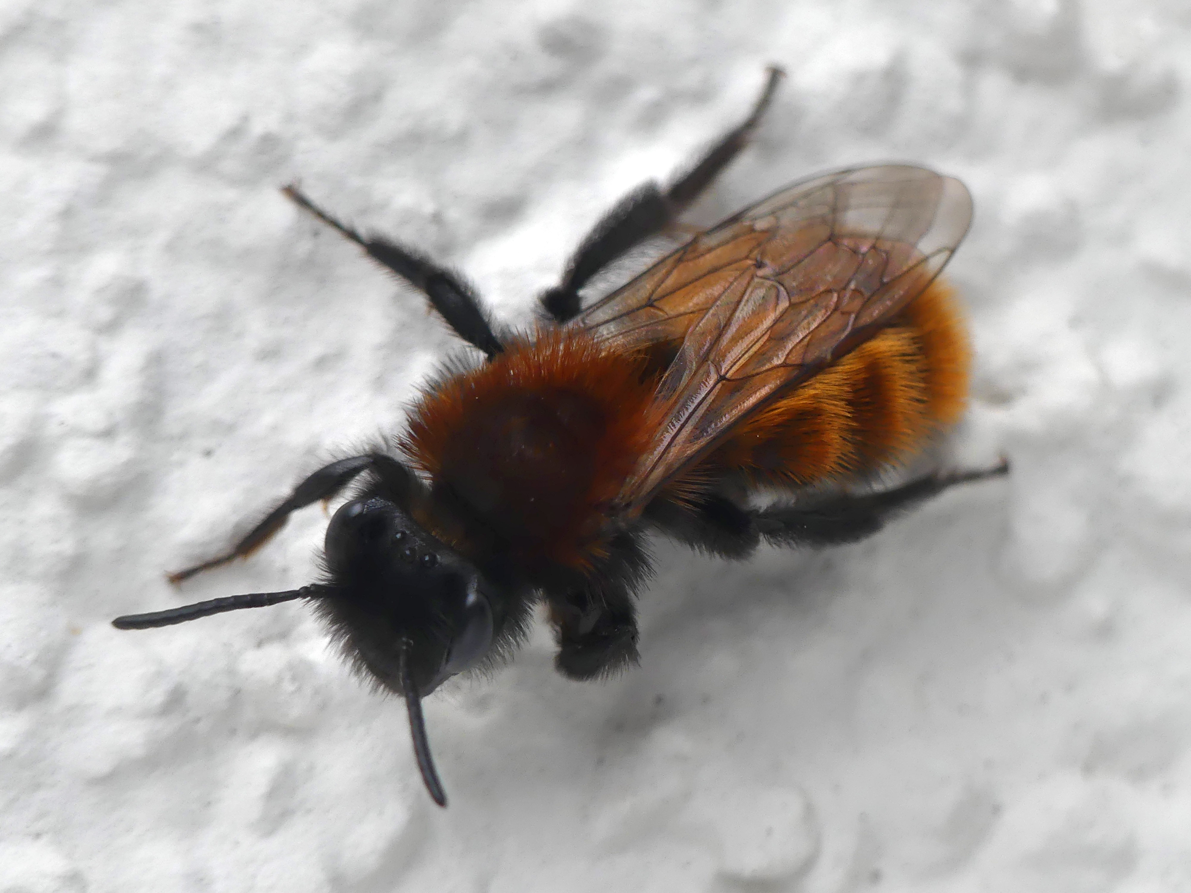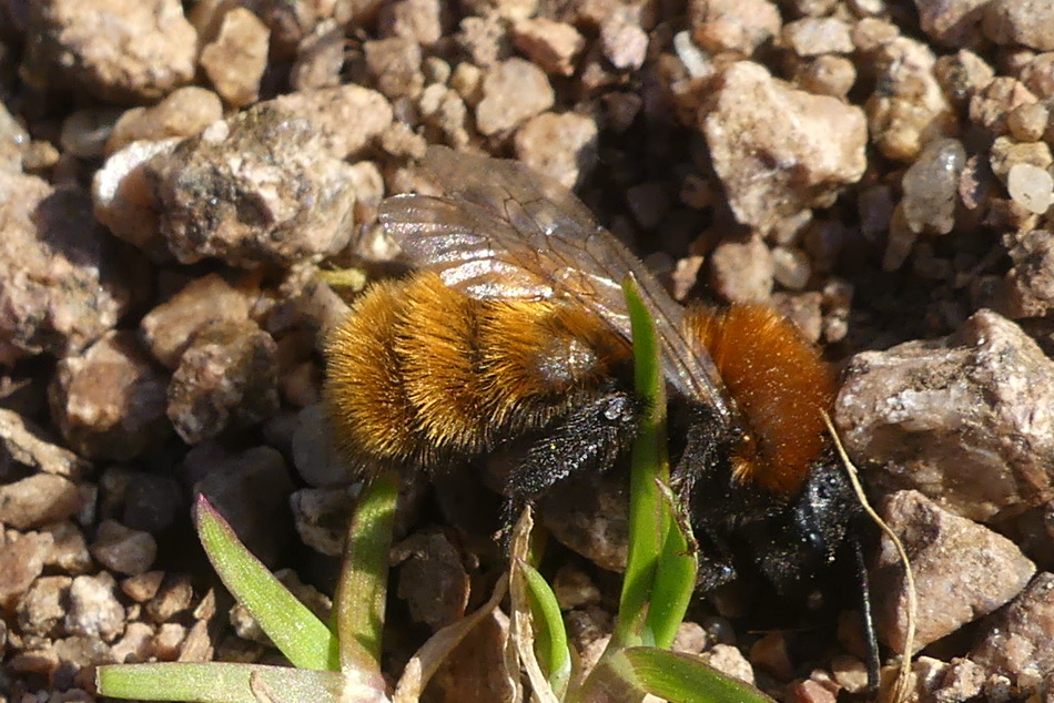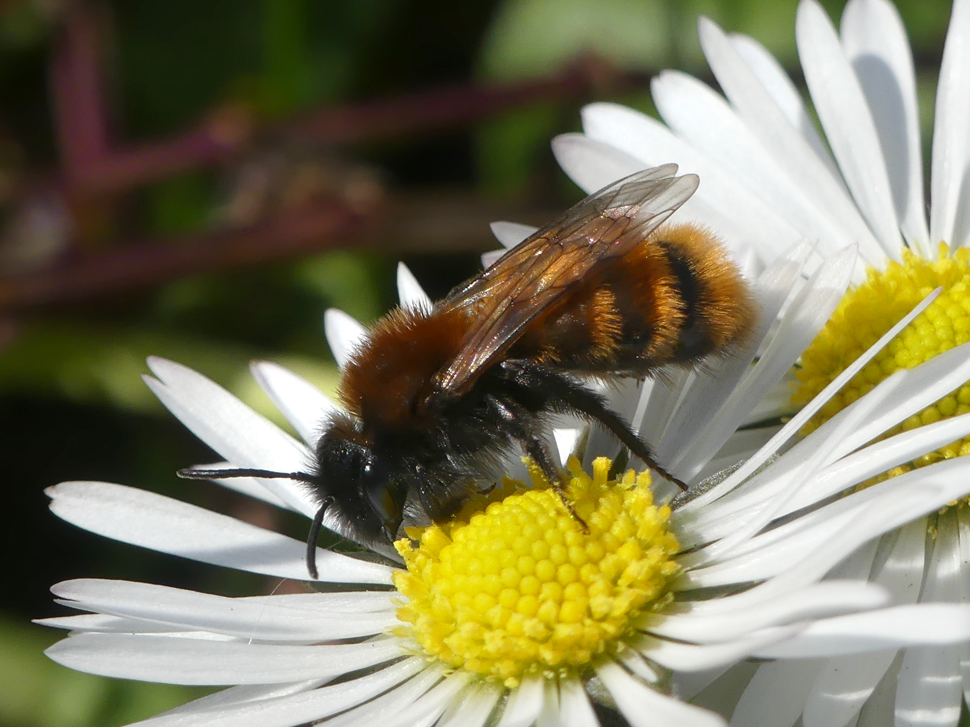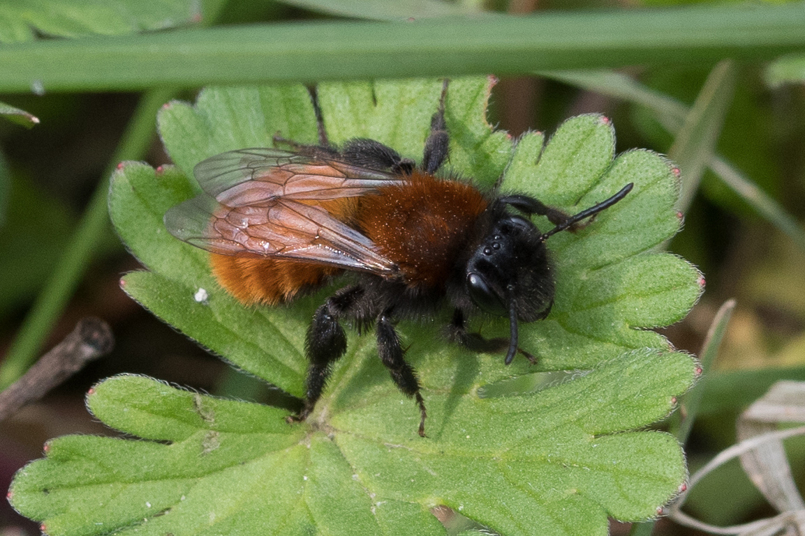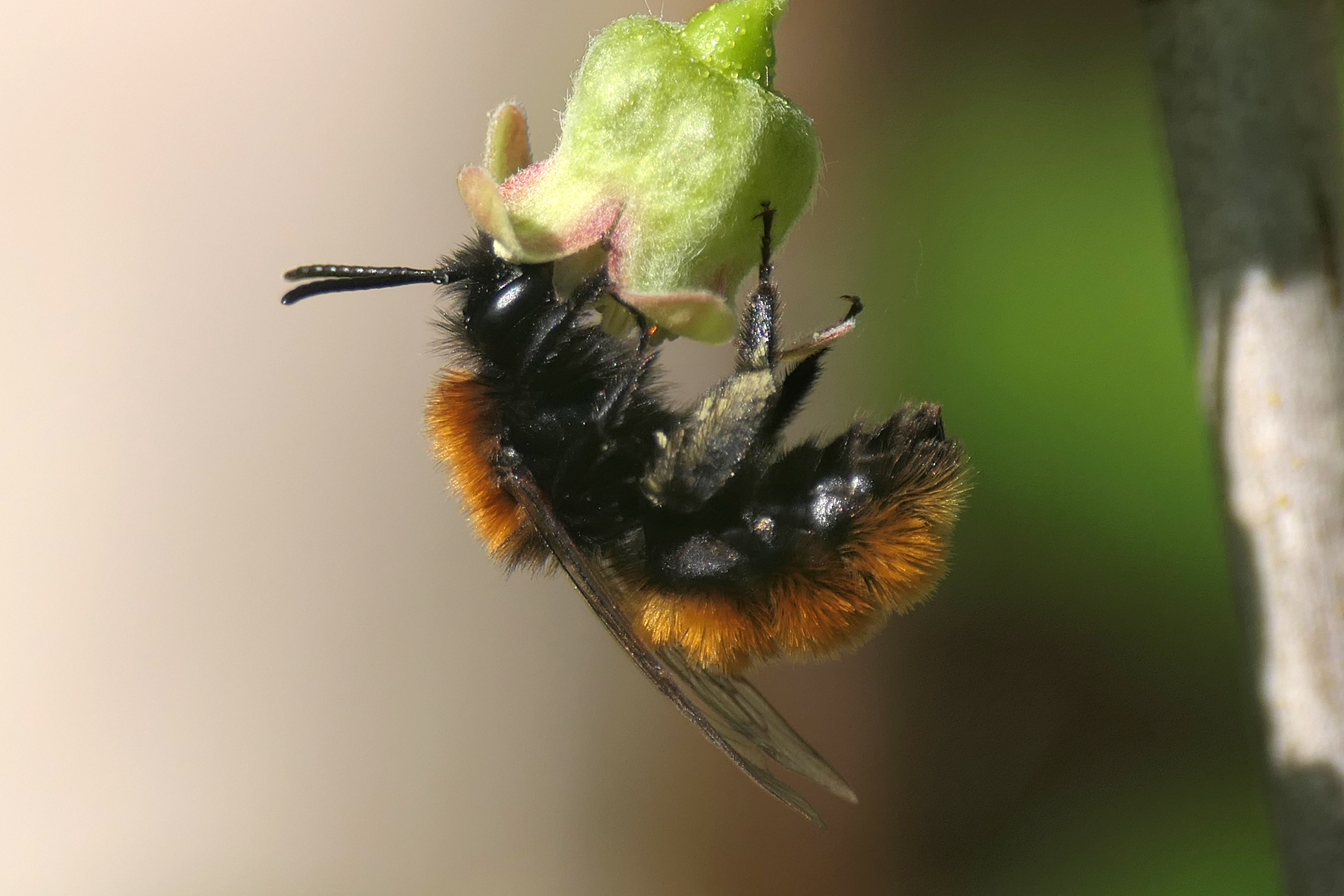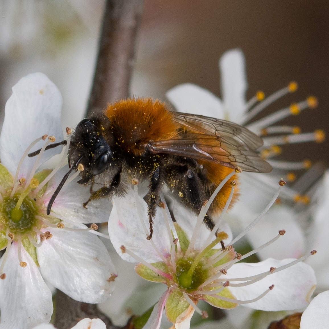 Rotpelzige Sandbiene (Andrena fulva (Müller, 1766)), Weibchen an Buchsbaum, Gleisberg, April 2018