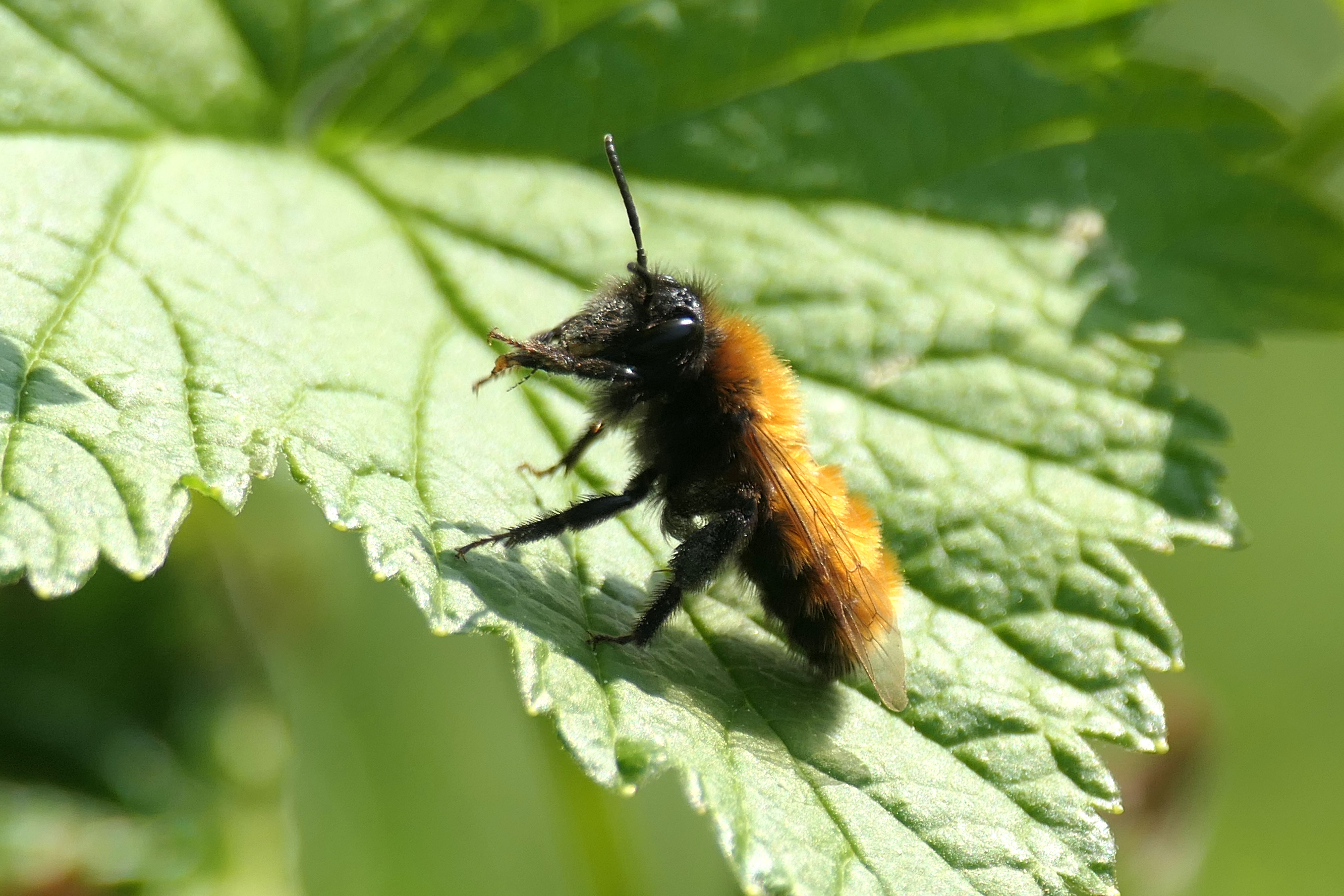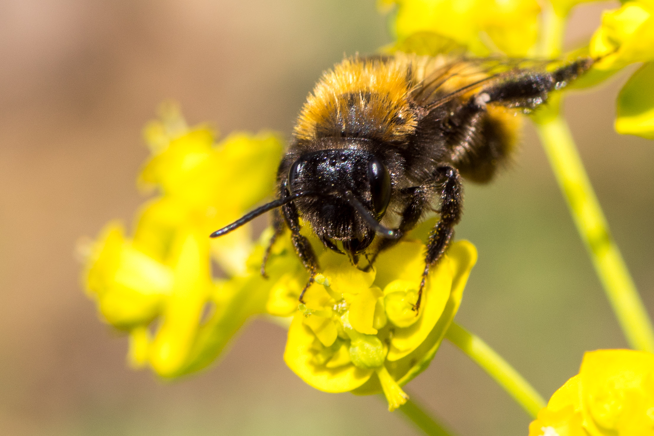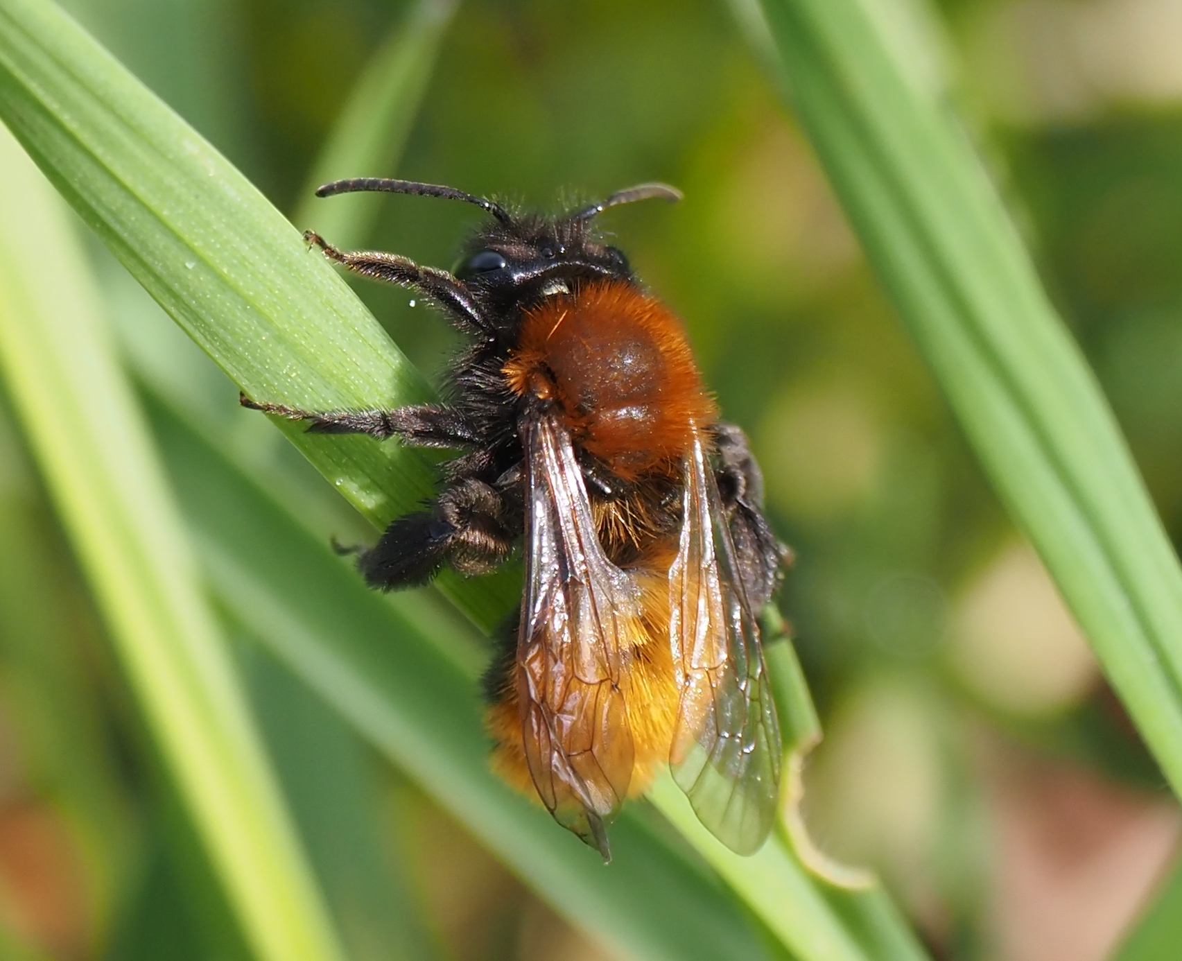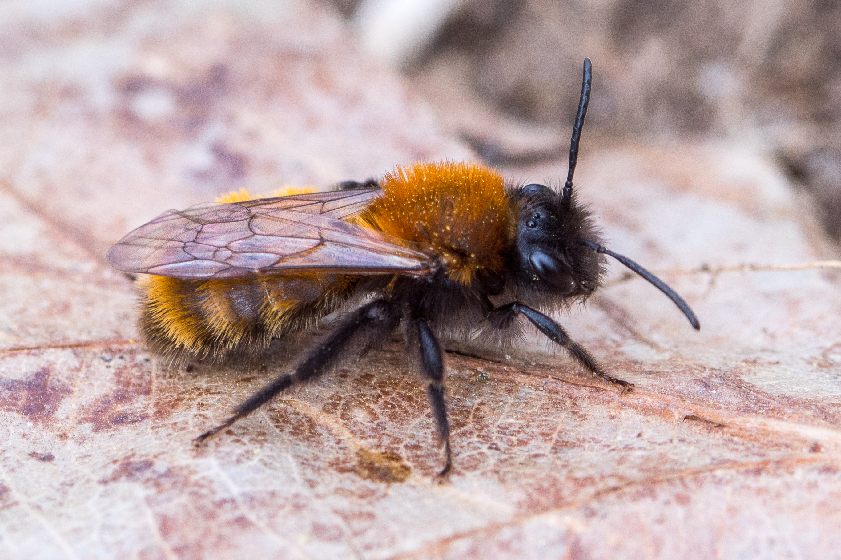 Rotpelzige Sandbiene (Andrena fulva (Müller, 1766)), Weibchen an Buchsbaum, Gleisberg, April 2018