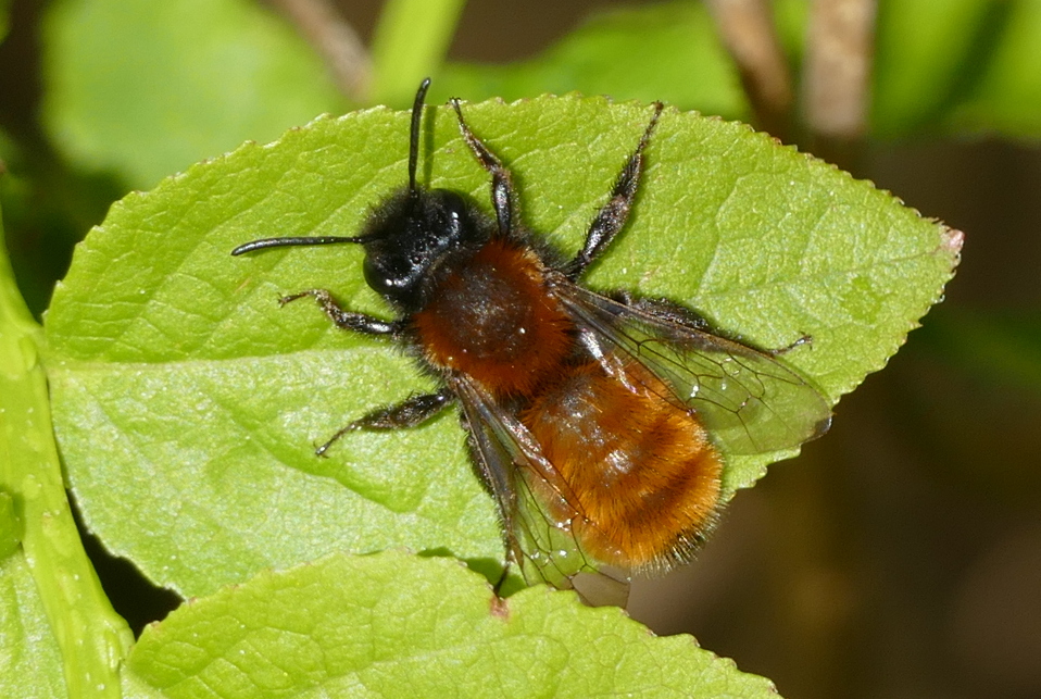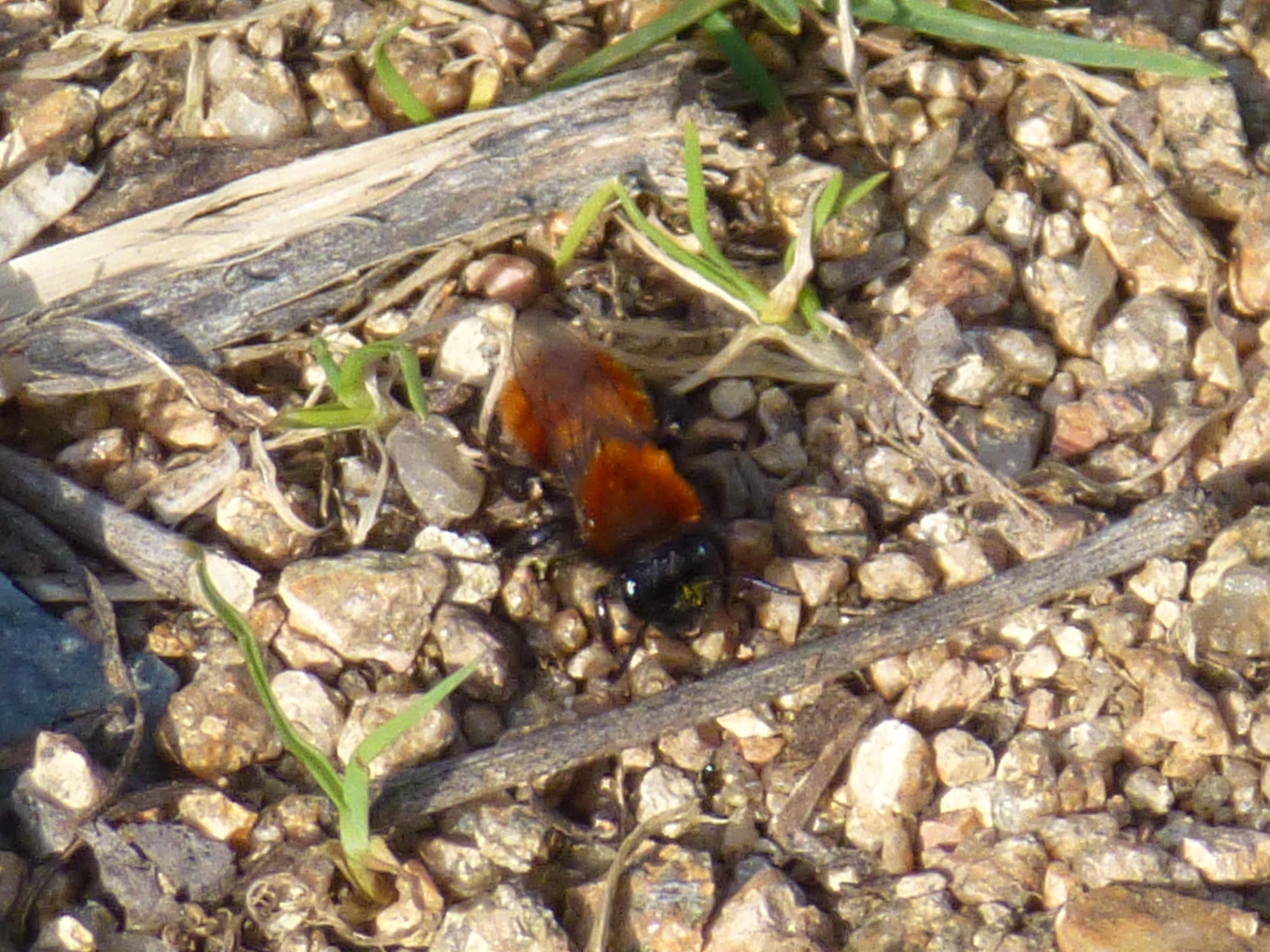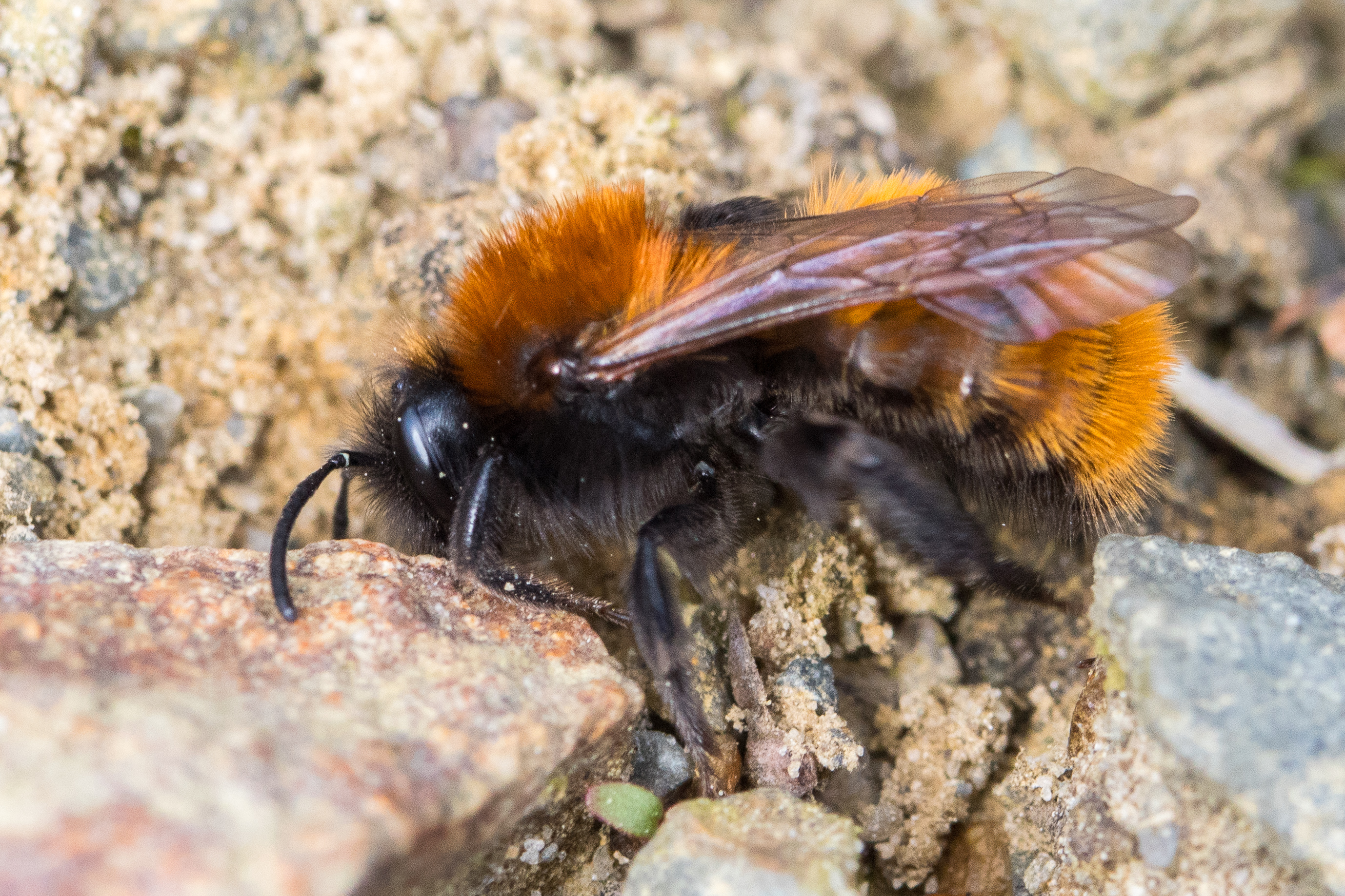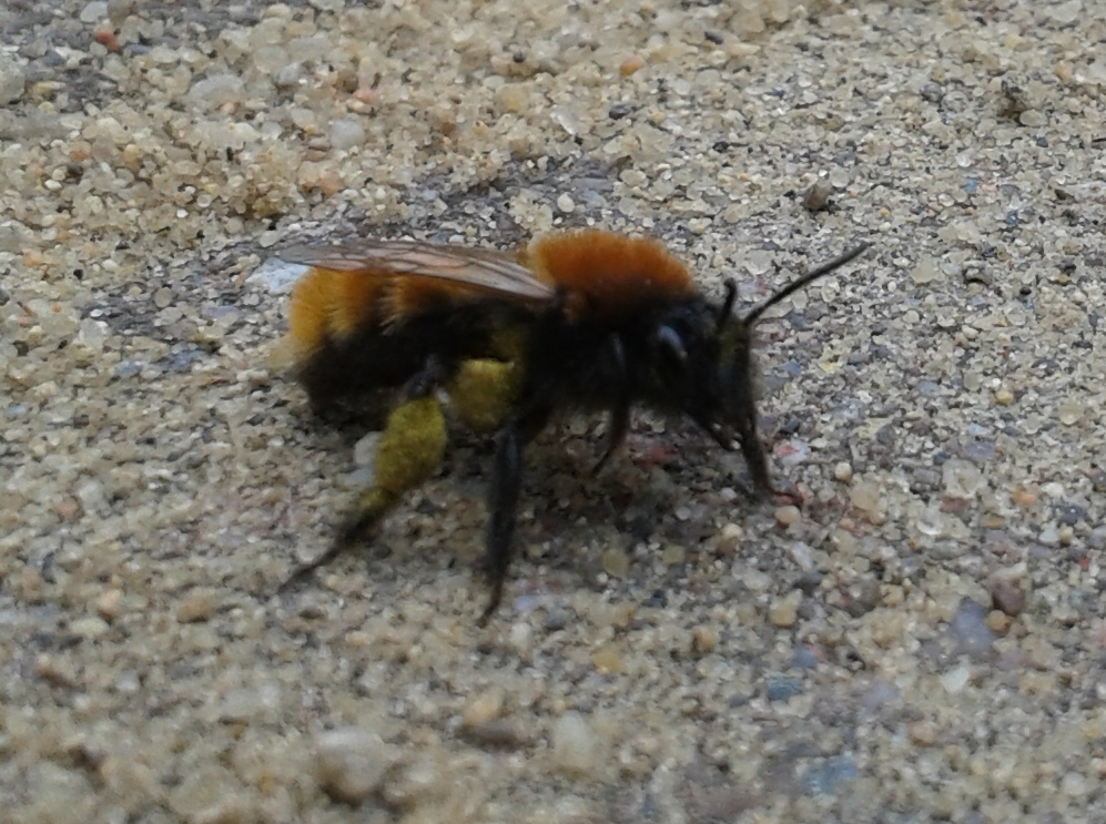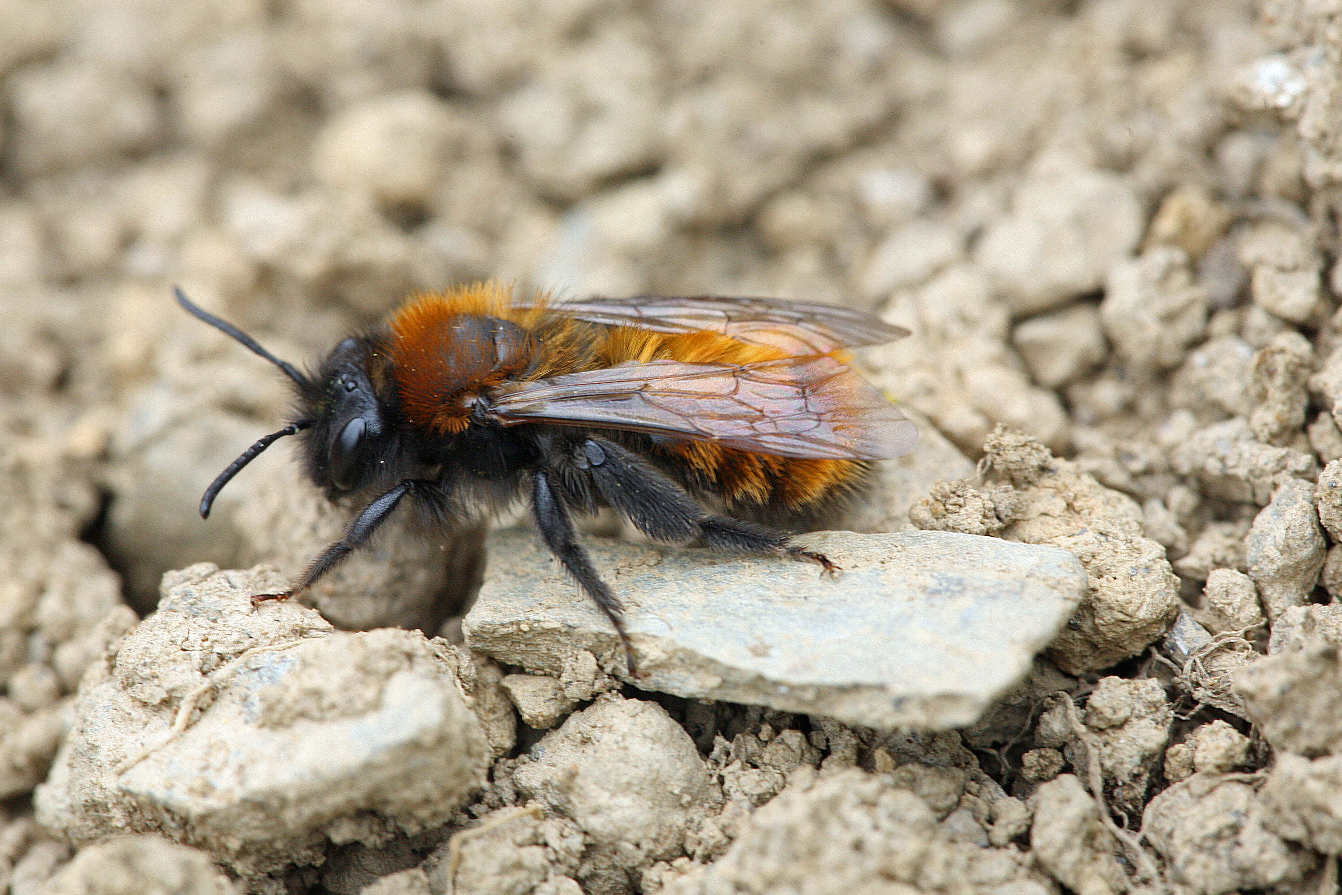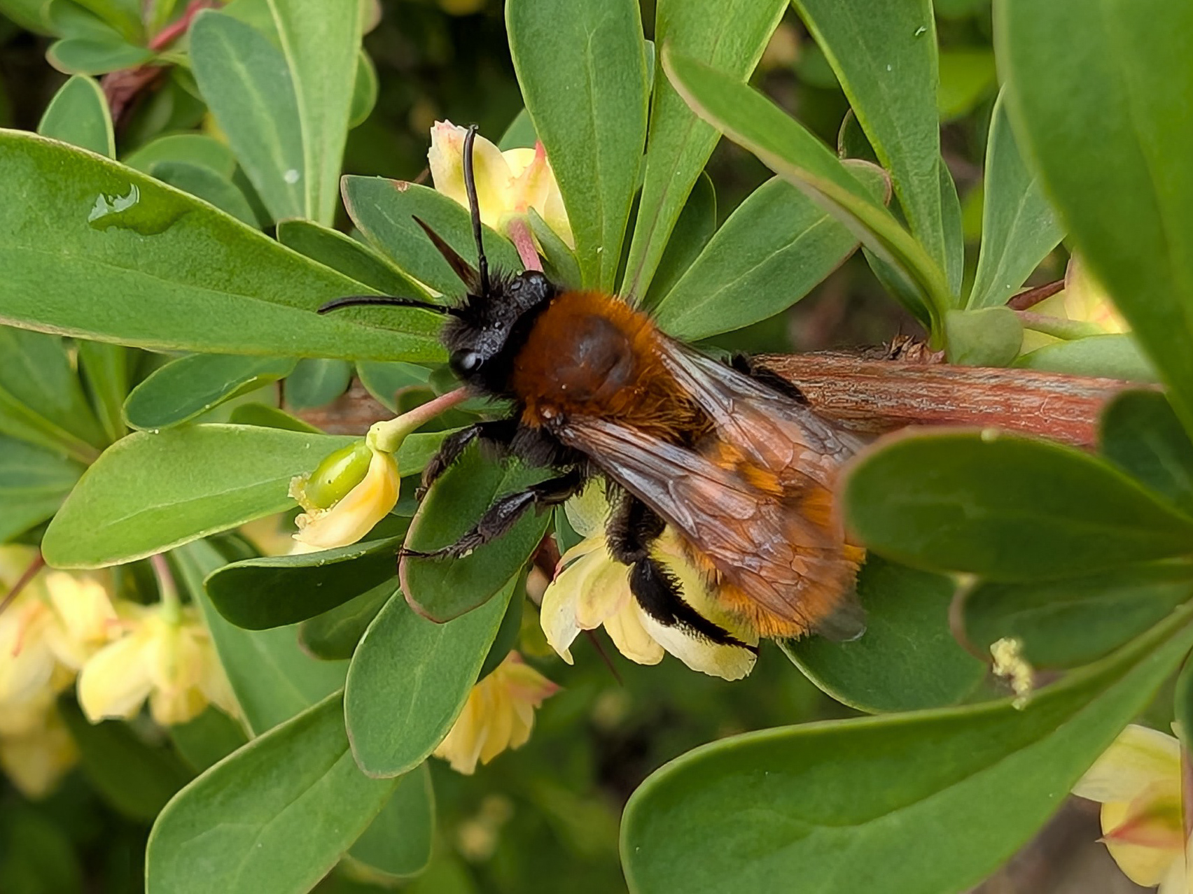 Rotpelzige Sandbiene (Andrena fulva (Müller, 1766)), Weibchen an Buchsbaum, Gleisberg, April 2018