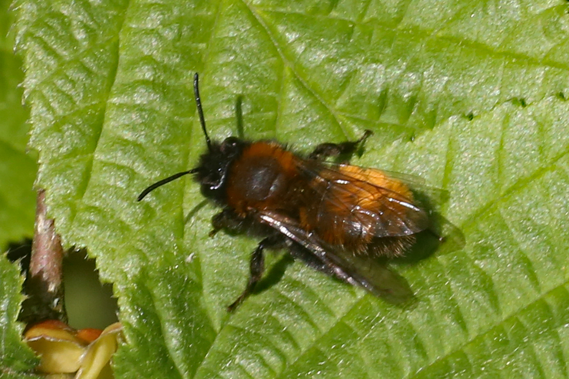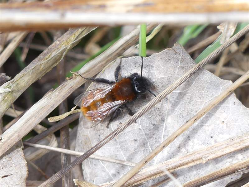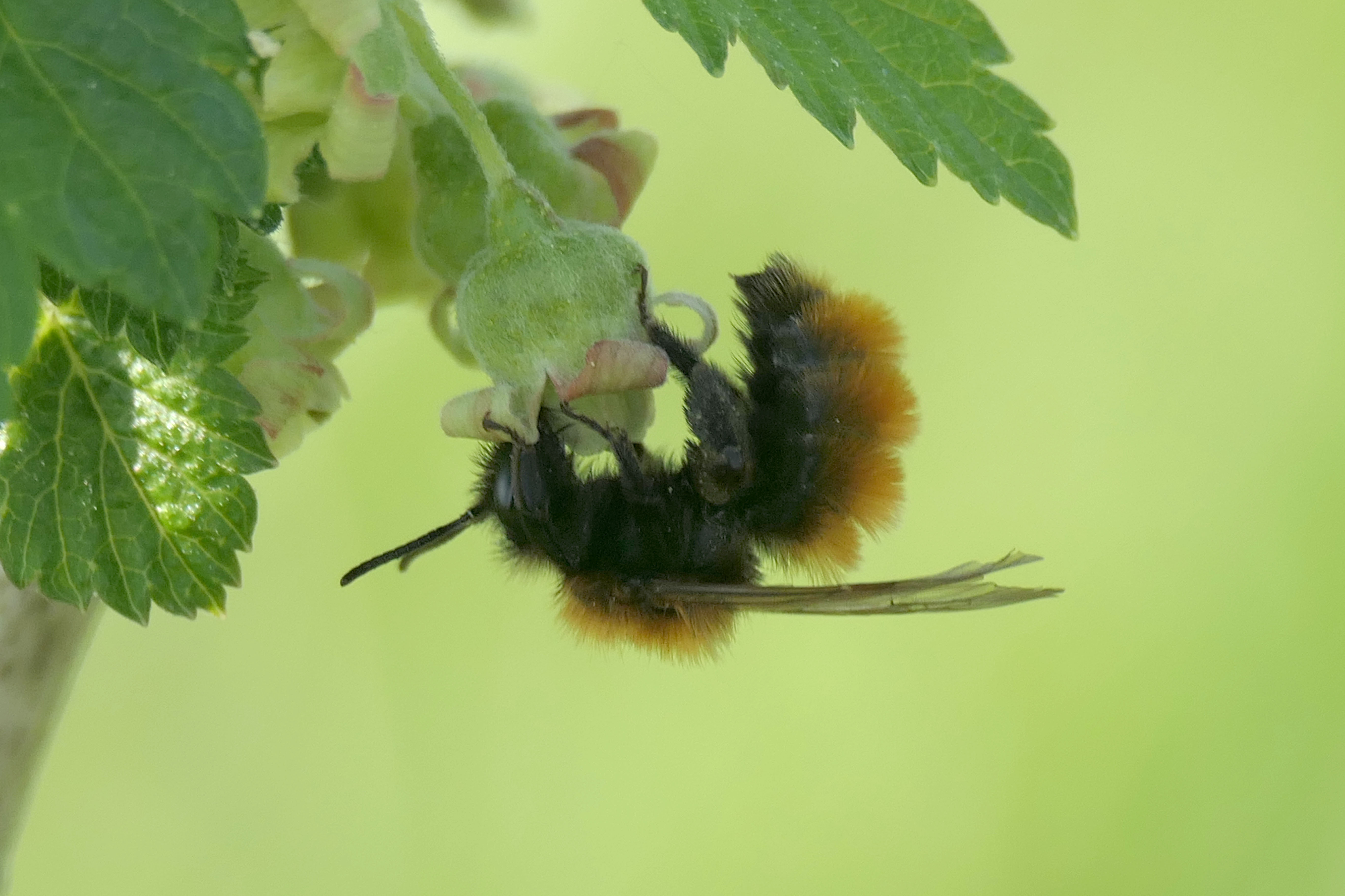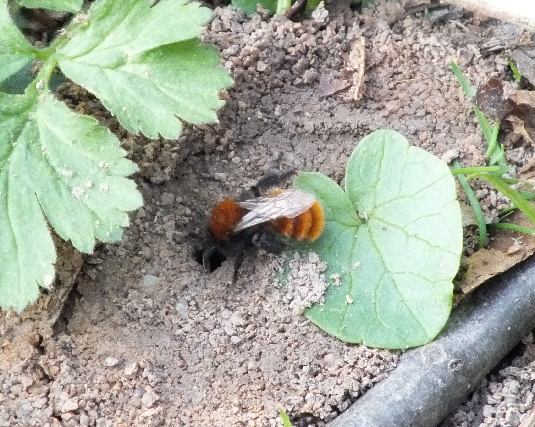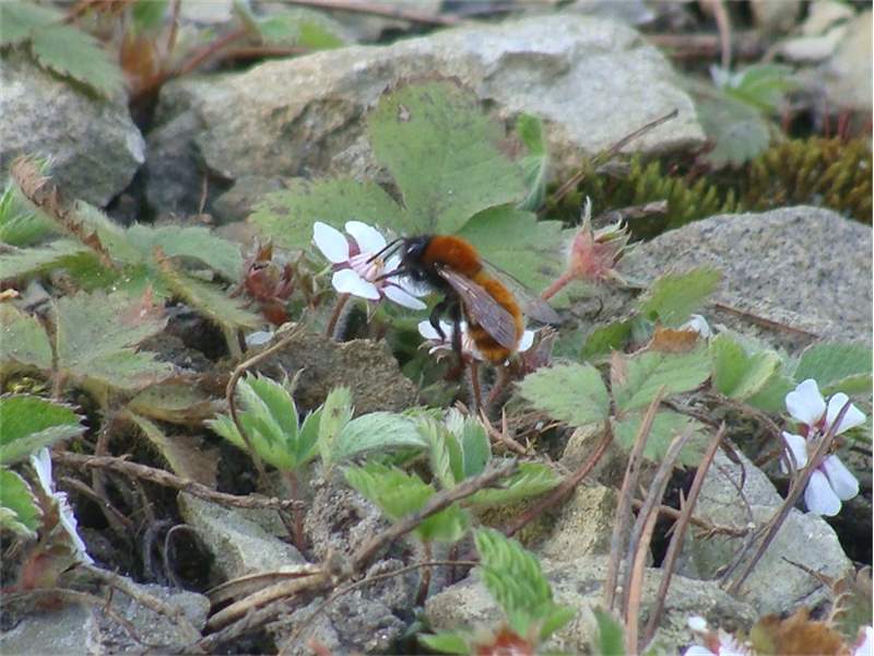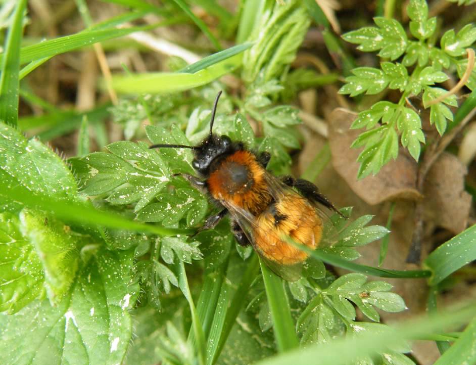 Rotpelzige Sandbiene (Andrena fulva (Müller, 1766)), Weibchen an Buchsbaum, Gleisberg, April 2018
