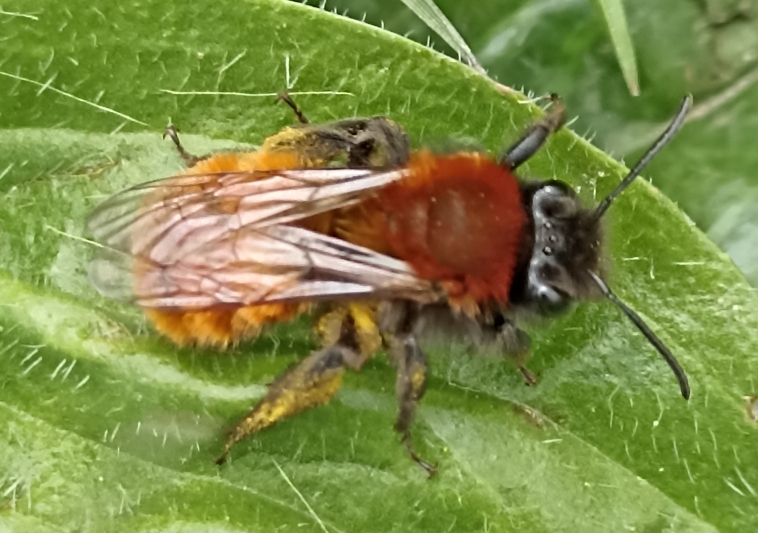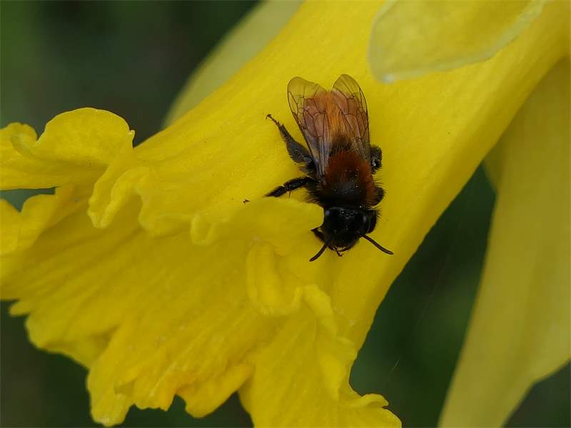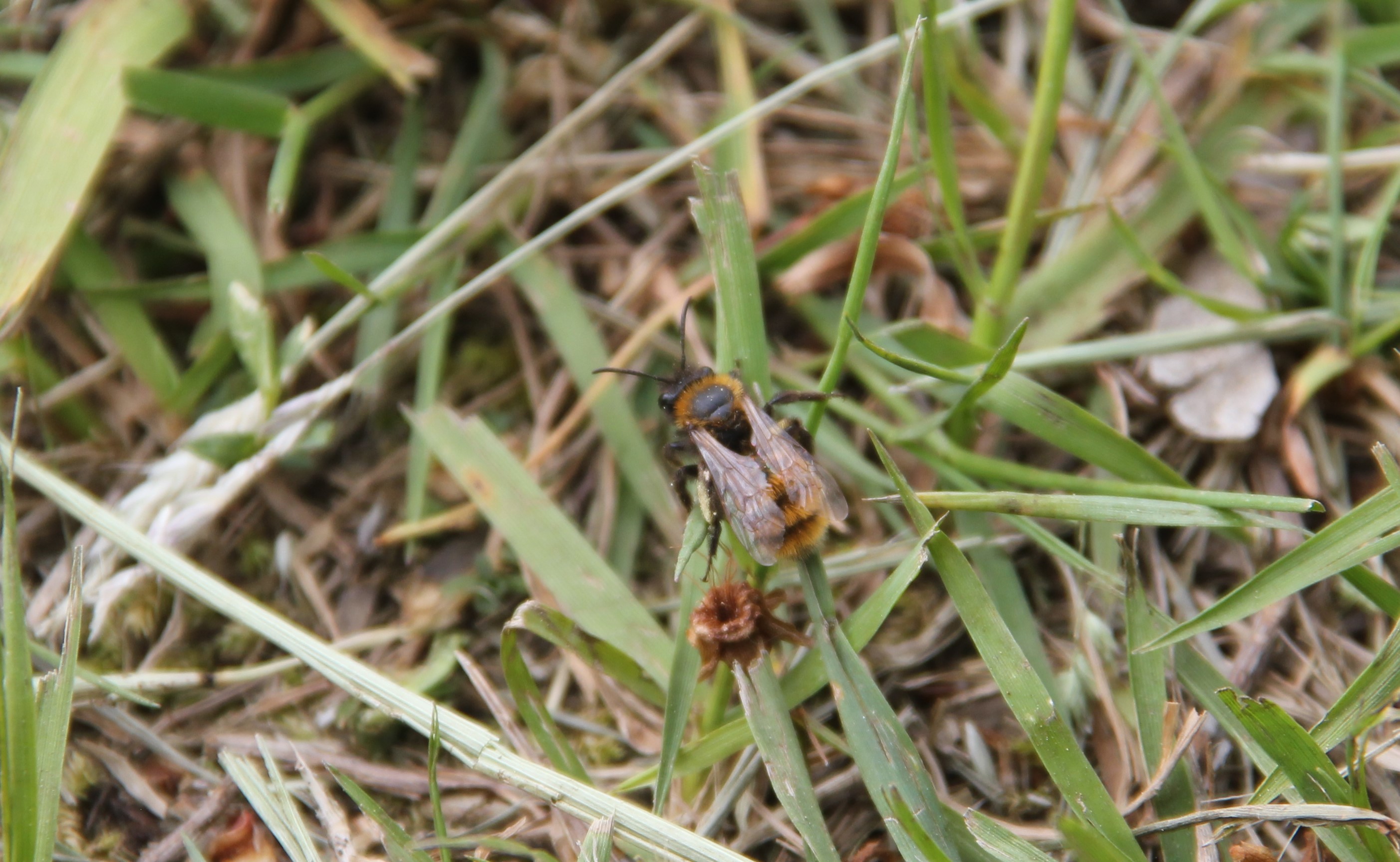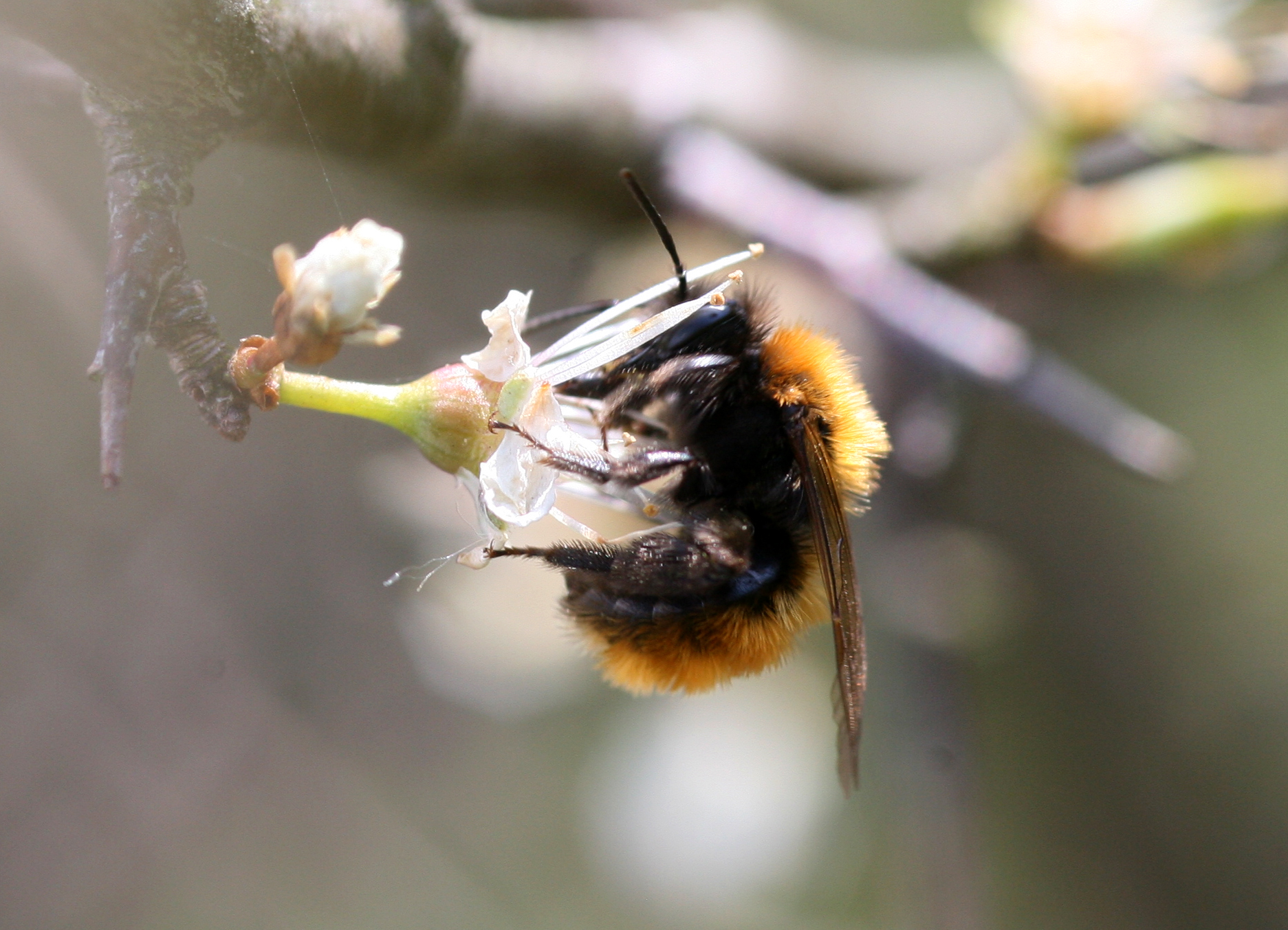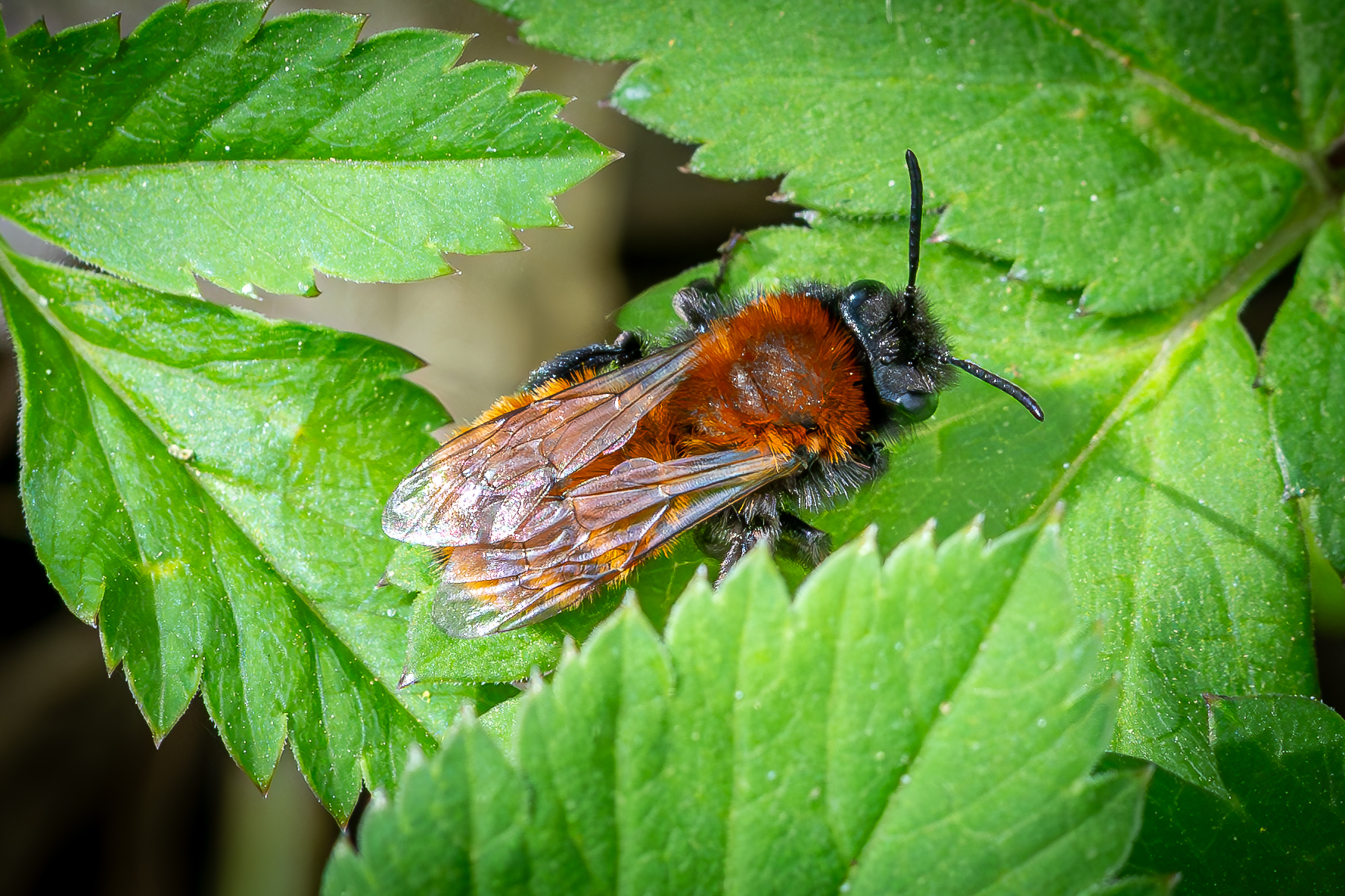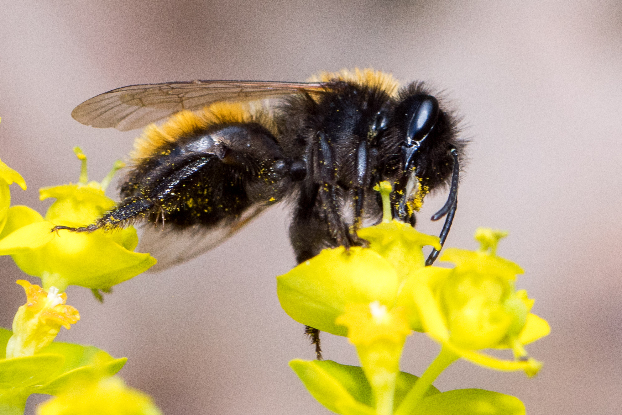 Rotpelzige Sandbiene (Andrena fulva (Müller, 1766)), Weibchen an Buchsbaum, Gleisberg, April 2018