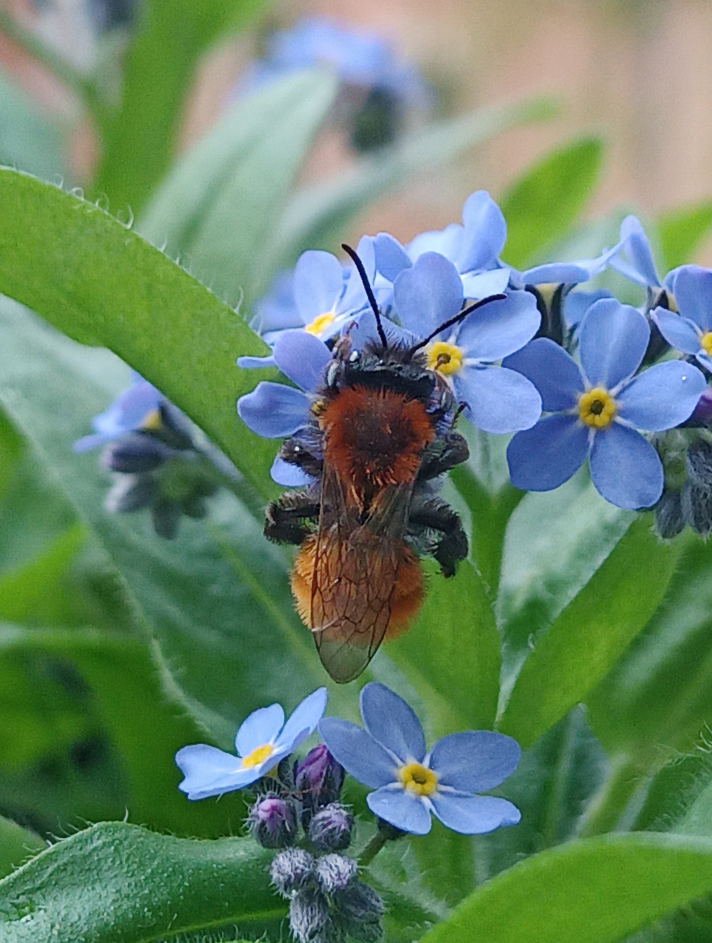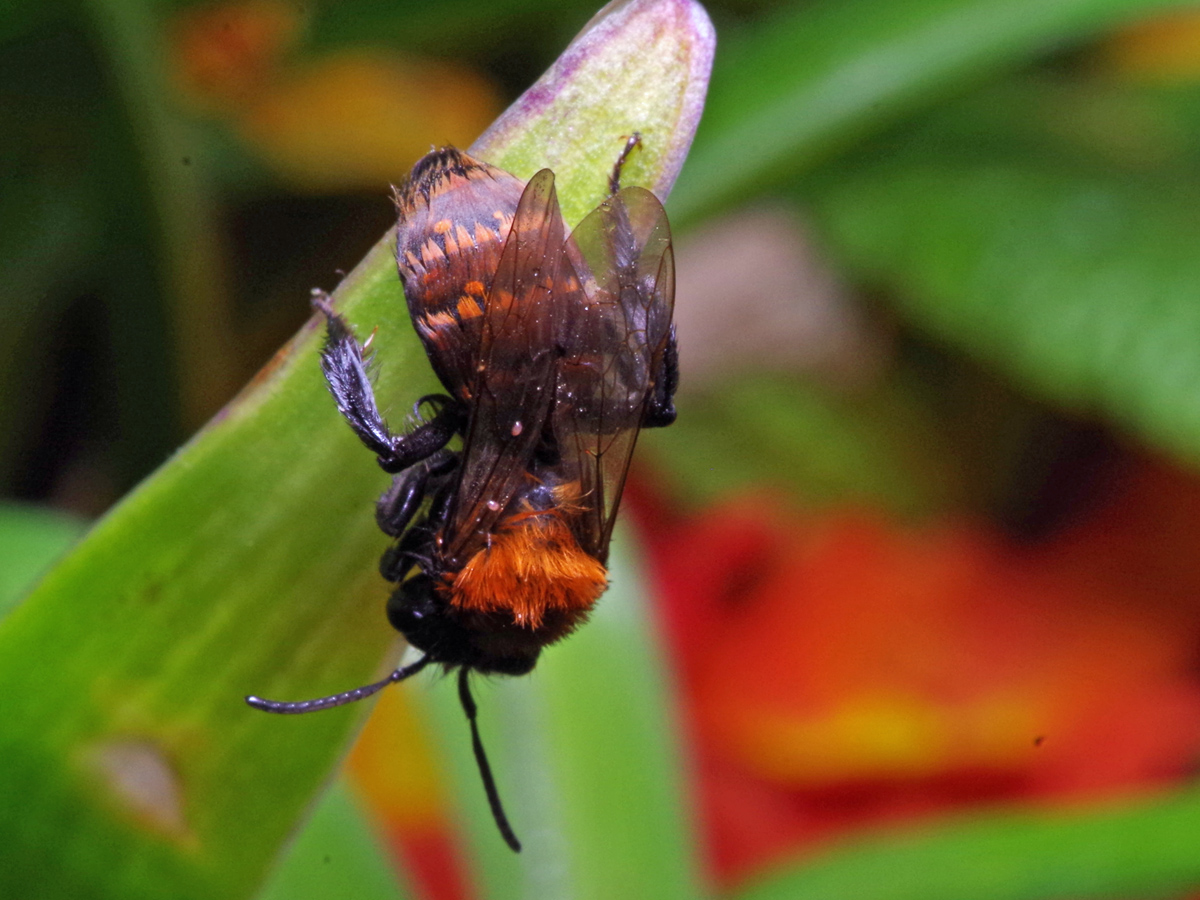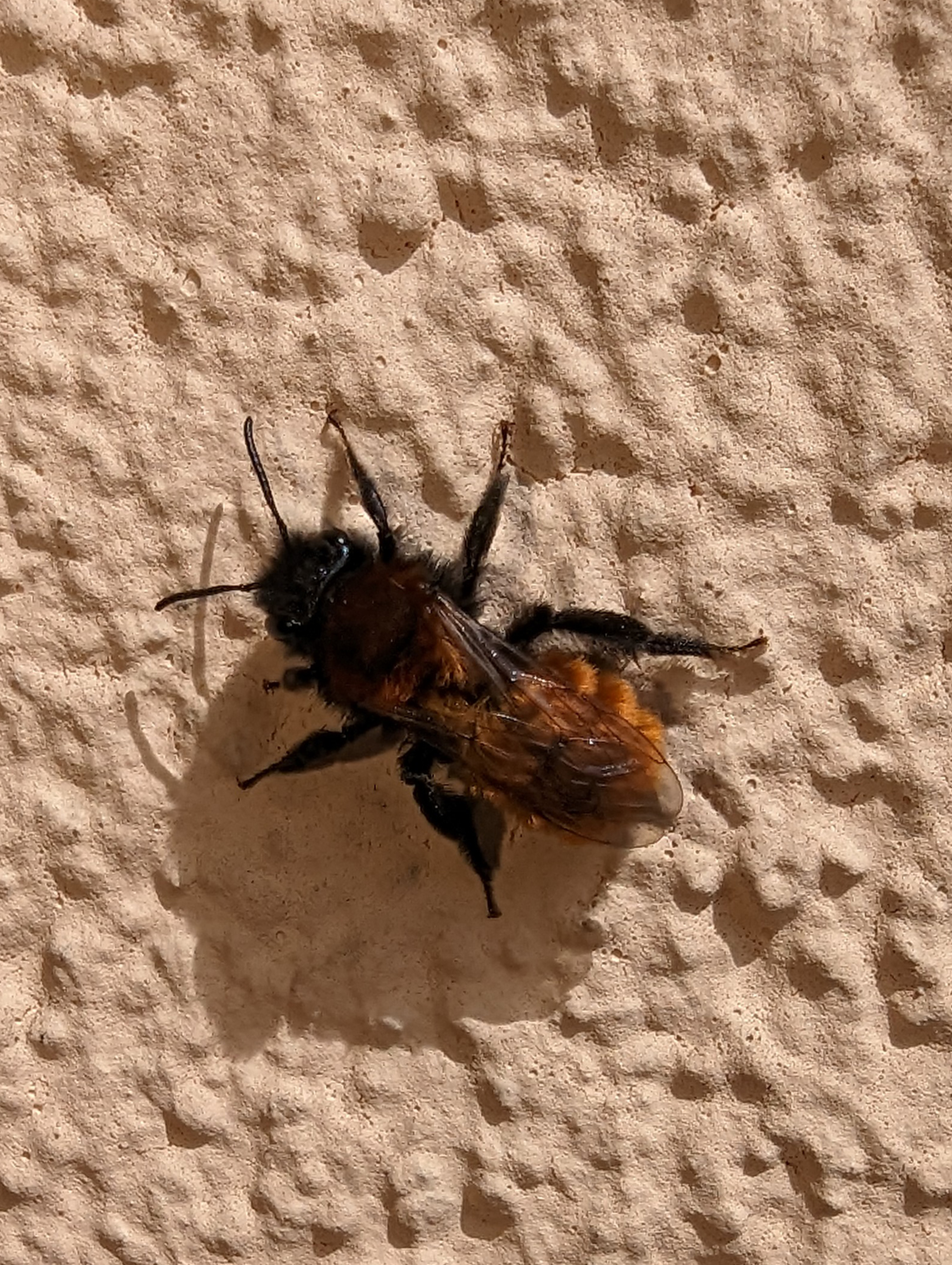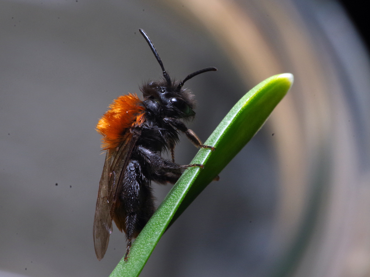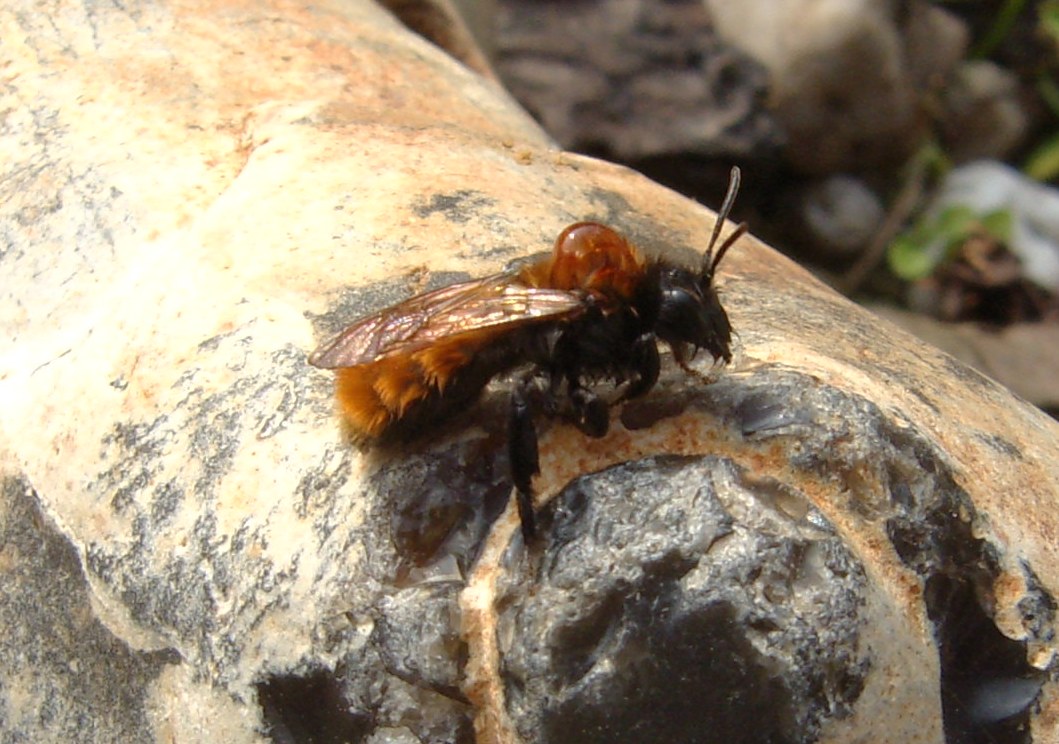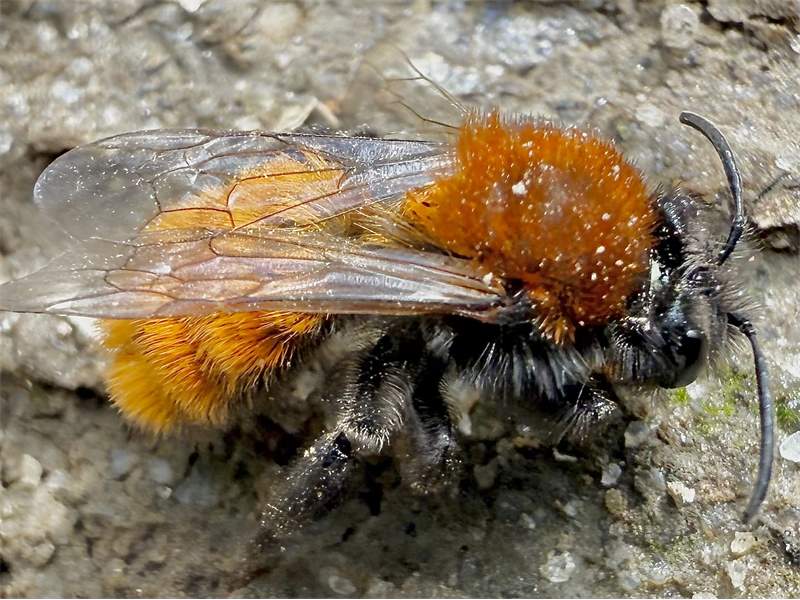 Rotpelzige Sandbiene (Andrena fulva (Müller, 1766)), Weibchen an Buchsbaum, Gleisberg, April 2018