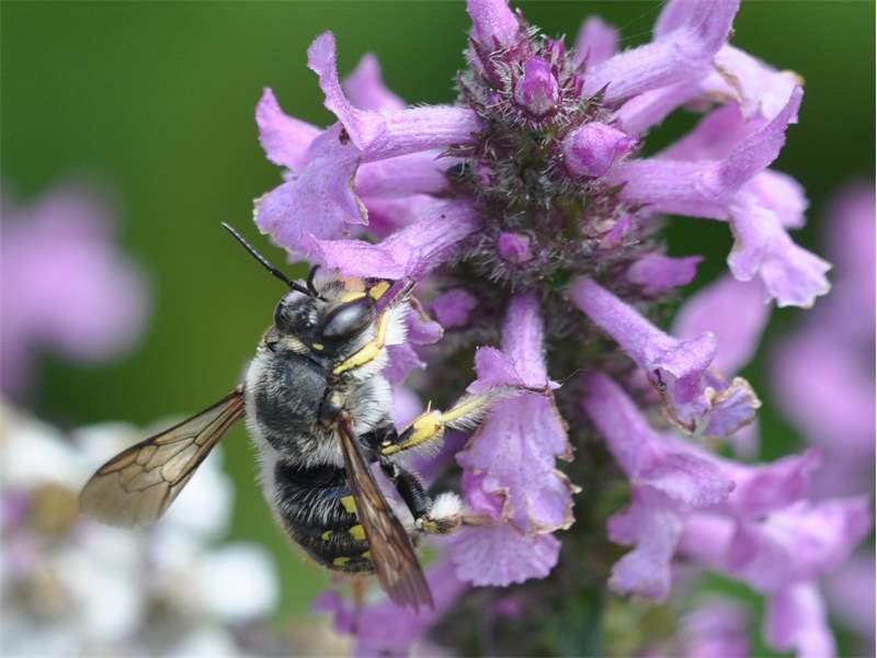 Durch ihre Vorliebe für viele der typischerweise in Gärten kultivierten Zier- und Kräuterpflanzen, wo sie sowohl Pollen und Nektar als auch Nistmaterial sammelt, fühlt sich die Garten-Wollbiene in Parks und Gärten besonders wohl. Um sie direkt zu fördern, lohnt es sich, für geeignete Nisthabitate zu sorgen, wie z. B. sonnendisponierte Steinhaufen und Trockenmauern, aber auch Totholz mit ausreichend großen (Käfer-)Fraßgängen.