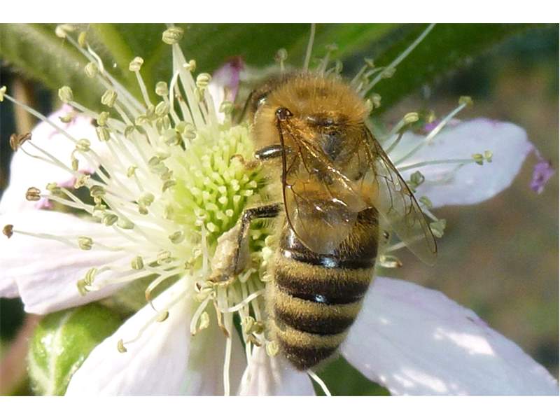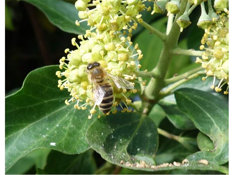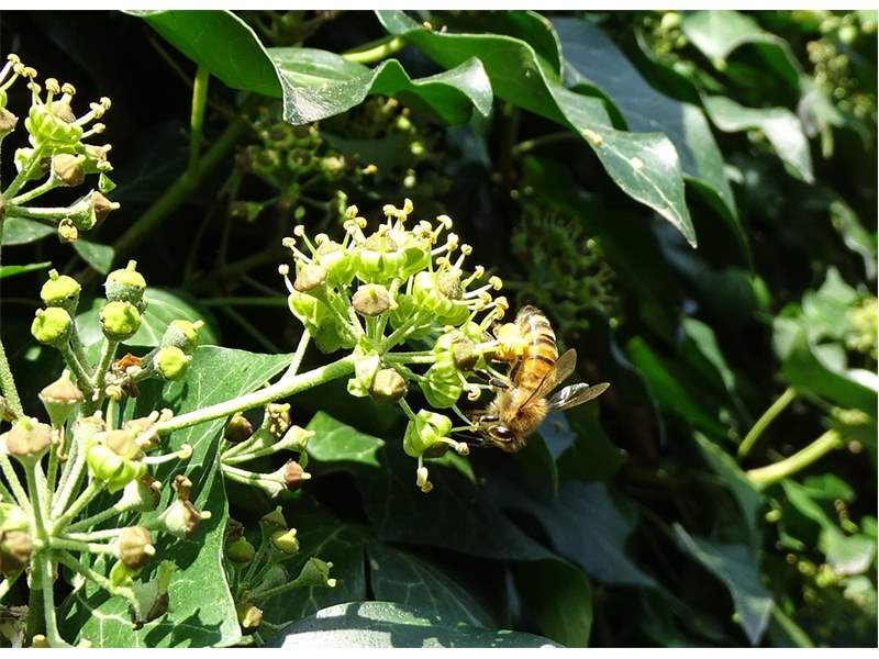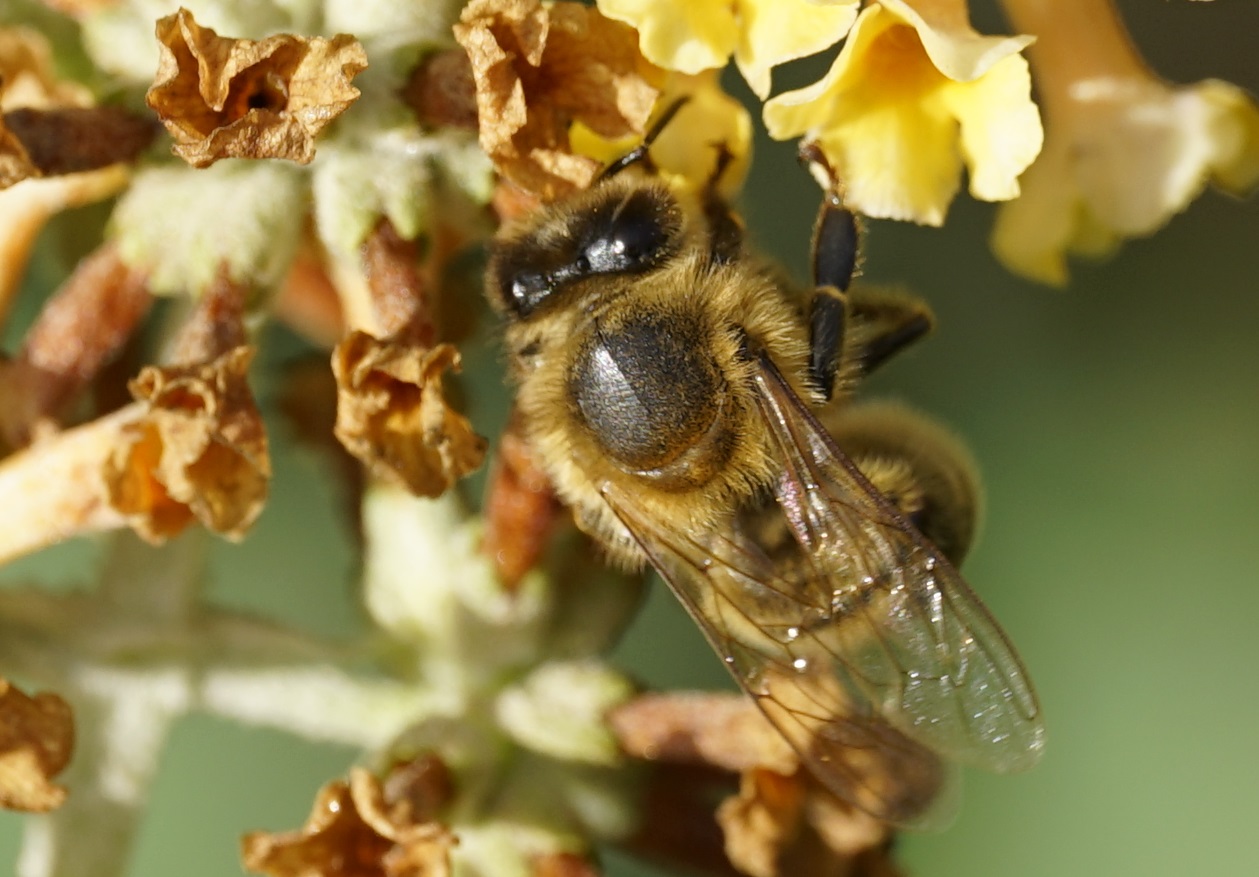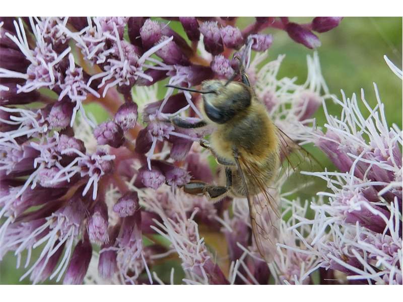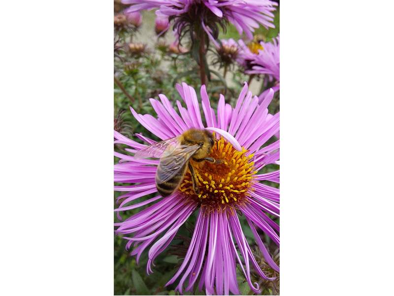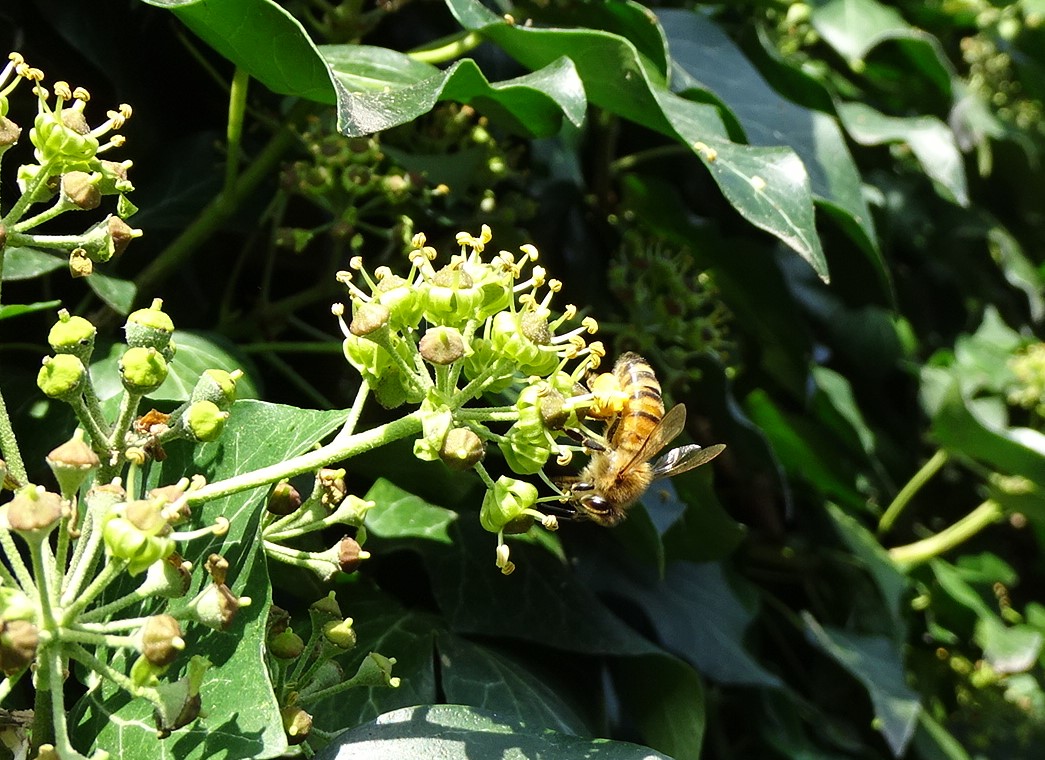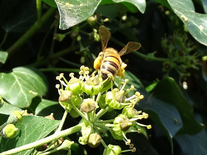 Westliche Honigbiene (Apis mellifera Linnaeus, 1758), Plauen/Vogtland, Nach den drei Bergen, Hausgarten, Oktober 2018 (© Steffen Hintersaß)( Bild vergrößern)