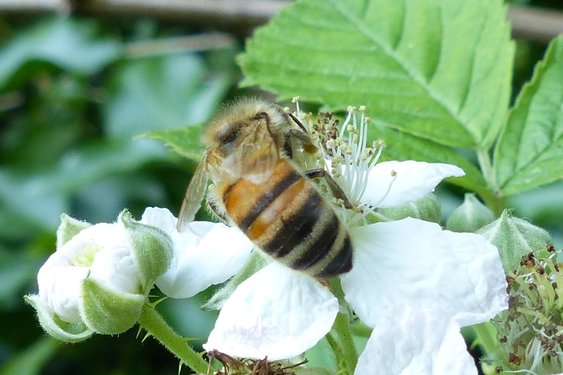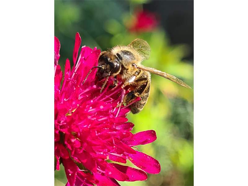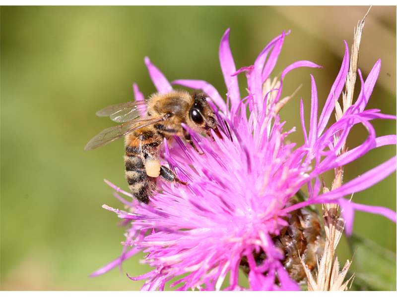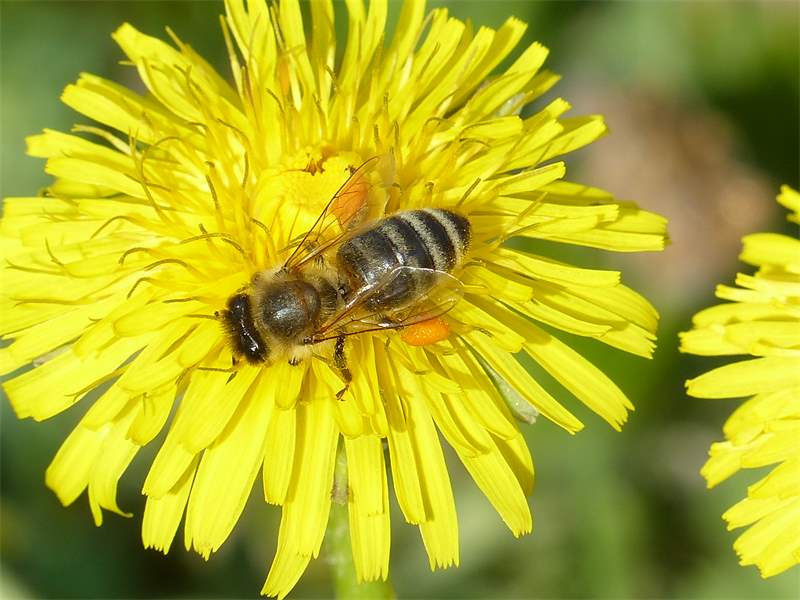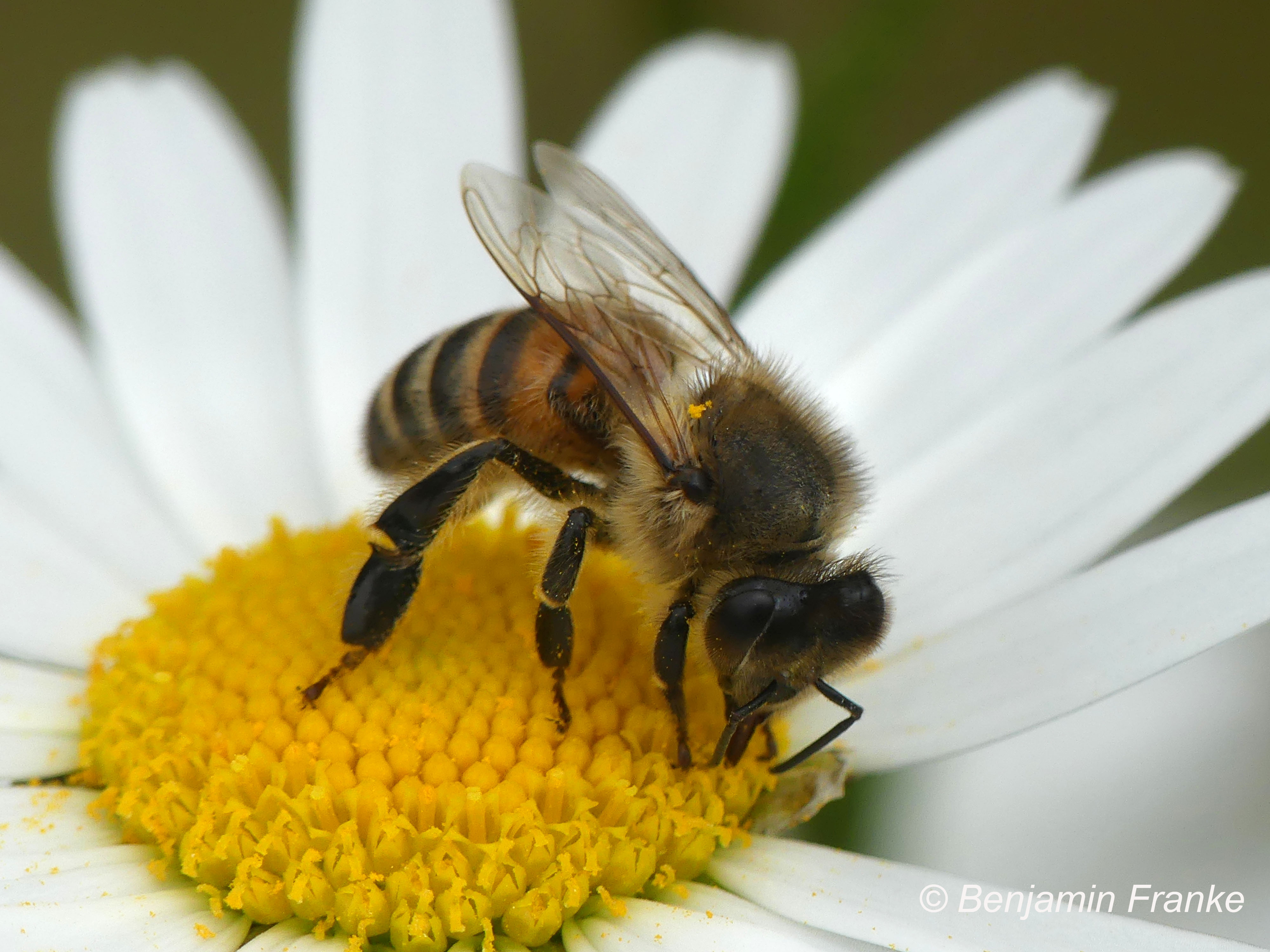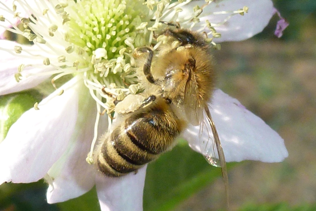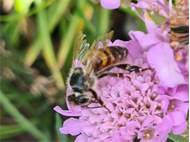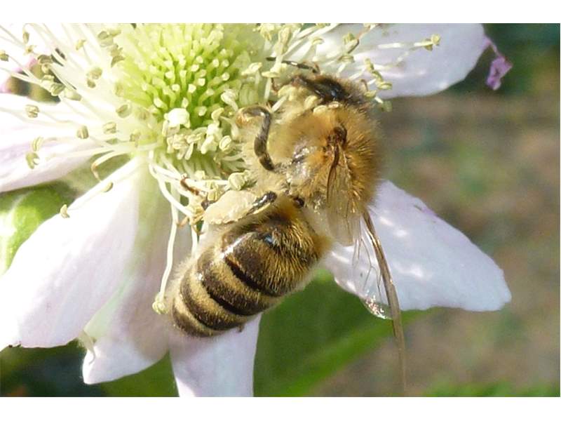 Westliche Honigbiene (Apis mellifera Linnaeus, 1758), Plauen/Vogtland, Nach den drei Bergen, Hausgarten, Oktober 2018 (© Steffen Hintersaß)( Bild vergrößern)
