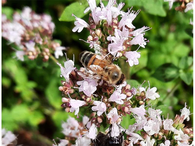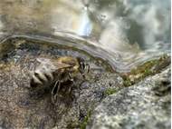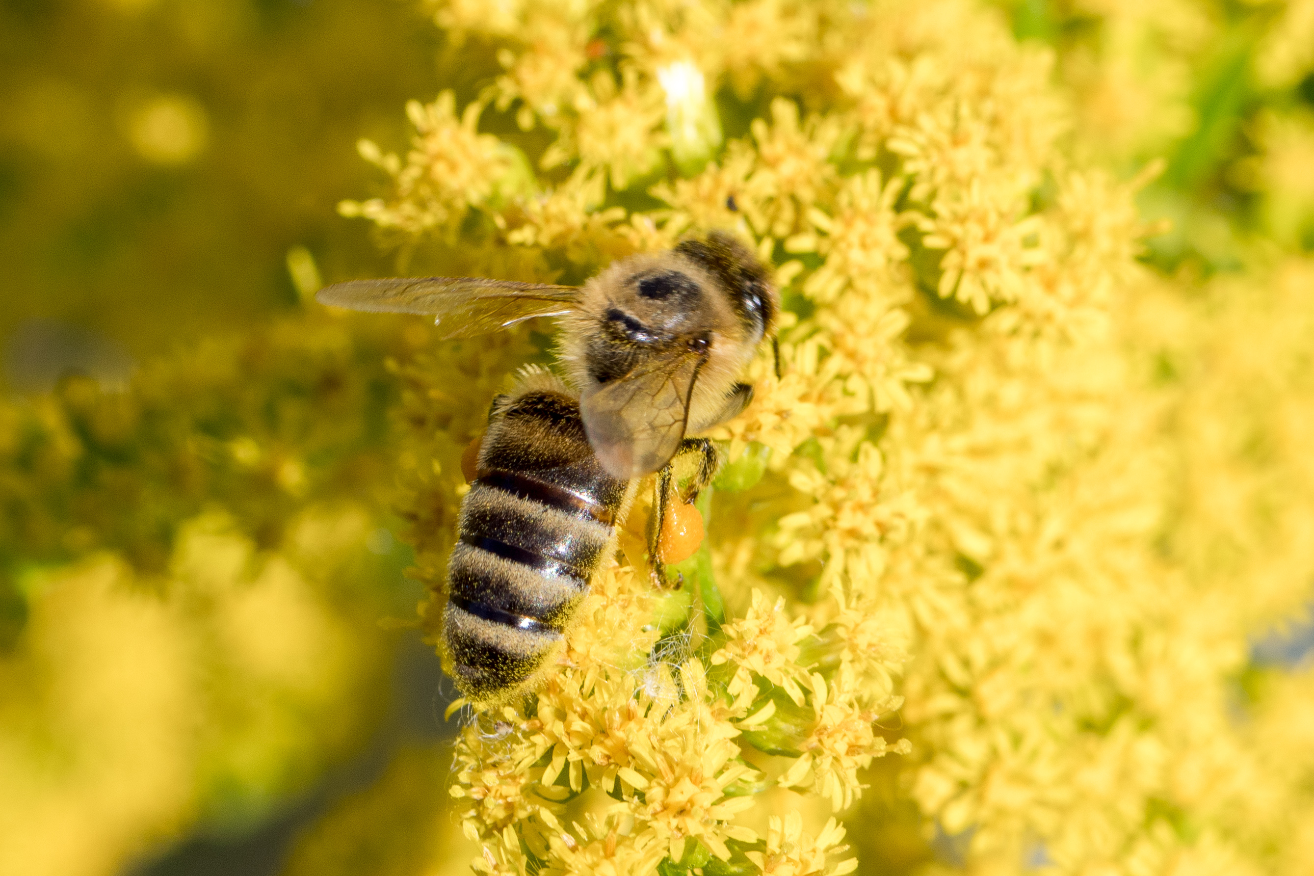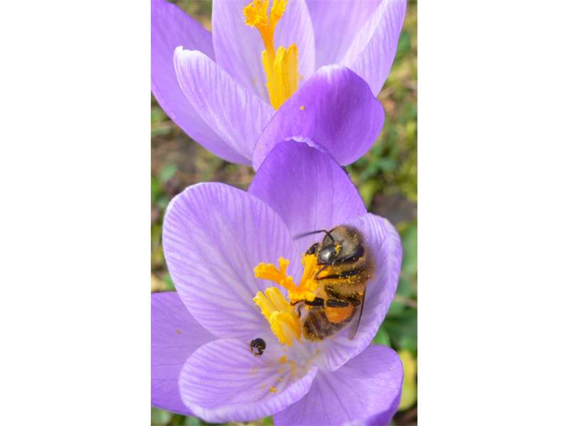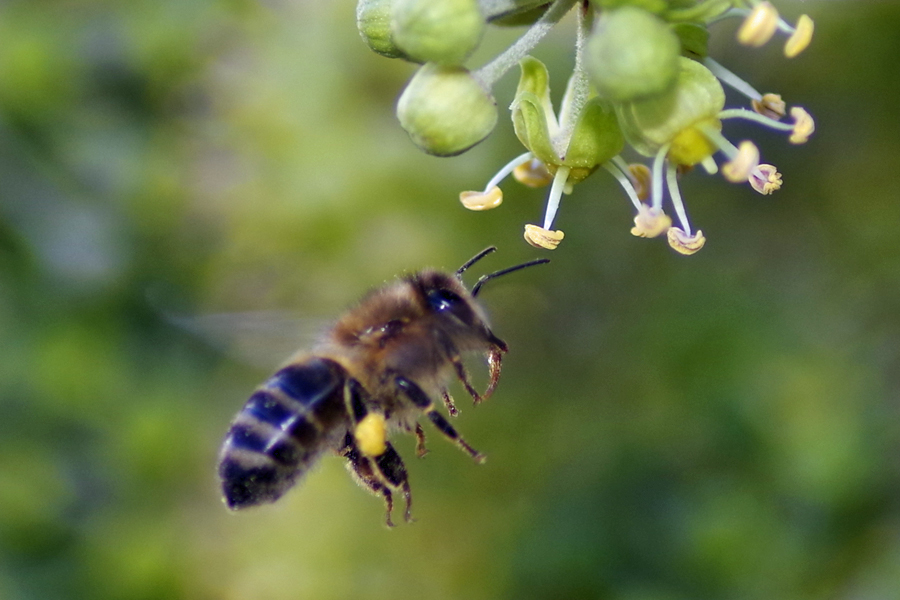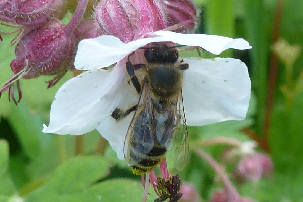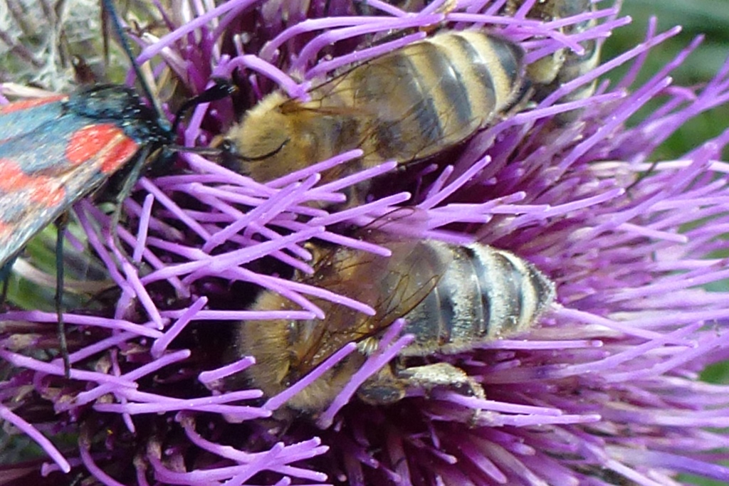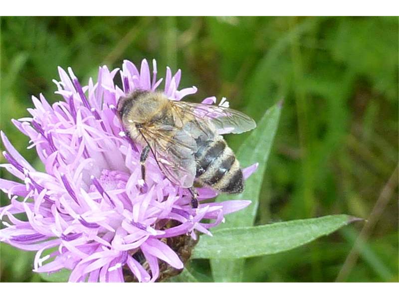 Westliche Honigbiene (Apis mellifera Linnaeus, 1758), Plauen/Vogtland, Nach den drei Bergen, Hausgarten, Oktober 2018 (© Steffen Hintersaß)( Bild vergrößern)