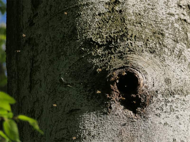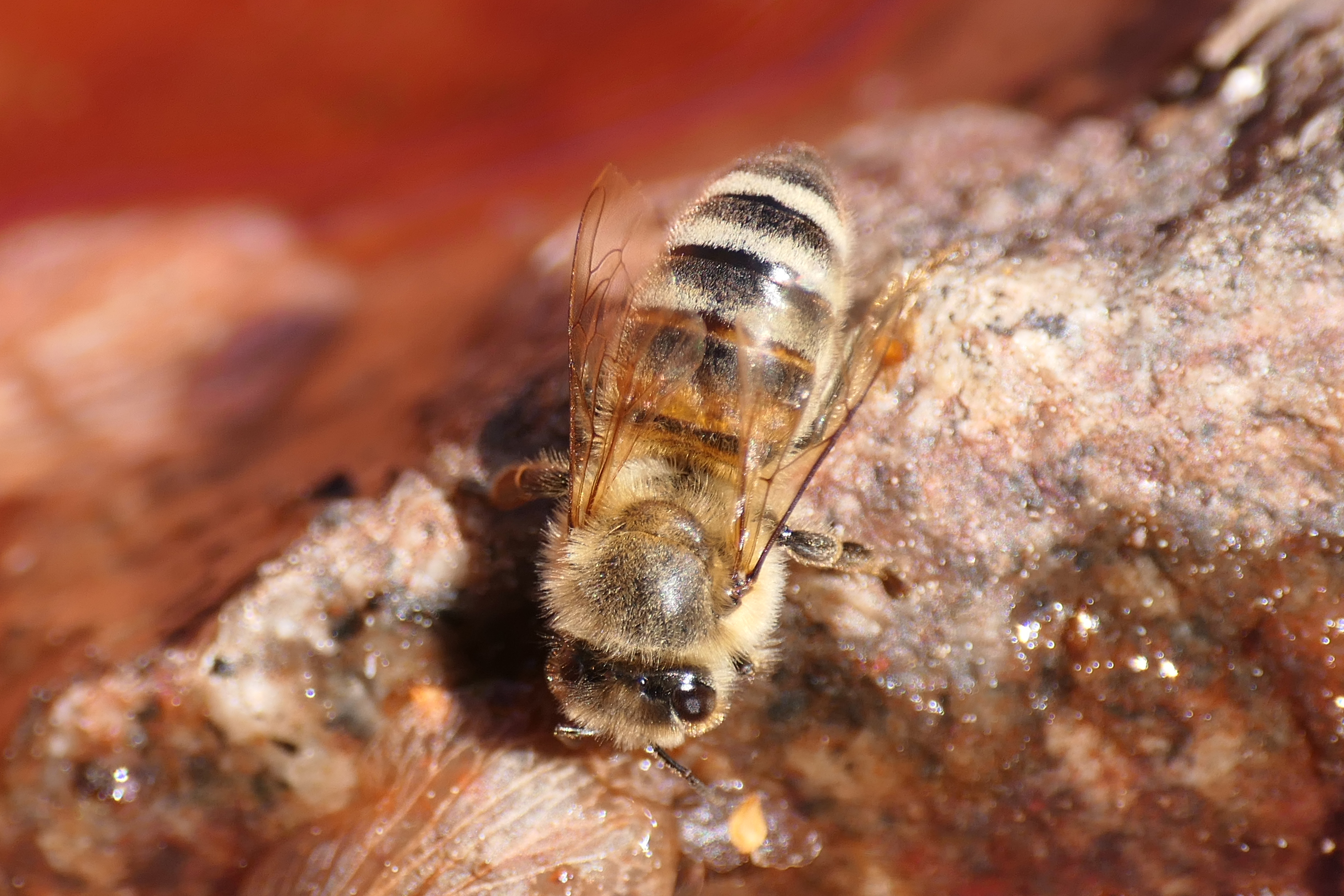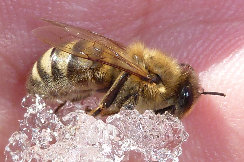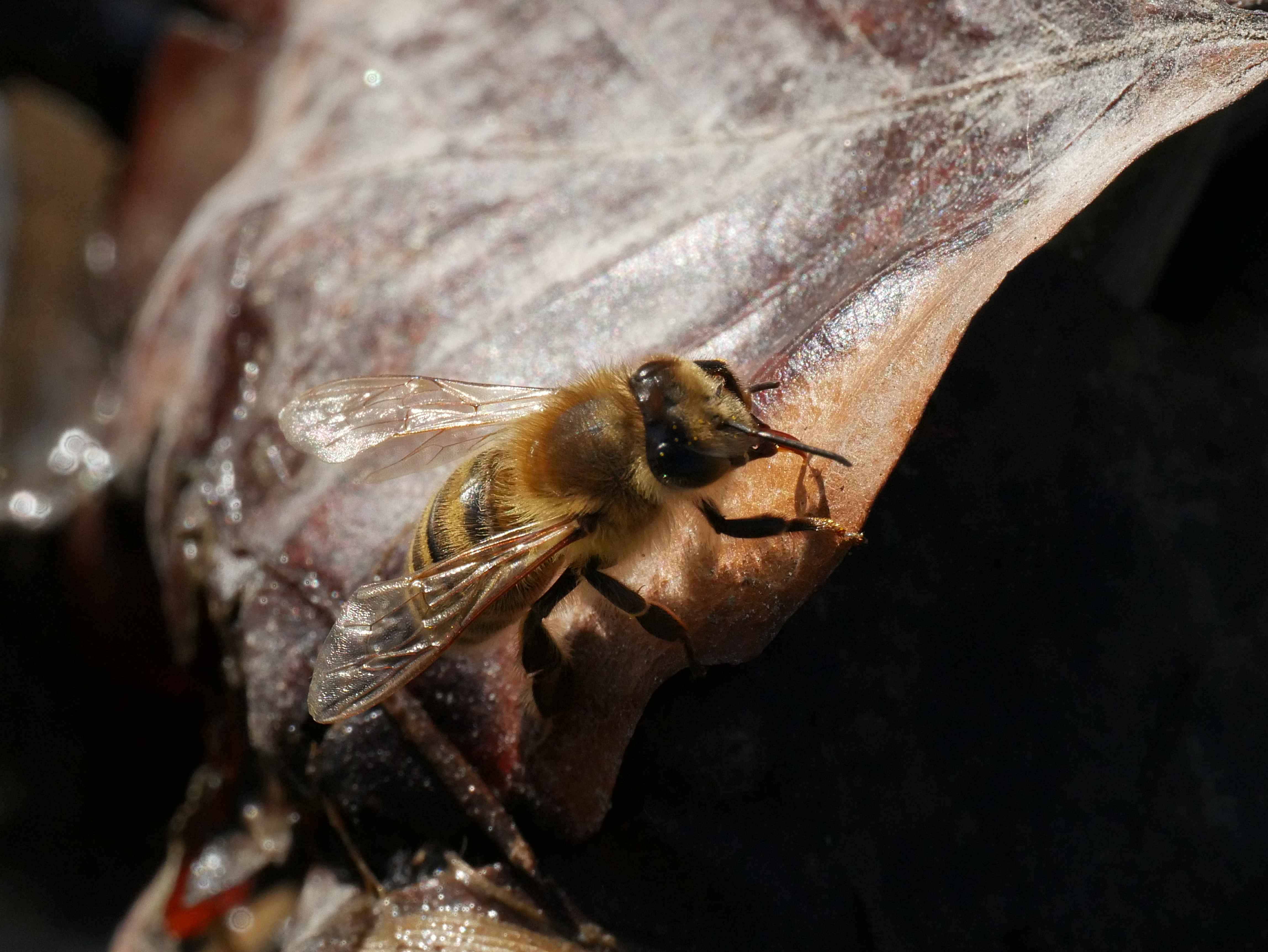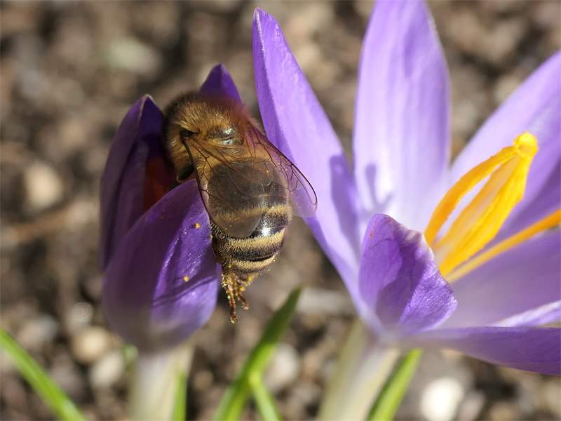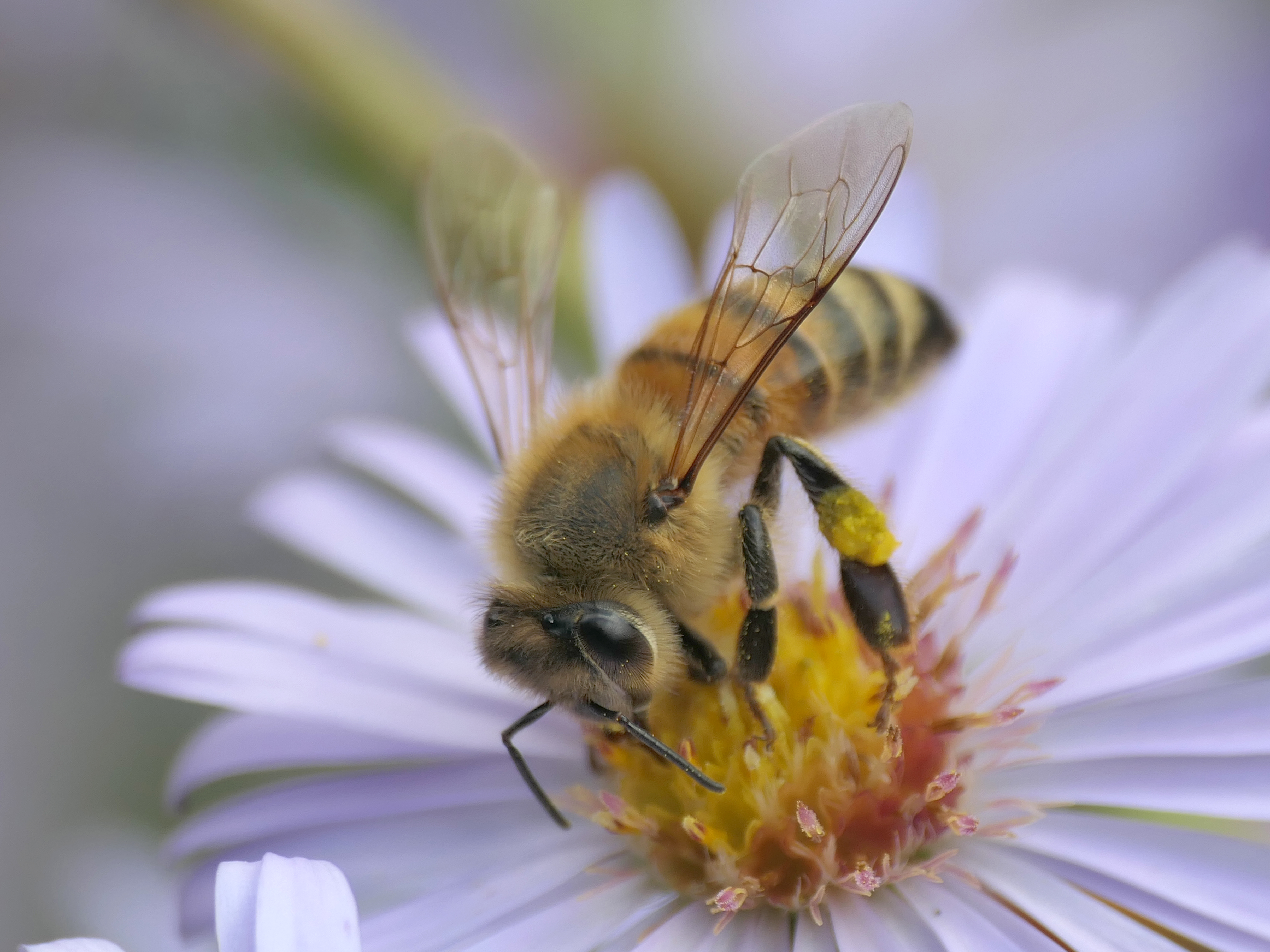 Westliche Honigbiene (Apis mellifera Linnaeus, 1758), Plauen/Vogtland, Nach den drei Bergen, Hausgarten, Oktober 2018 (© Steffen Hintersaß)( Bild vergrößern)