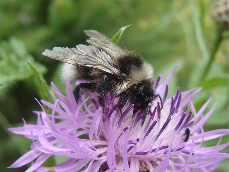Bombus bohemicus ist aufgrund seiner Färbung im Feld