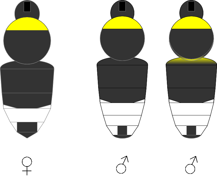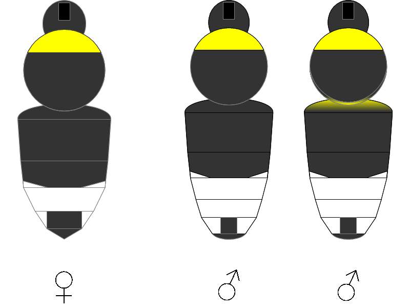 Bombus vestalis dunkelgelb. Da diese aber oft im Verlauf der Zeit verblassen, sollten weitere Merkmale betrachtet werden.