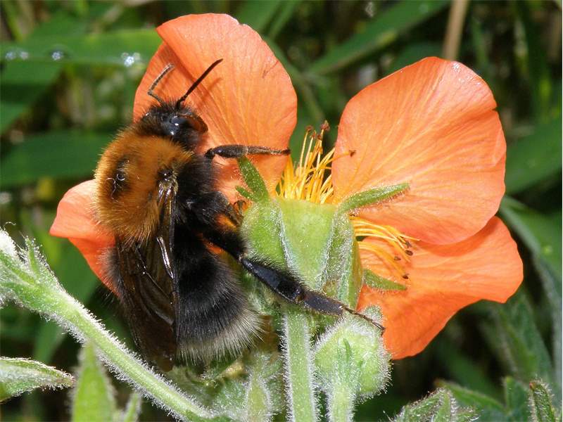 dunklen Varianten der Gartenhummel (Bombus hortorum) verwechselt werden, wobei diese einen