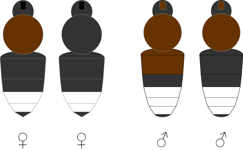 oder ganz schwarz (Variante 3). Bei Drohnen kann die braune Behaarung